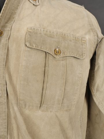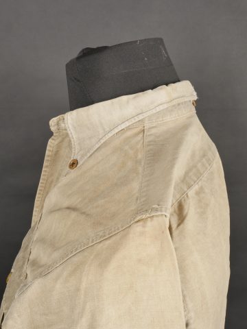 Chemise 1935. Modèle réglementaire en tissu kaki se fermant par trois boutons, boutons à l’arrière du col présents. Carré de drap sur la poitrine cousu d’origine. Bonne taille... en savoir plus