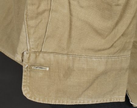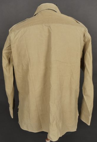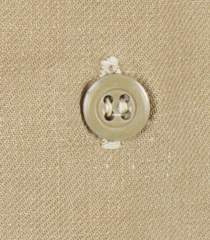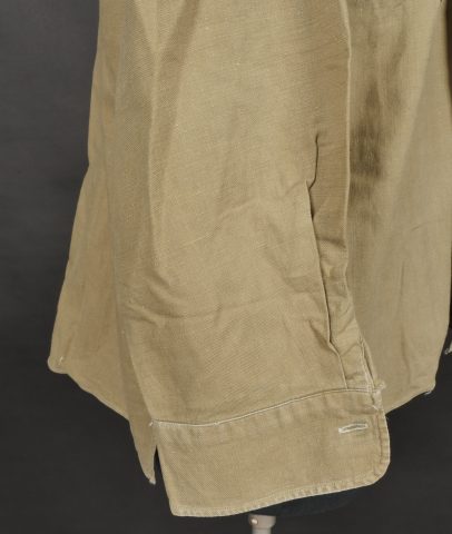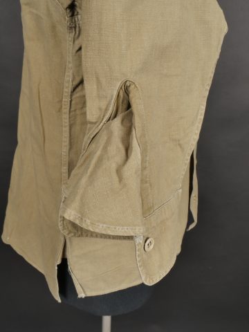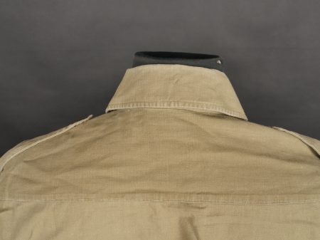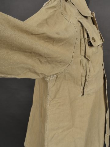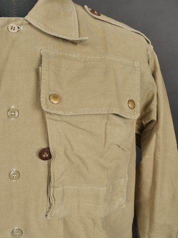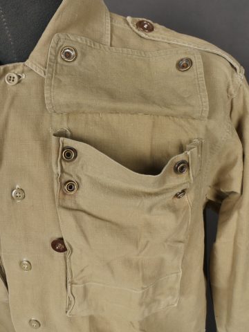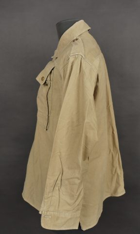 Chemise de saut. Confectionnée en toile kaki, deux poches de poitrine se fermant à l’aide de pressions, le parachutiste a cousu un bouton à côté de la poche de poitrine gauche destinée... en savoir plus