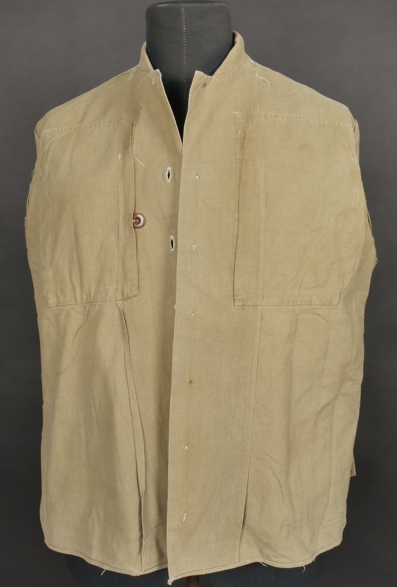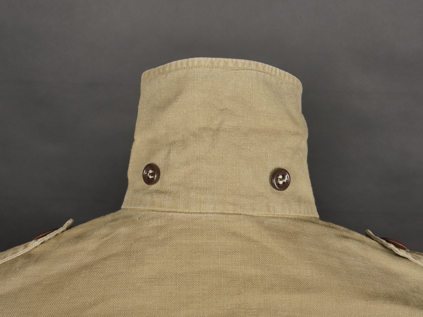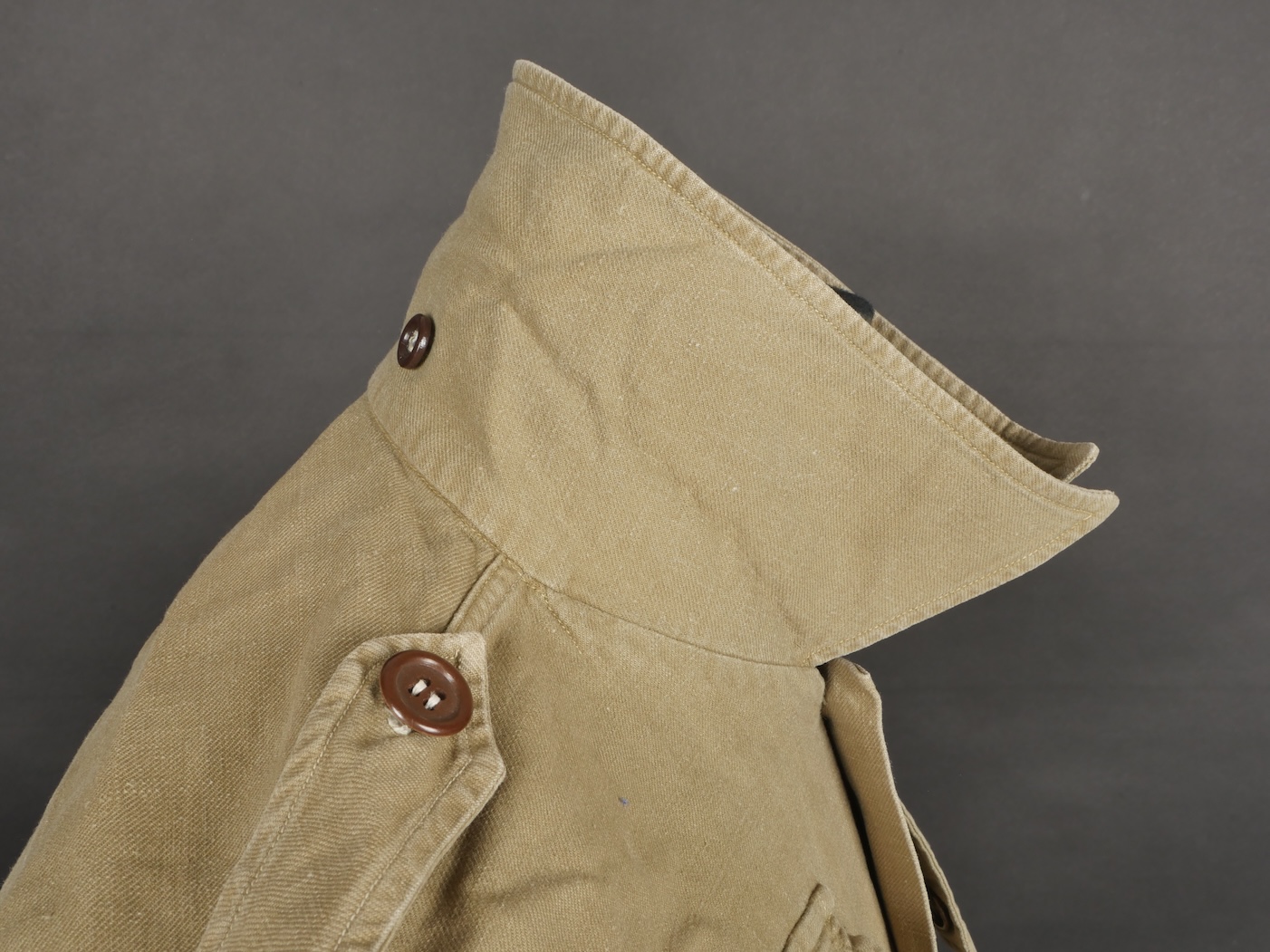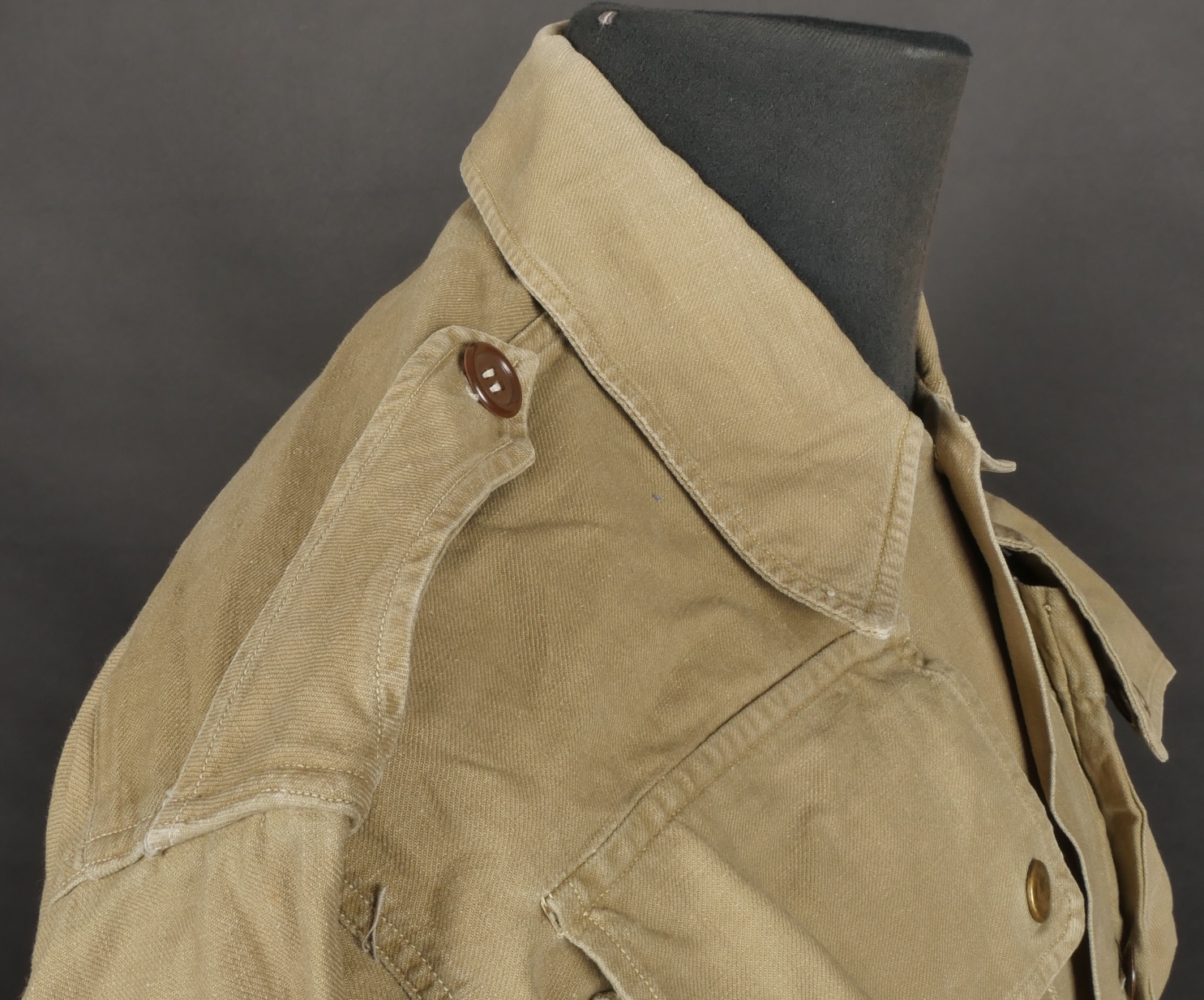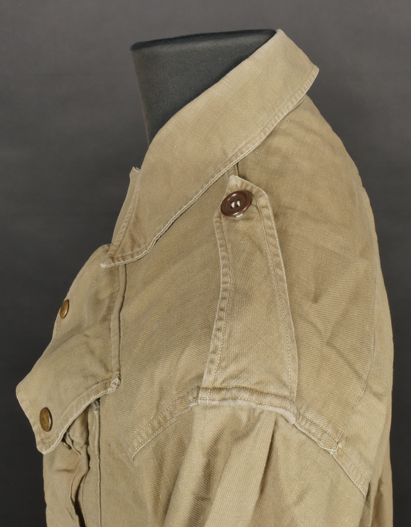 Chemise de saut. Confectionnée en toile kaki, deux poches de poitrine se fermant à l’aide de pressions, le parachutiste a cousu un bouton à côté de la poche de poitrine gauche destinée... en savoir plus
