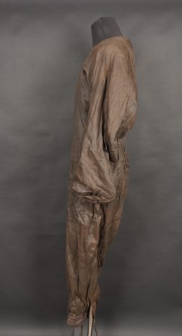 Combinaison chauffante Airlux. Type 111, entièrement confectionnée en fine laine marron et équipée de résistances électriques. Etiquette du fabricant indiquant le modèle, la date de... en savoir plus