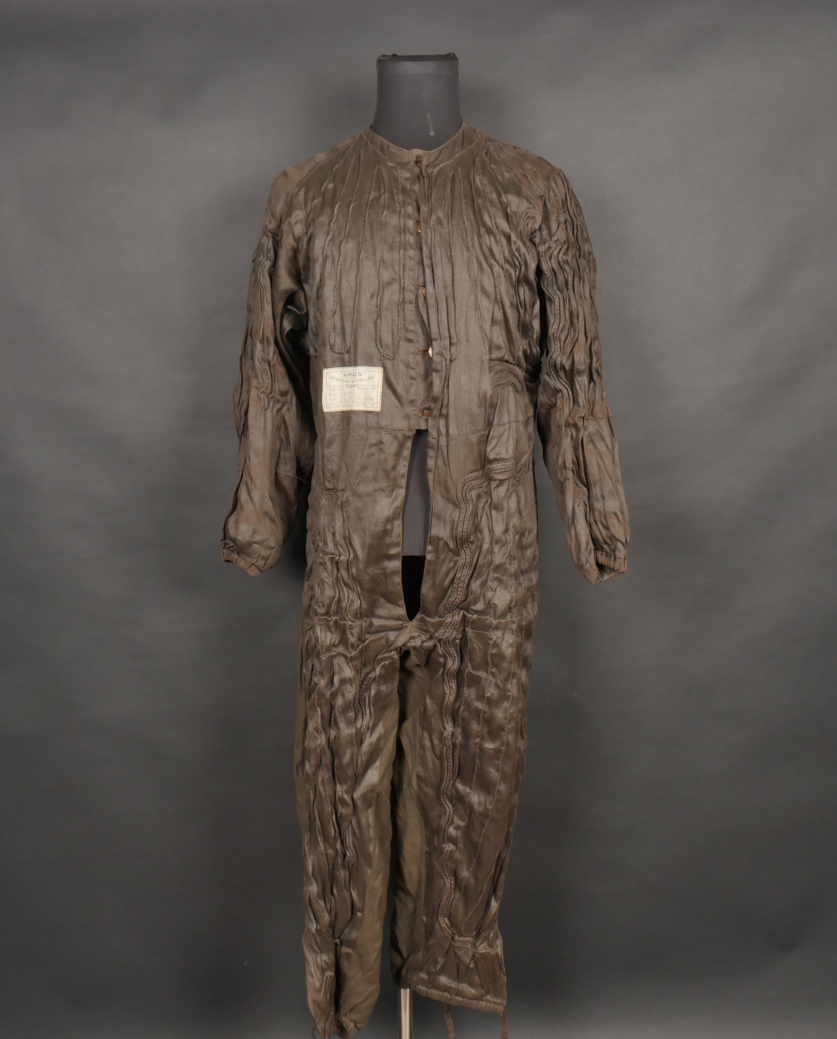 Combinaison chauffante Airlux. Type 111, entièrement confectionnée en fine laine marron et équipée de résistances électriques. Etiquette du fabricant indiquant le modèle, la date de... en savoir plus