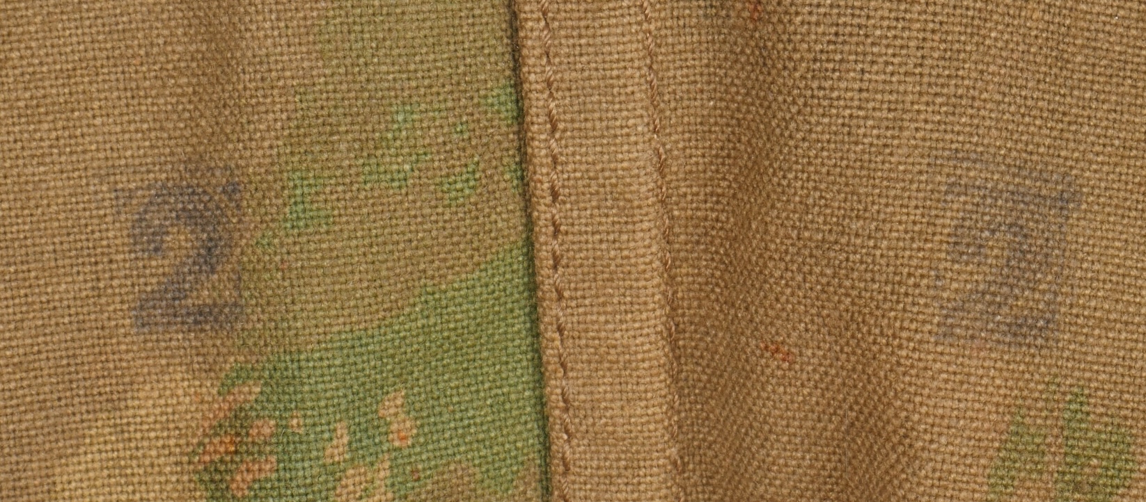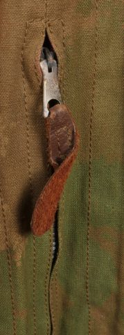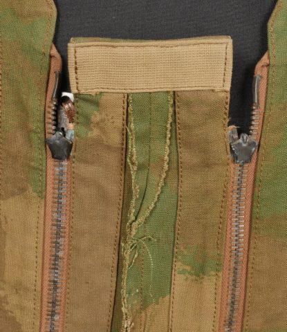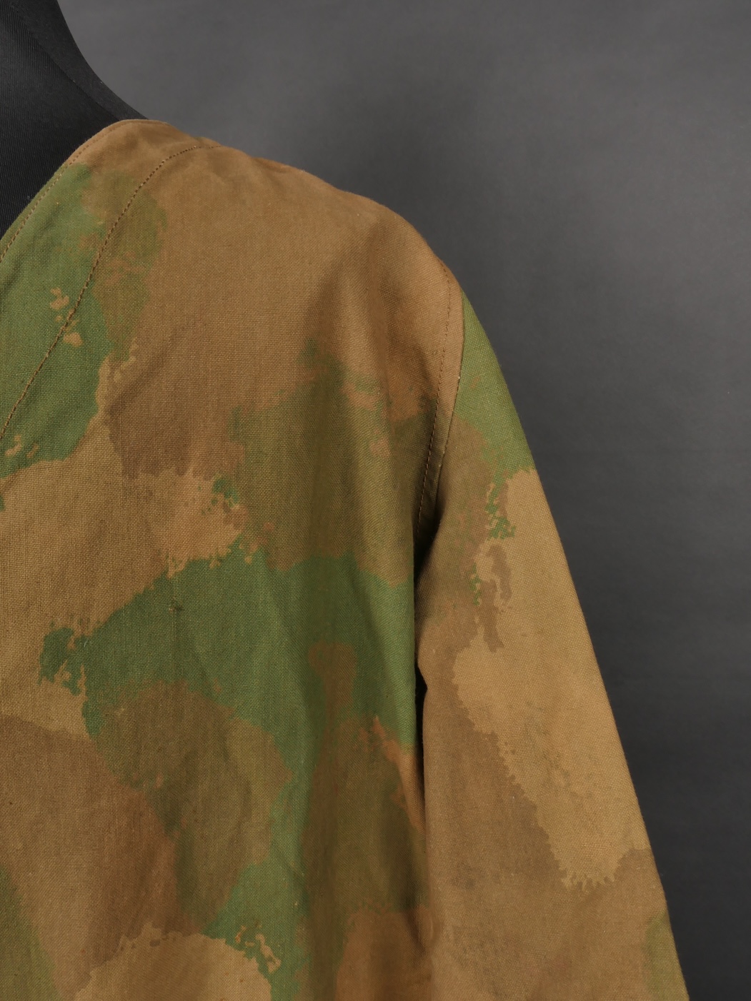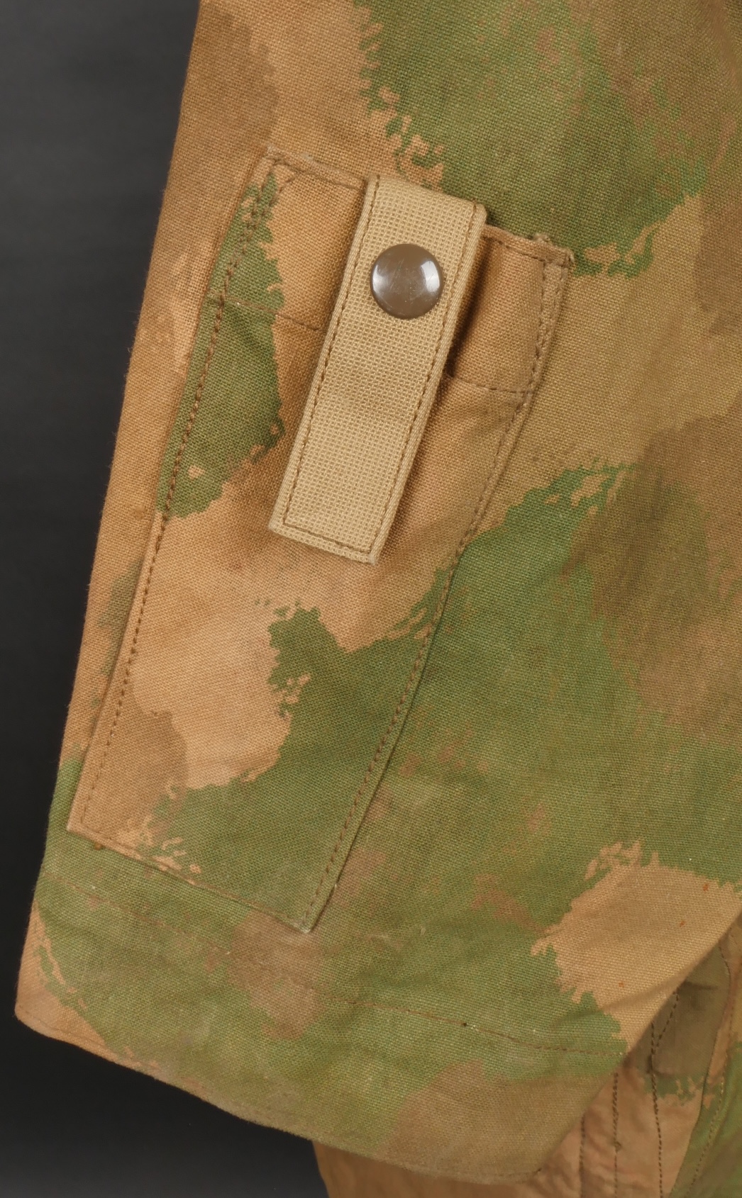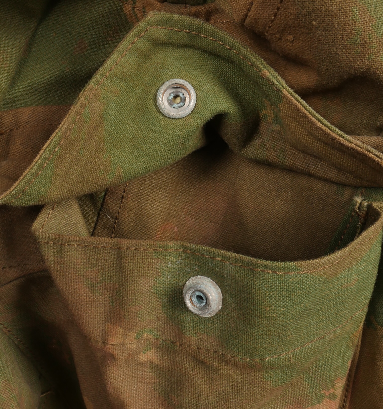 Combinaison de saut SOE. Rare combinaison de saut en toile camouflée quatre tons vert, brun, ocre et noir. Couleurs très fraiches, fermeture centrale par deux fermetures éclaires marquées AMC,... en savoir plus