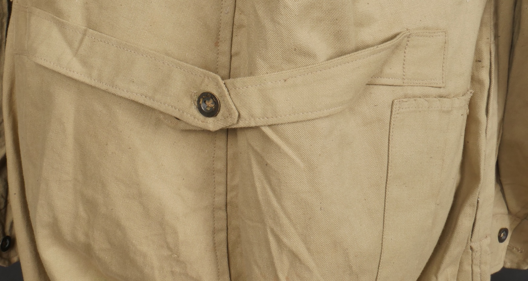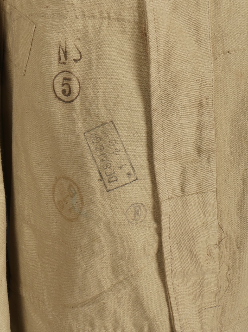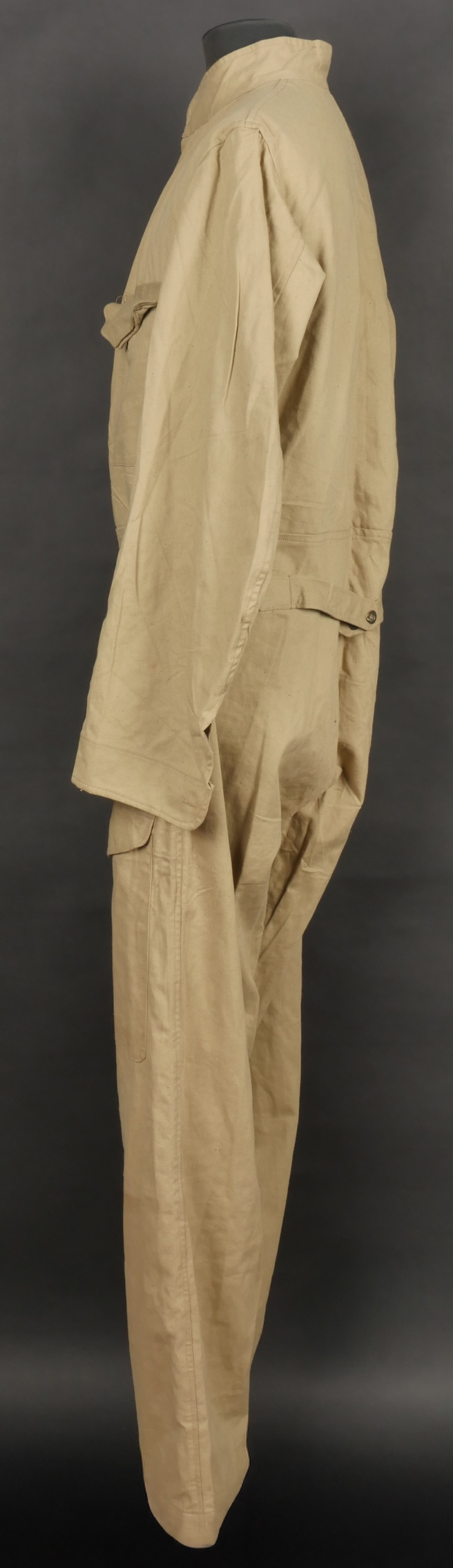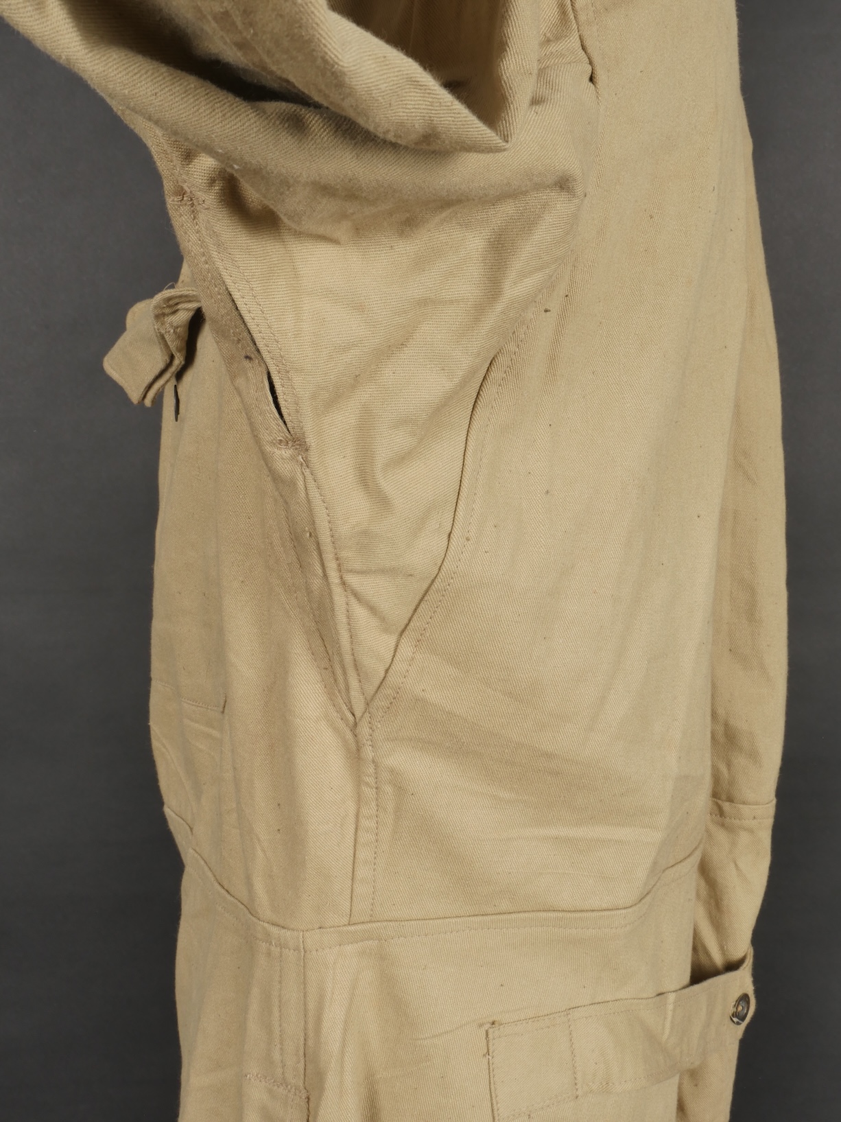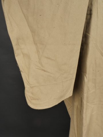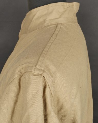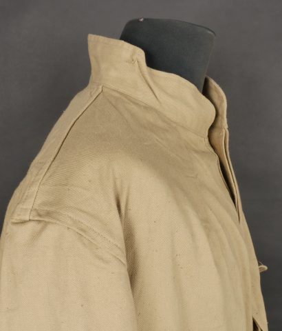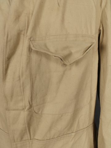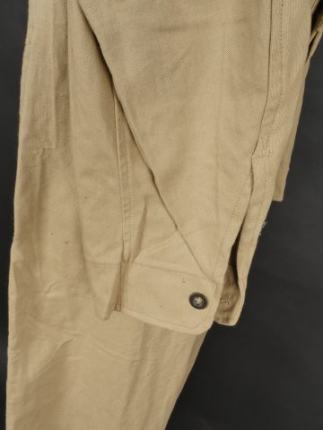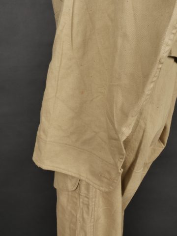 Combinaison type SAS. Combinaison réglementaire anglaise de confection indienne en toile de coton kaki clair, une seule poche de poitrine et une poche de cuisse gauche. Divers tampons dont la... en savoir plus