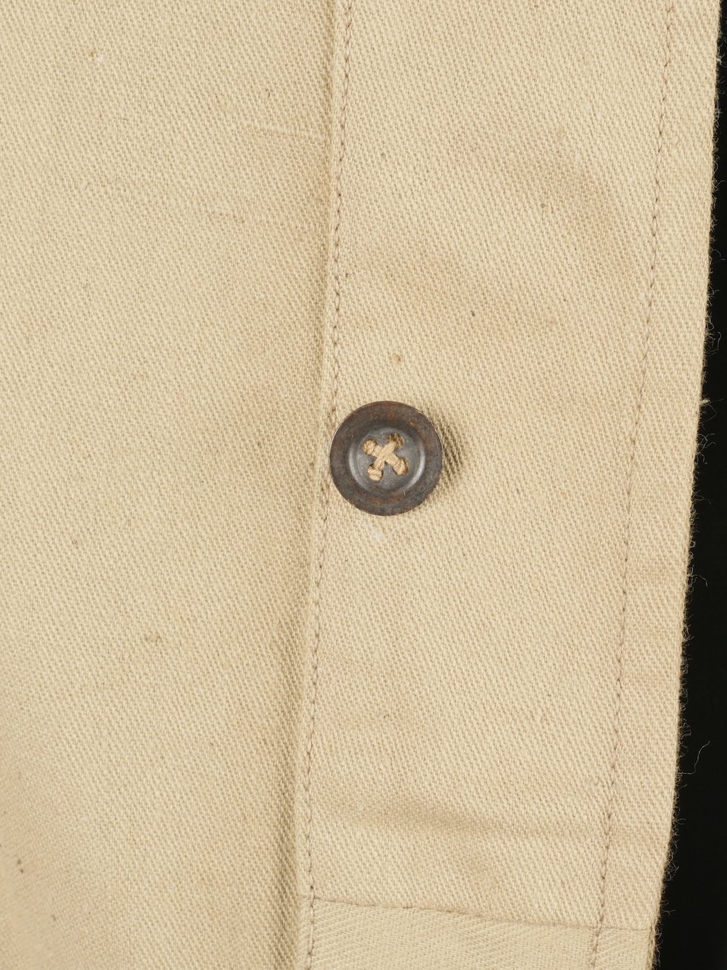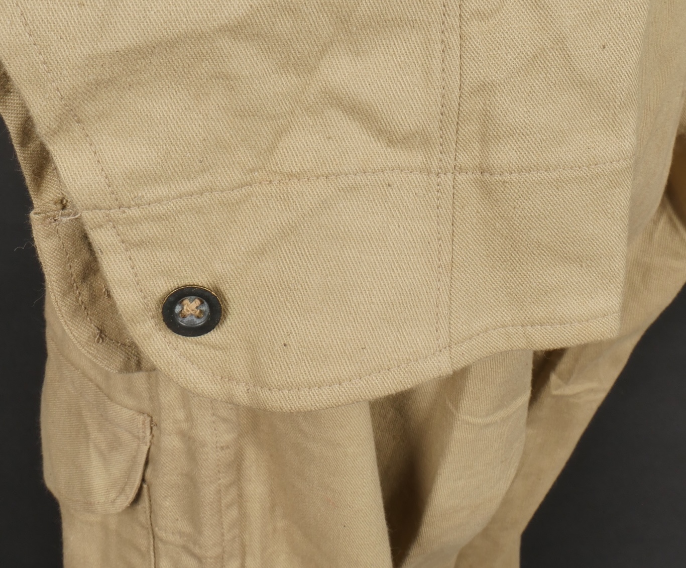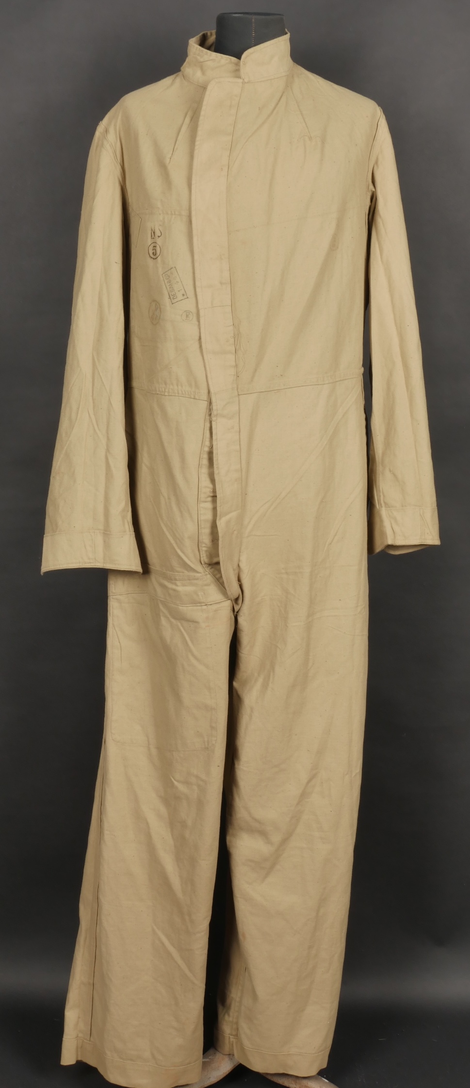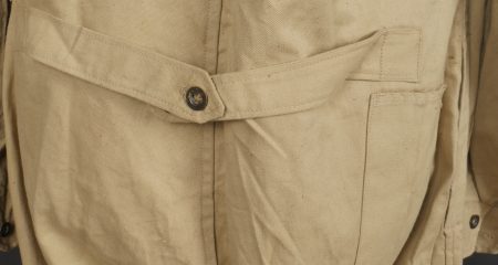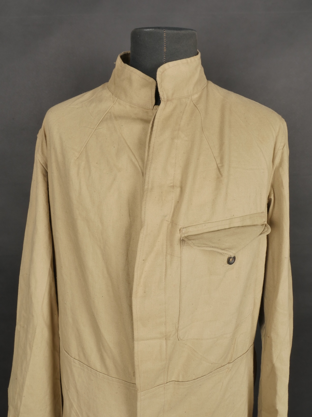 Combinaison type SAS. Combinaison réglementaire anglaise de confection indienne en toile de coton kaki clair, une seule poche de poitrine et une poche de cuisse gauche. Divers tampons dont la... en savoir plus