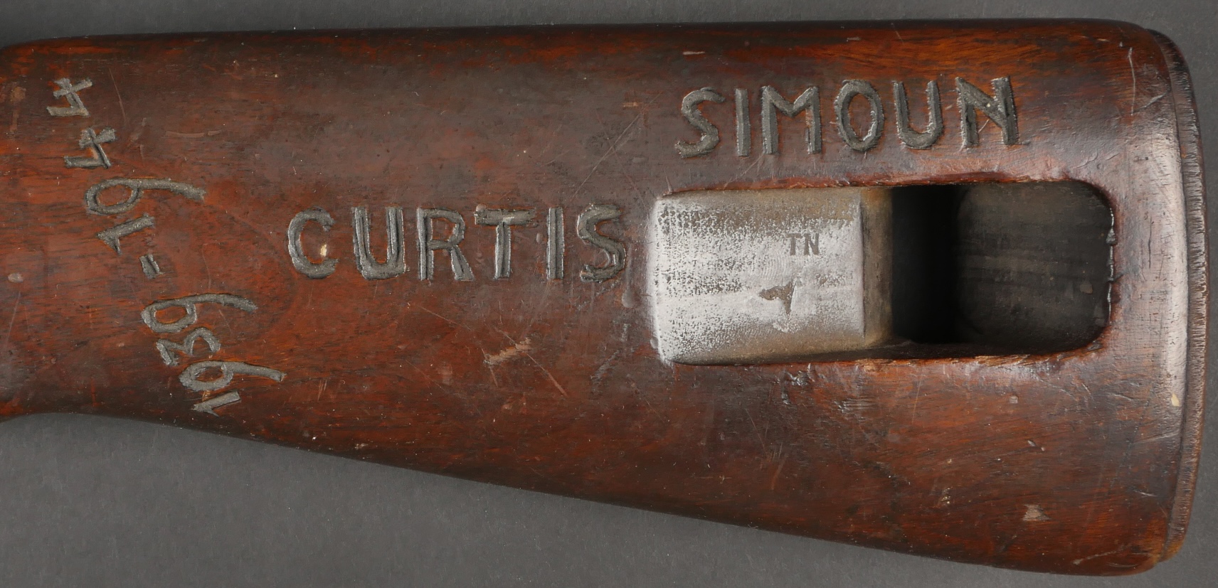 Crosse de carabine USM1, ayant appartenu au LieutenantColonel Huguet et entièrement gravée. Robert Huguet, alias Simoun, Renard, Prince et Le Duc, entre très rapidement dans la résistance et,... en savoir plus