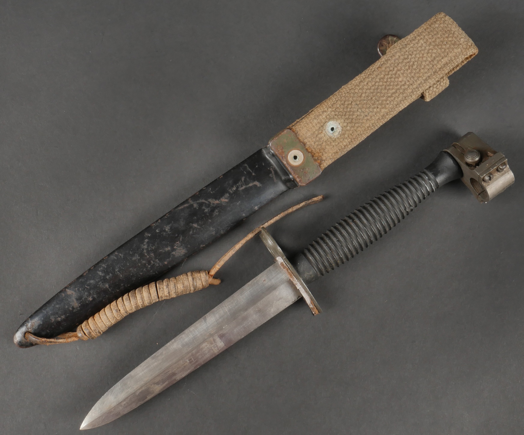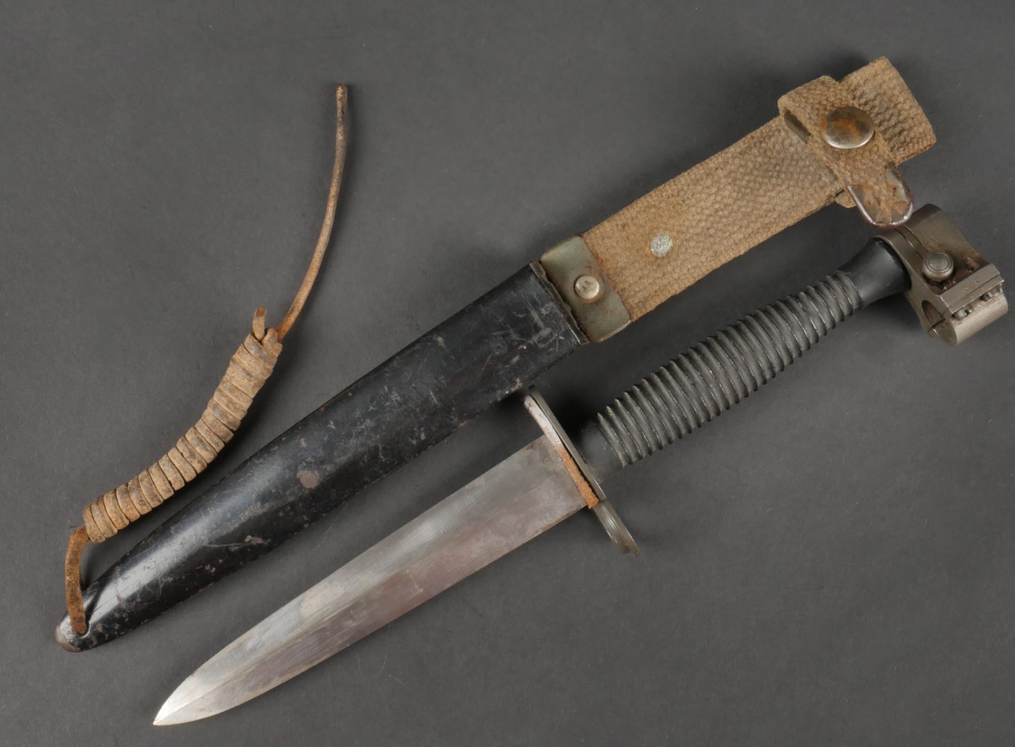 Rare Dague Baïonnette spécifique aux commandos Marine dite FUMACO possédant encore son tenon pour USM1.Poignée moulée en zamak comportant 26 cannelures, en peinture noire mat. Garde... en savoir plus