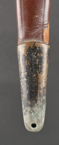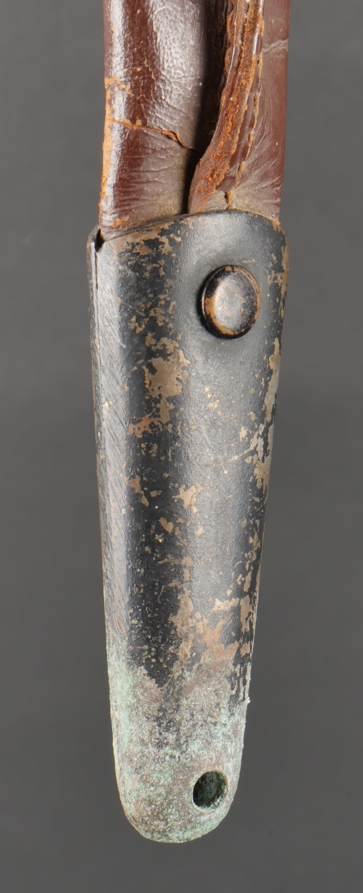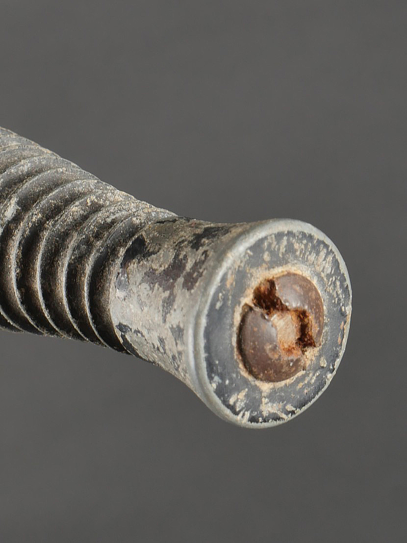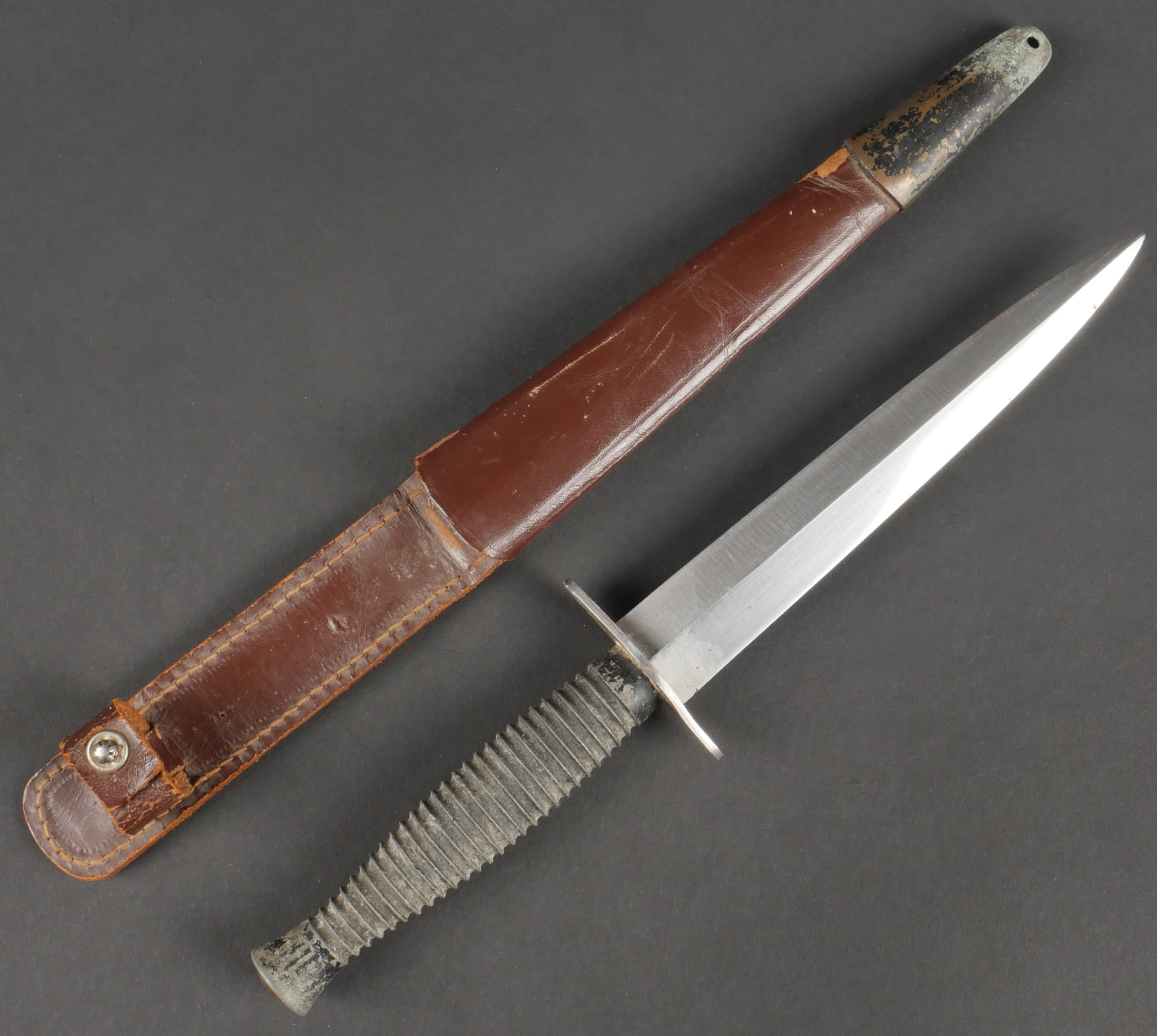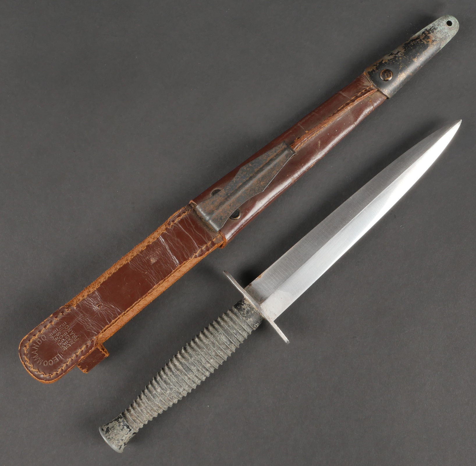 Dague Le Commando. Poignée moulée en zamak comportant 26 cannelures, avec de restes de peinture noire mat. Garde d’origine possédant le marquage Le Commando Inox Marque & modèle... en savoir plus