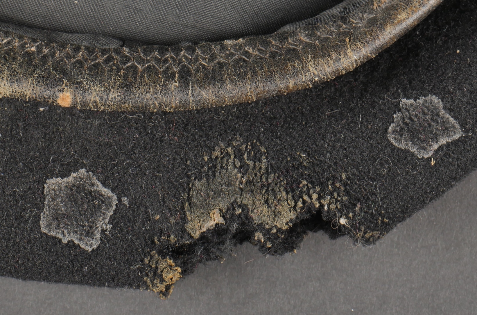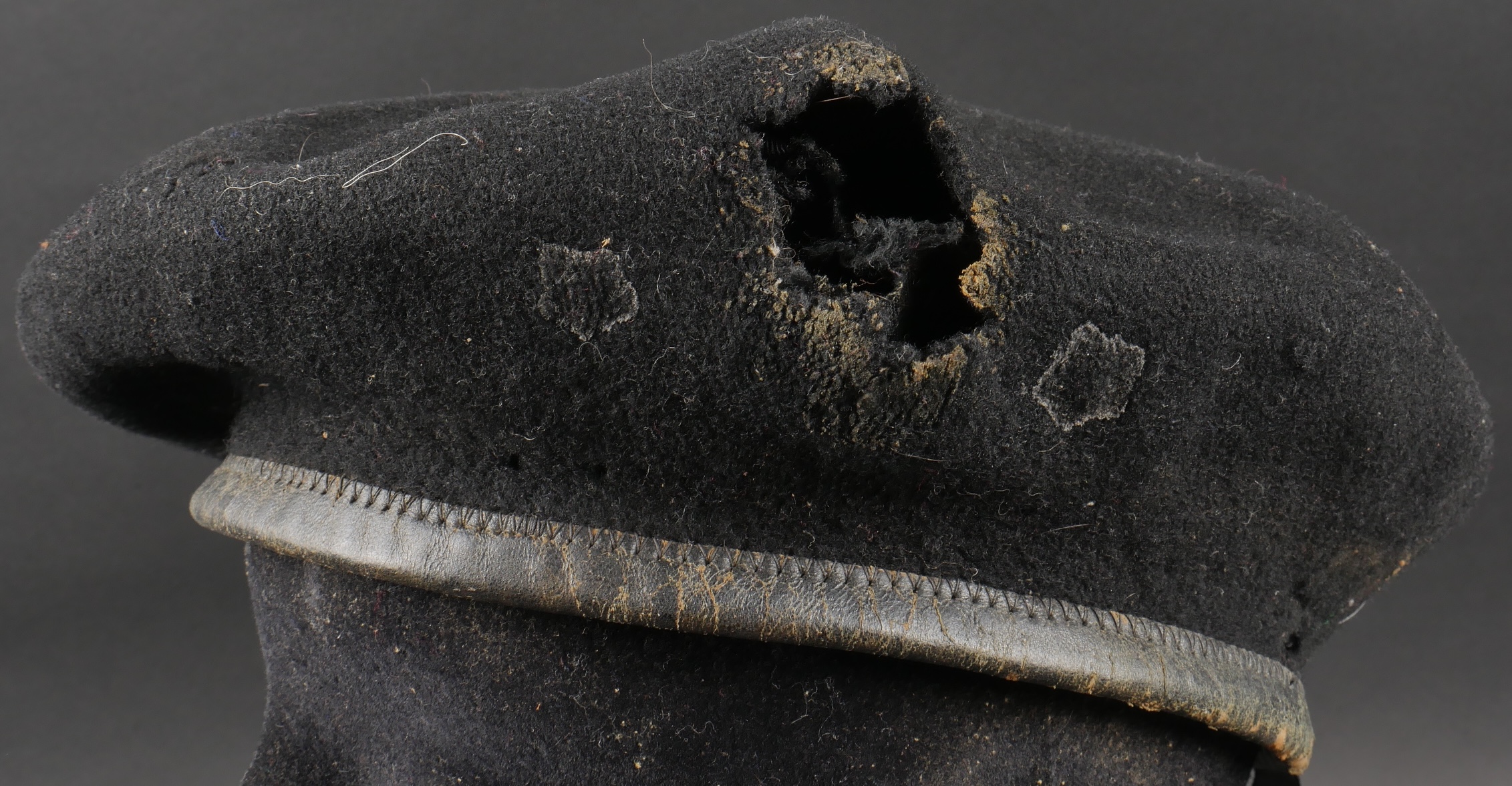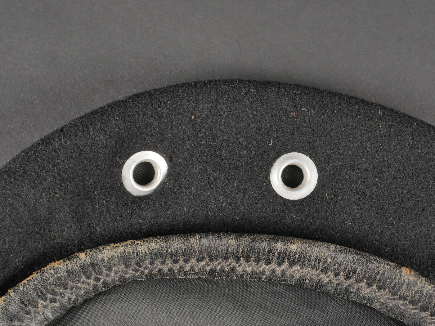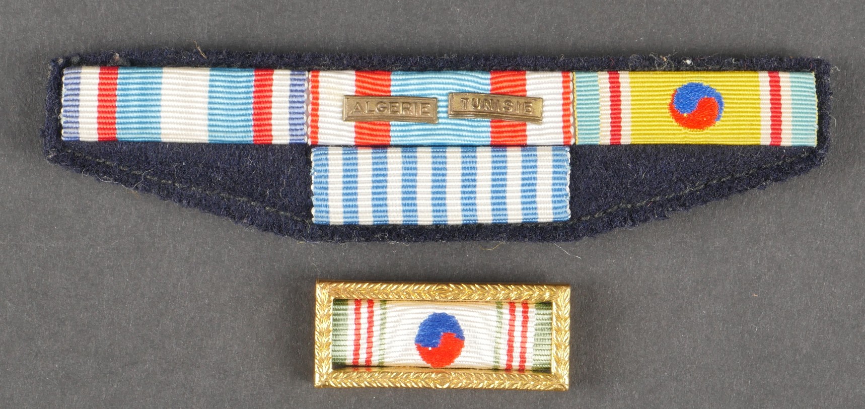 Ensemble Bataillon de Corée. Comprenant un béret spécifique à l’unité du bataillon français en Corée, confectionné e laine noire, deux gros œillets en aluminium, taille 57. A noter... en savoir plus