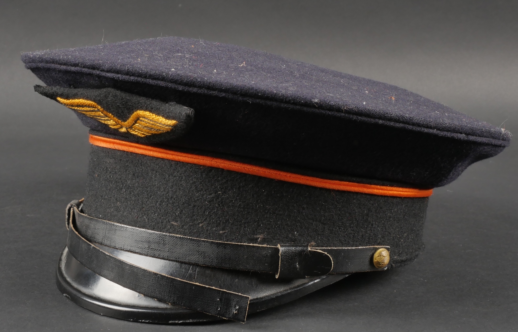 Ensemble comprenant une casquette de l’Armée de l’air modèle 35. Confectionnée en drap de laine bleu, passepoil orange, petits boutons ornés de l’insigne de l’Armée de... en savoir plus