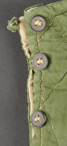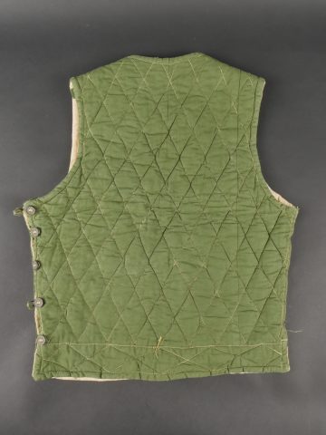 Ensemble d’équipements ViêtCong. Comprenant un gilet molletonné en toile verte confectionné en deux parties, cousu sur un côté et maintenu par trois et cinq boutons pour l’autre... en savoir plus