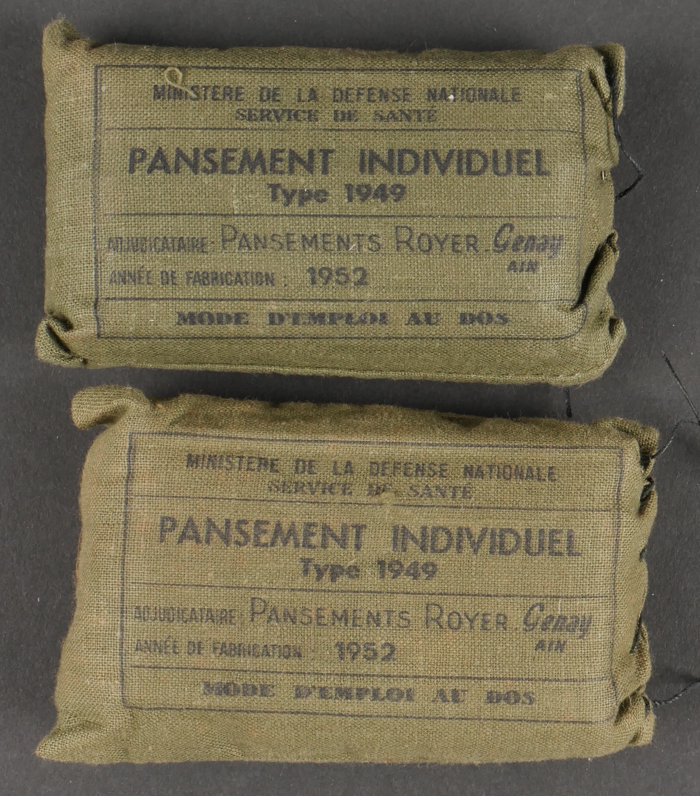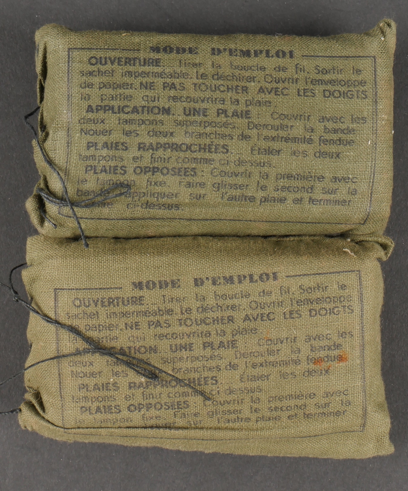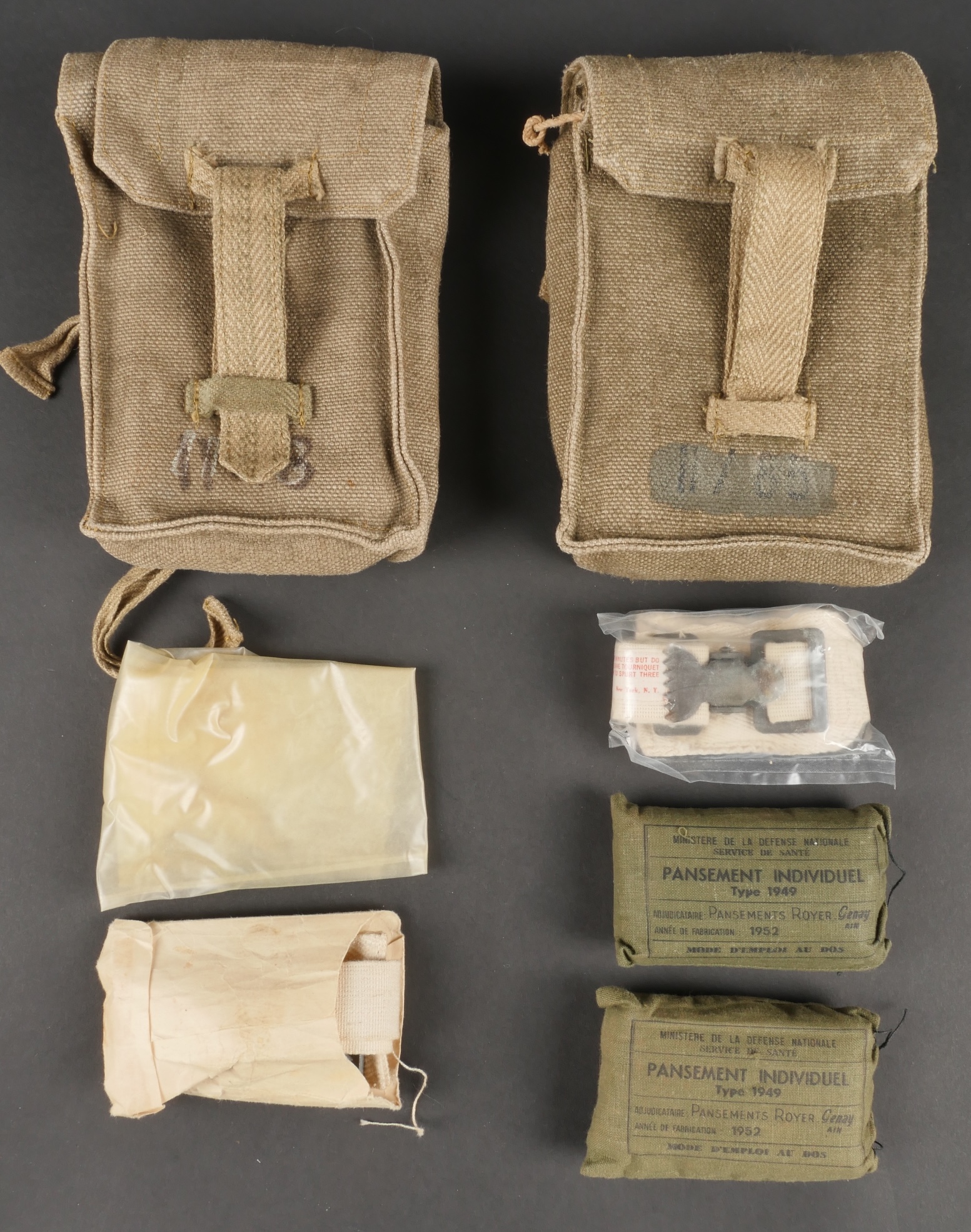 Pochettes à pansements Commandos Parachutistes Type II48 . La première contient un garrot Français réglementaire, un pansement français réglementaire daté 1952. La pochette se trouve en... en savoir plus