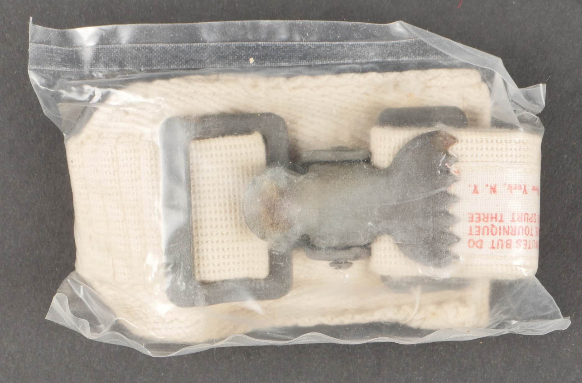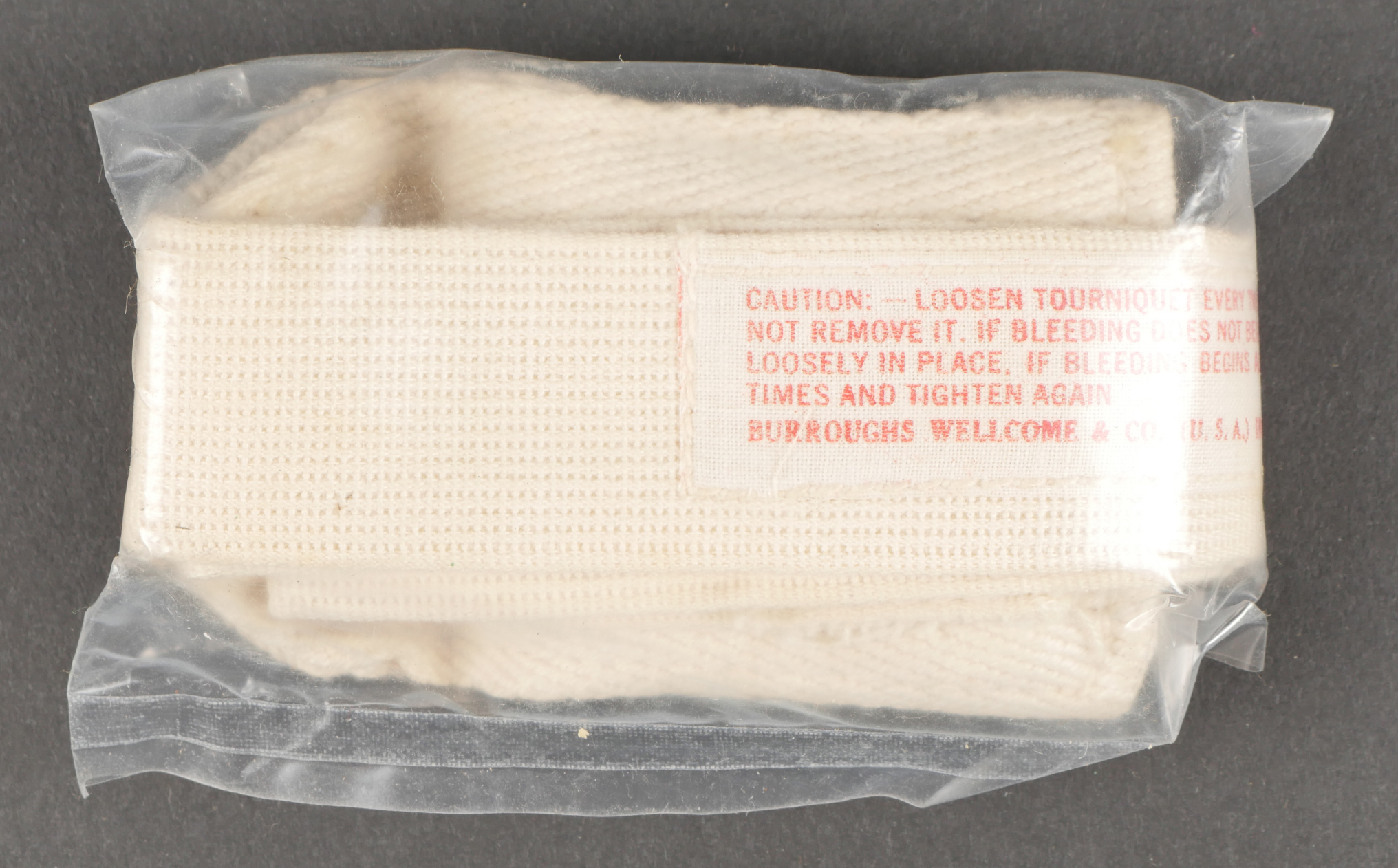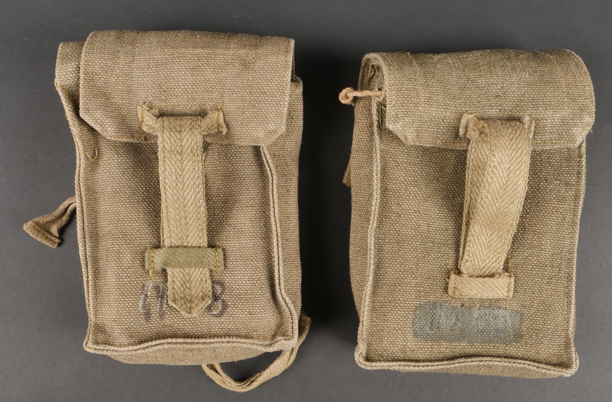 Pochettes à pansements Commandos Parachutistes Type II48 . La première contient un garrot Français réglementaire, un pansement français réglementaire daté 1952. La pochette se trouve en... en savoir plus