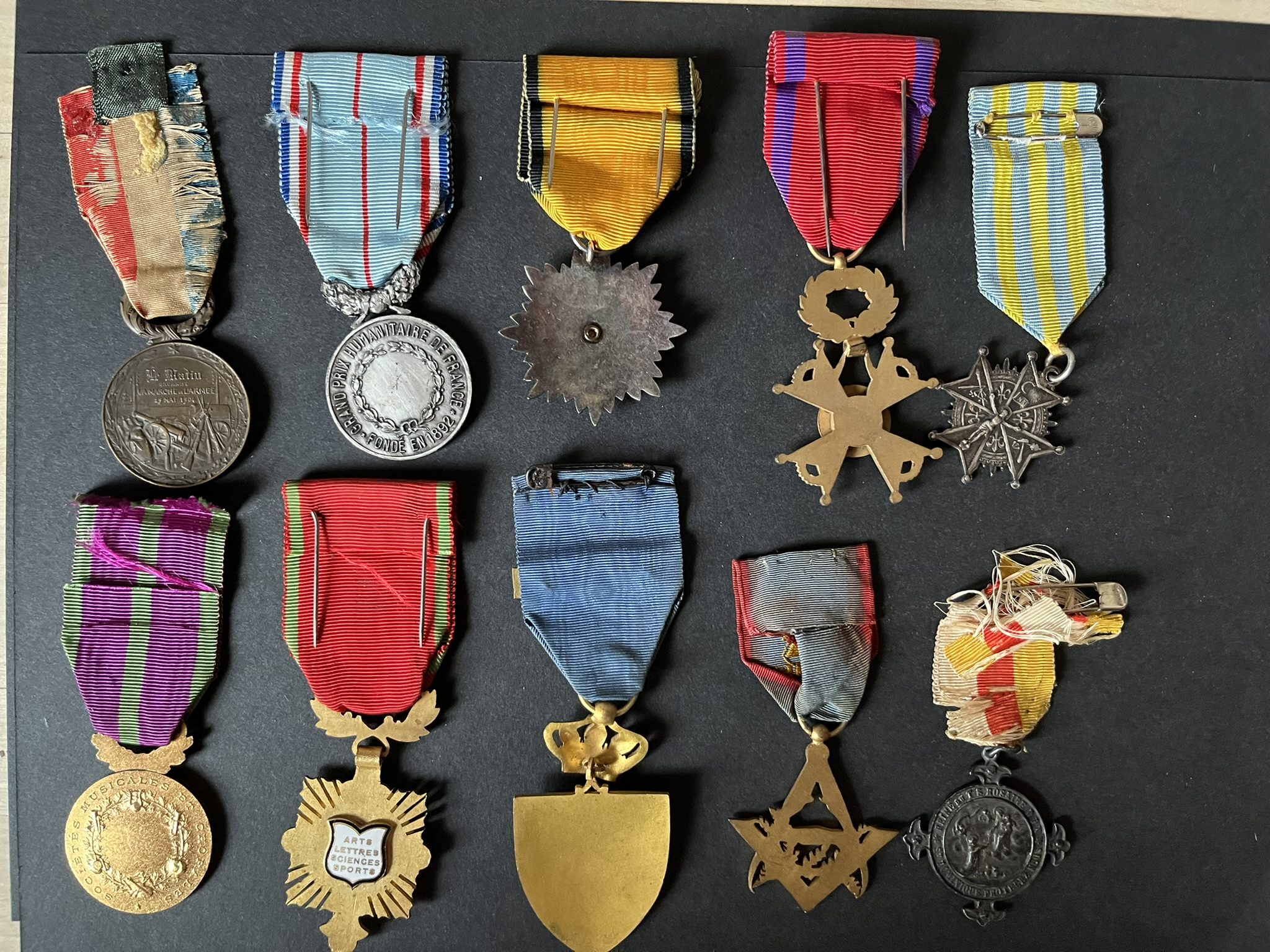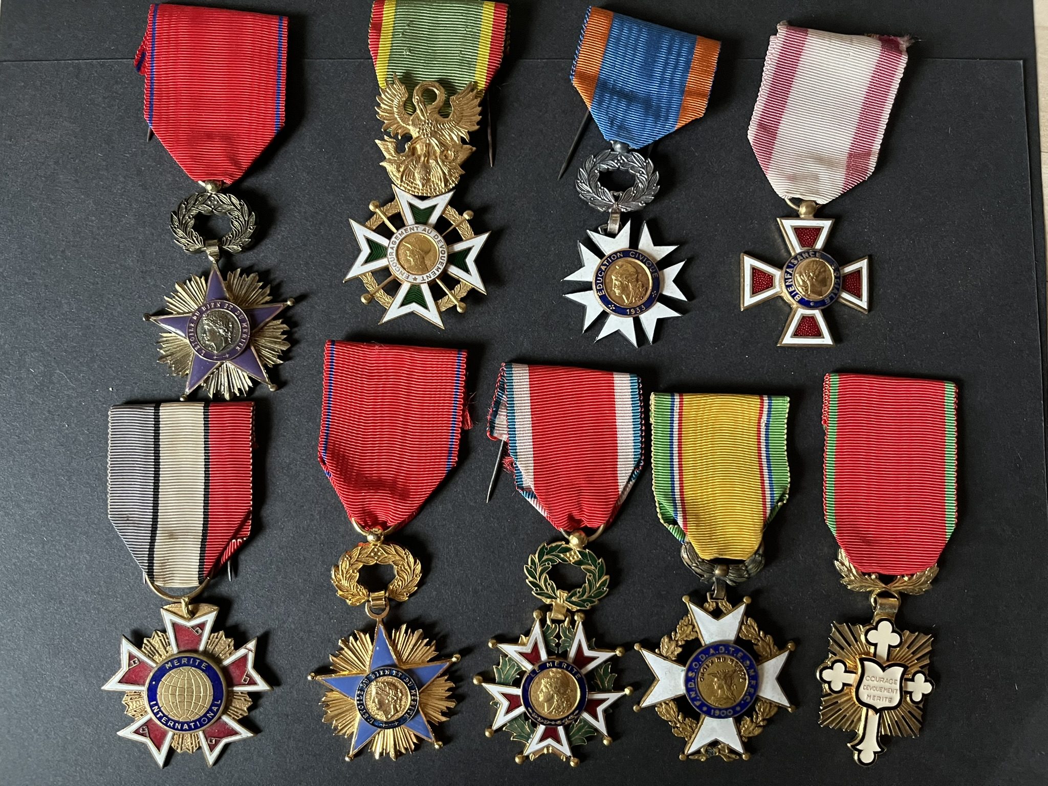 FRANCE , 9 pièces , lot de croix émaillées d’associations privées , petits éclats. FRANCE, 9 pieces, set of enameled crosses from private associations, minor enamel chips