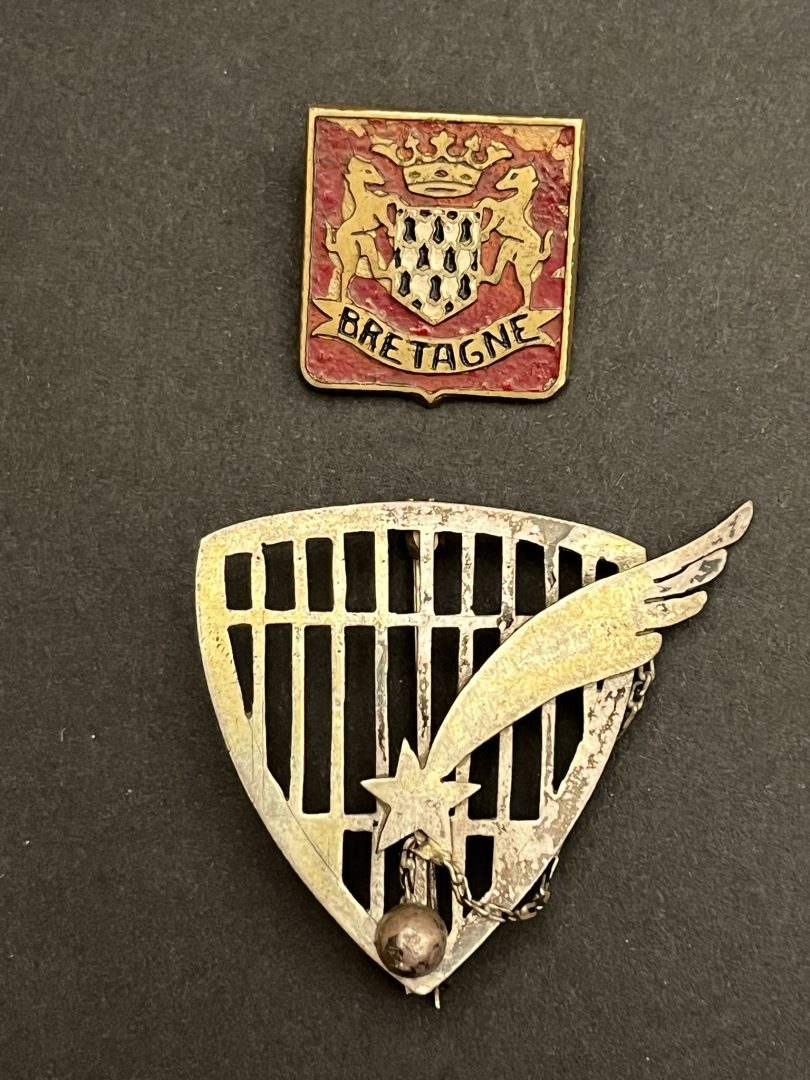 Lot 2 pièces , Insigne Groupe FAFL Bretagne fabrication locale peinte 24 mm et insigne Aviation en Syrie à identifier portant une étoile filante, une chainette fabrication locale 38mm. Lot of... en savoir plus