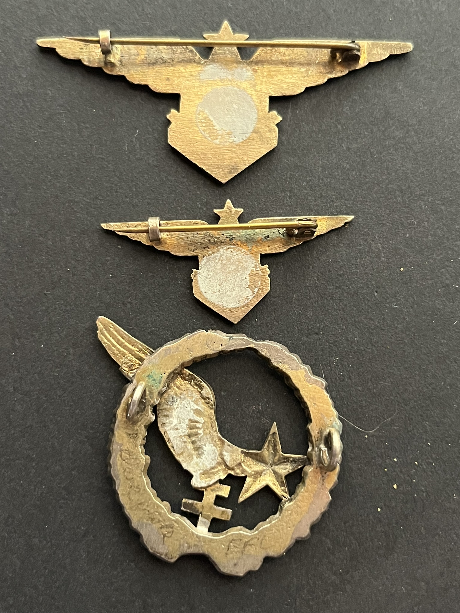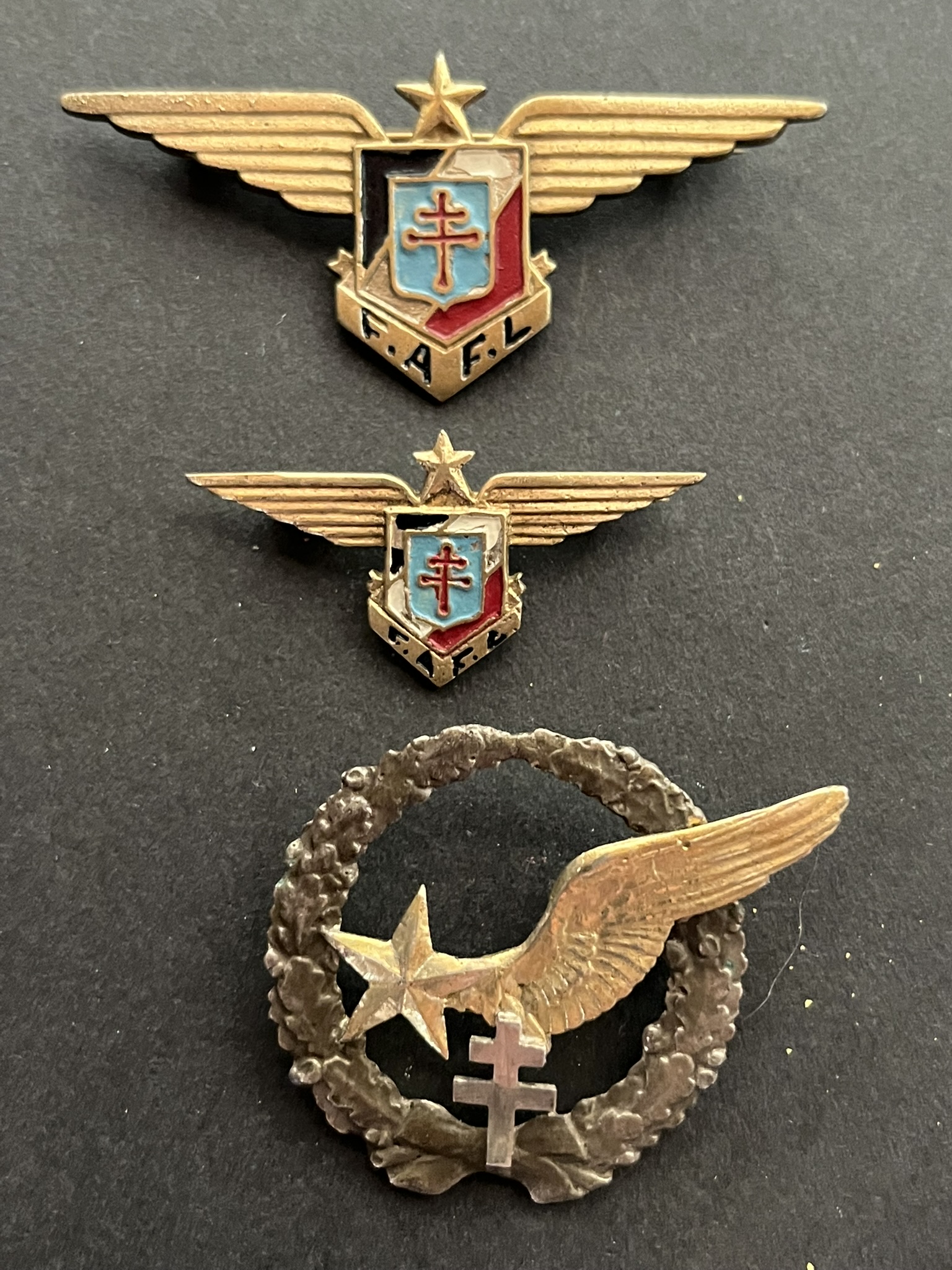 Lot 3 pièces , Insigne FAFL fabrication locale peinte 63mm , insigne FAFL demie taille peint fabrication locale 41mm , Brevet d’observateur FAFL avec croix de lorraine en )bas fabrication... en savoir plus