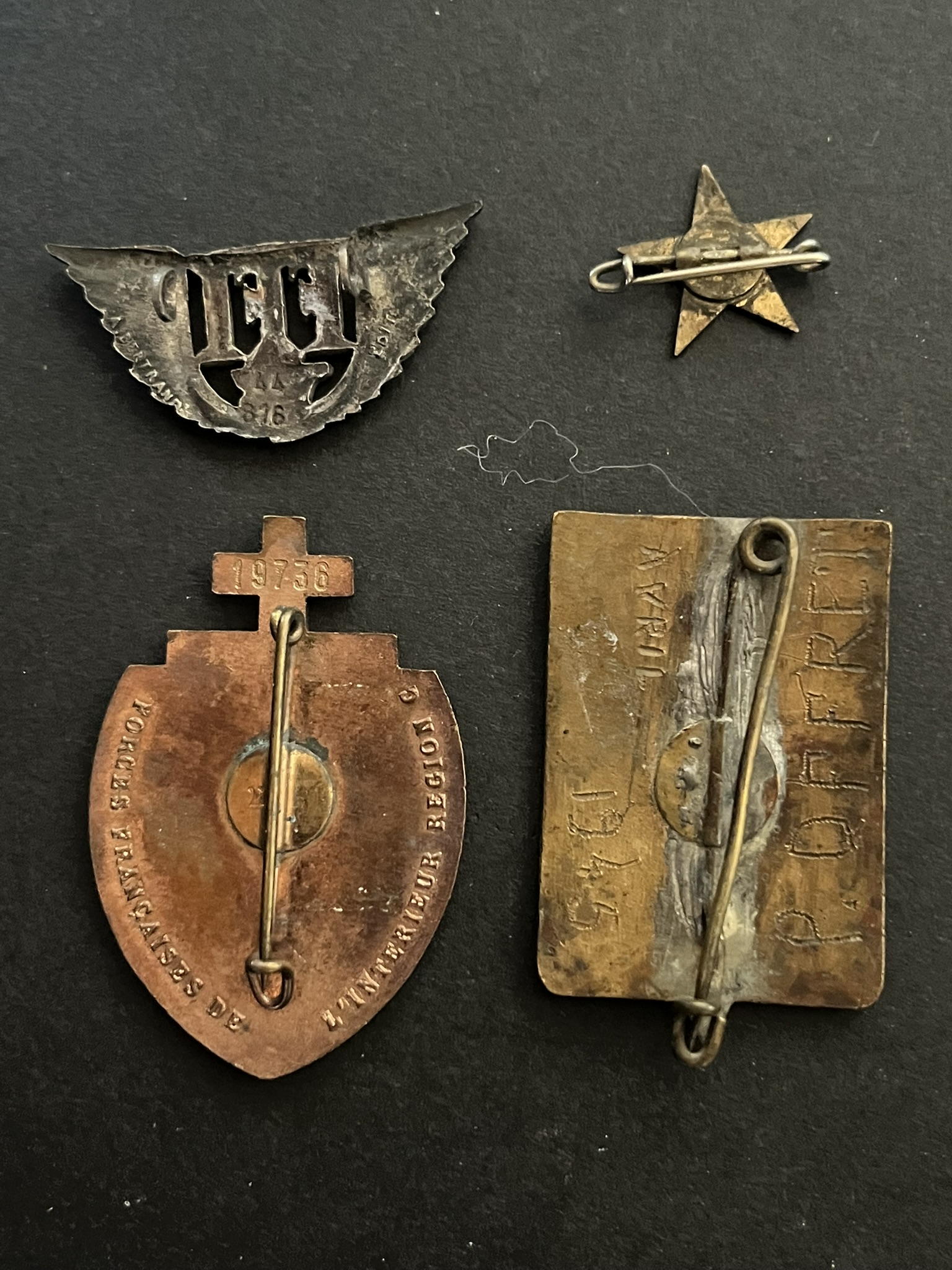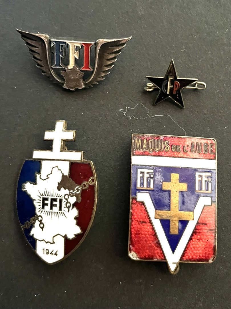 Lot 4 pièces , Grand modèle Maquis de l’AUBE émaillé gravé P. Offret Avril 1945 épingle resoudée ,Paul Gabriel Offret né en 1927 à Troyes a le titre de FFI et un dossier au SHAT,... en savoir plus