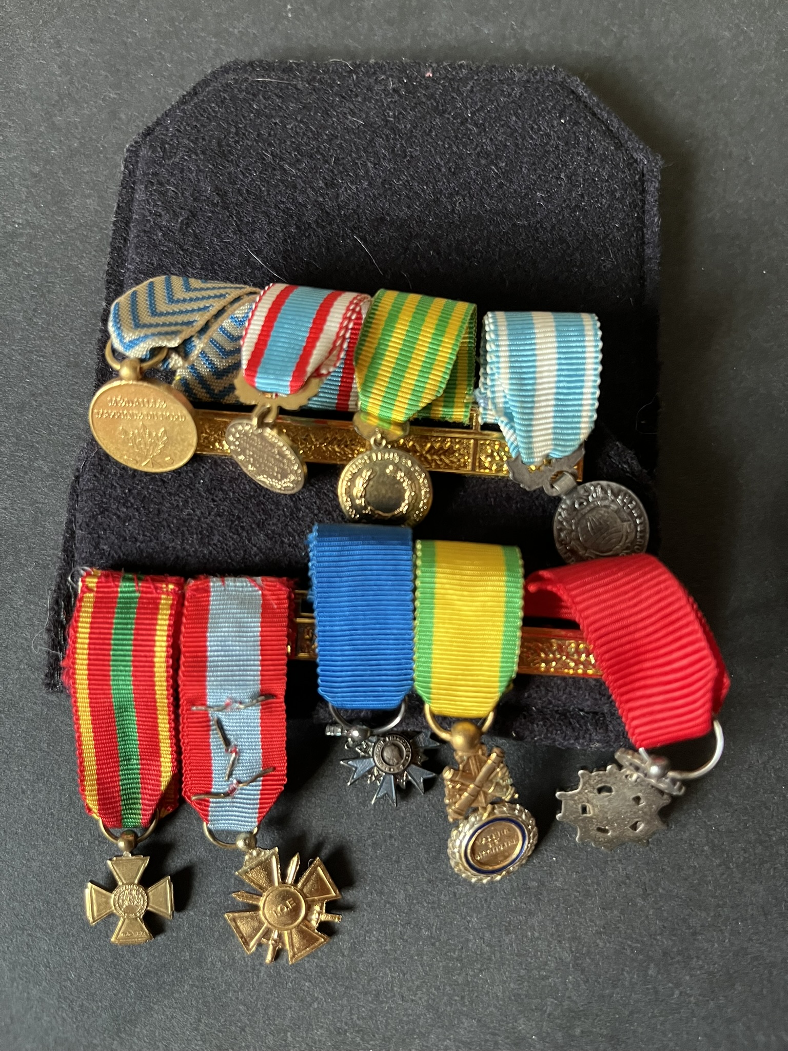 FRANCE Indochine Algerie , 9 pièces , groupe de miniatures d’un combattant en Indochine et Algérie , beau montage pour la pochette du blazer. FRANCE Indochina Algeria, 9 pieces, group of... en savoir plus