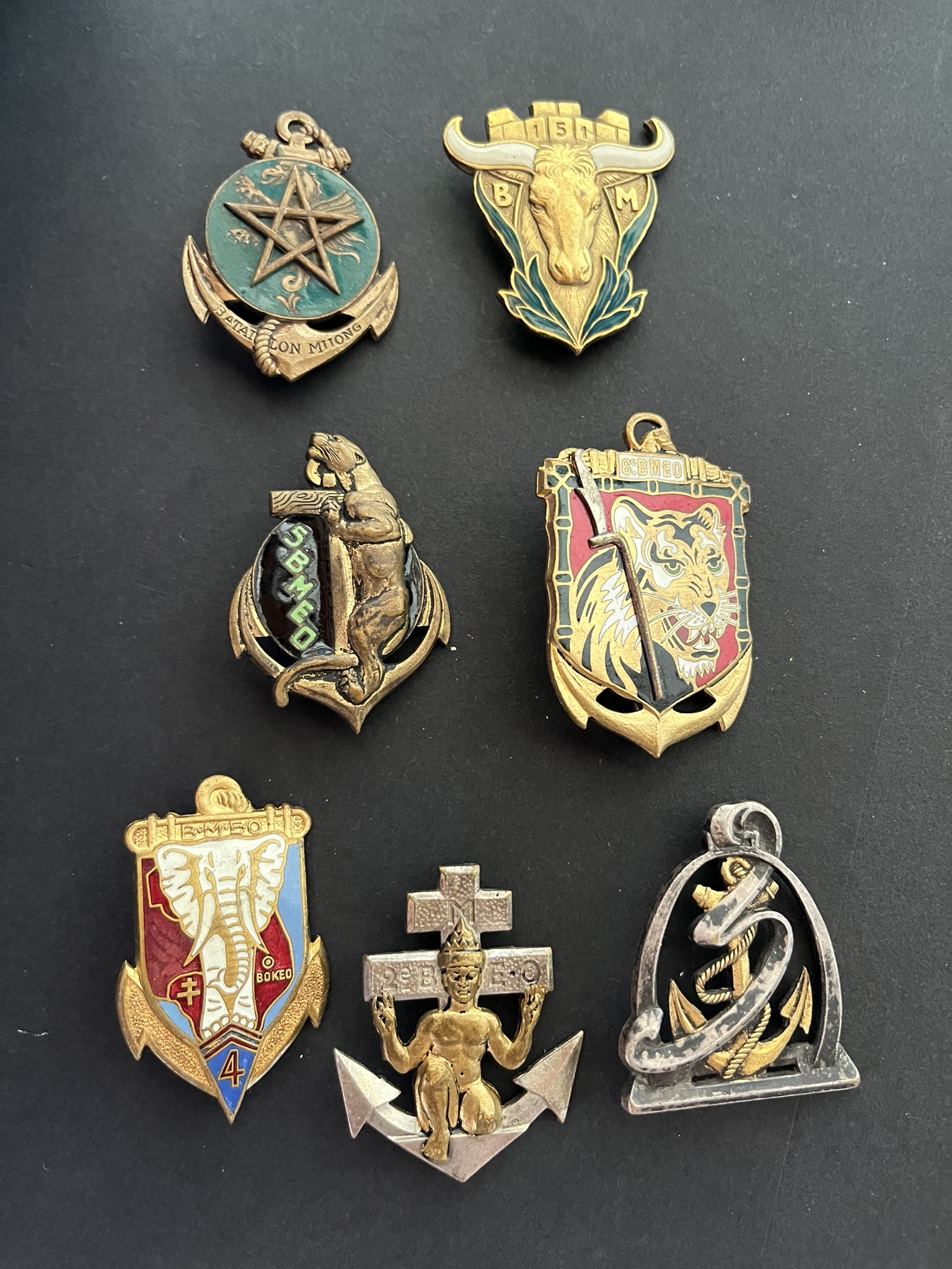 Lot de 7 pièces , Régiment Mixte du Cambodge Drago PN, Bataillon Muong Drago OM, BM 151 Drago Ber, 2 BMEO Drago OM, 4 BMEO Drago Ber, 5 BMEO (Panthère) Drago Ber, 6 BMEO Drago OM. Lot of 7... en savoir plus