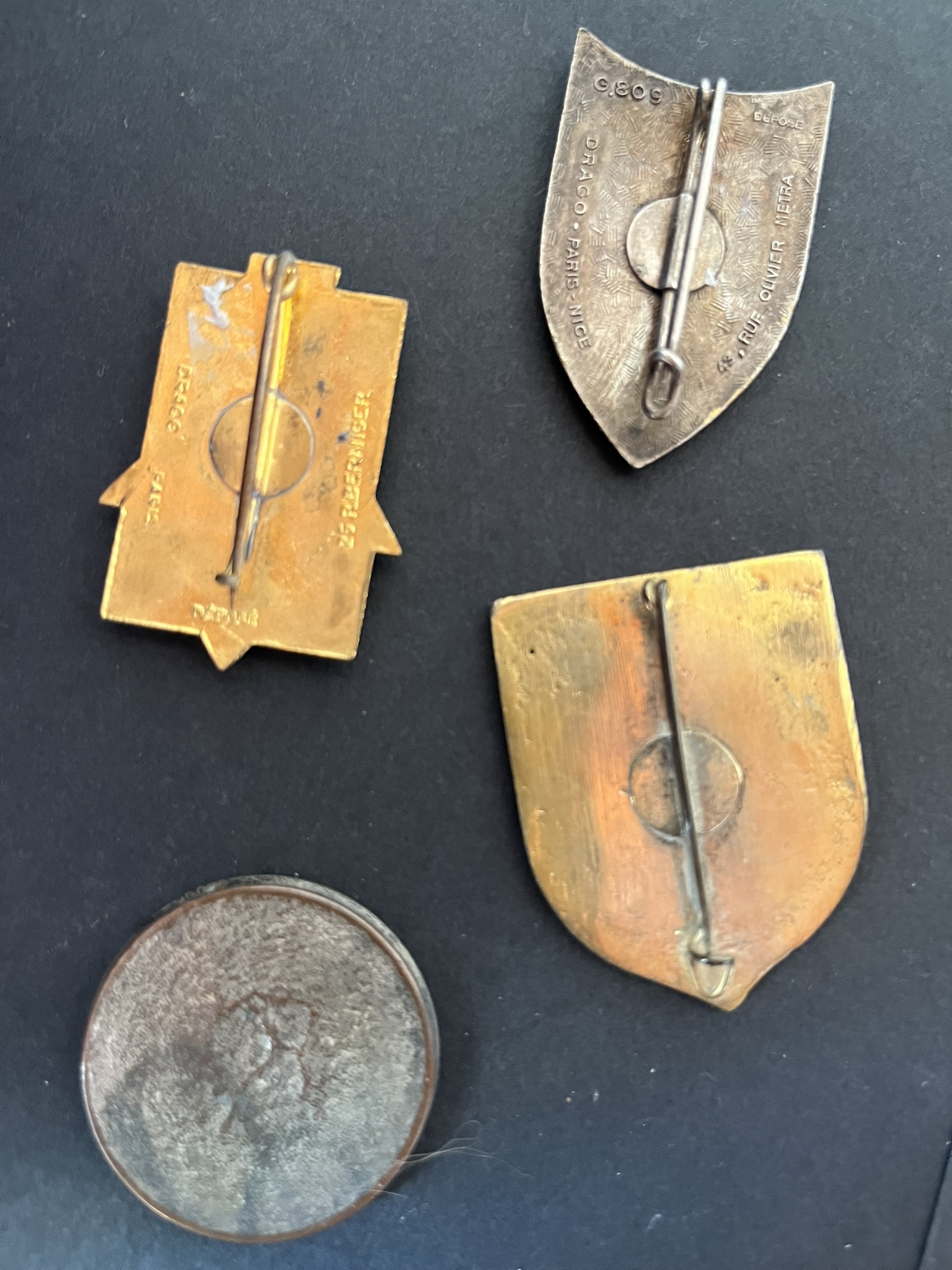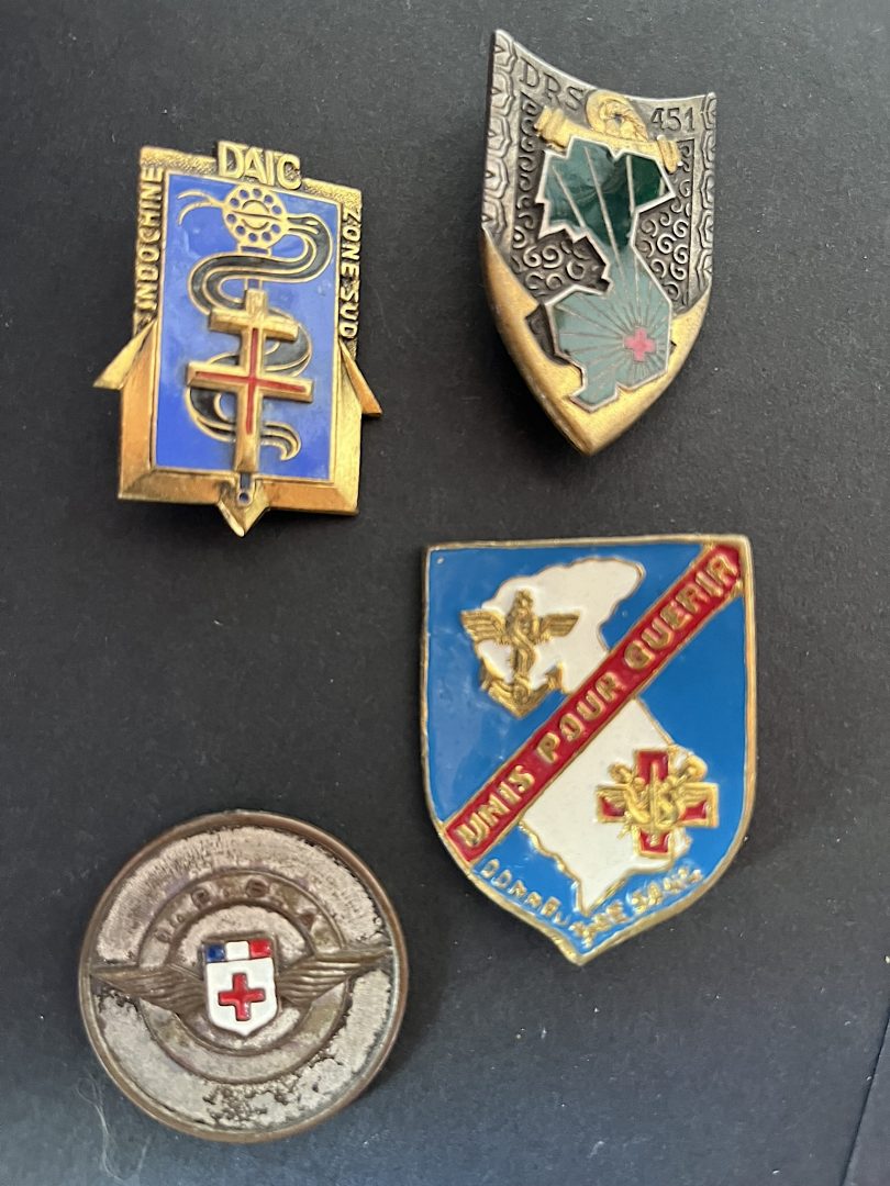 Lot 4 pièces , DAIC Indochine Sud Est Drago Ber, Centre Don du Sang en EO peint grand insigne fabrication locale, DRS 451 Drago OM, médaillon IPSA métal léger peint , trace de bélière. Lot... en savoir plus