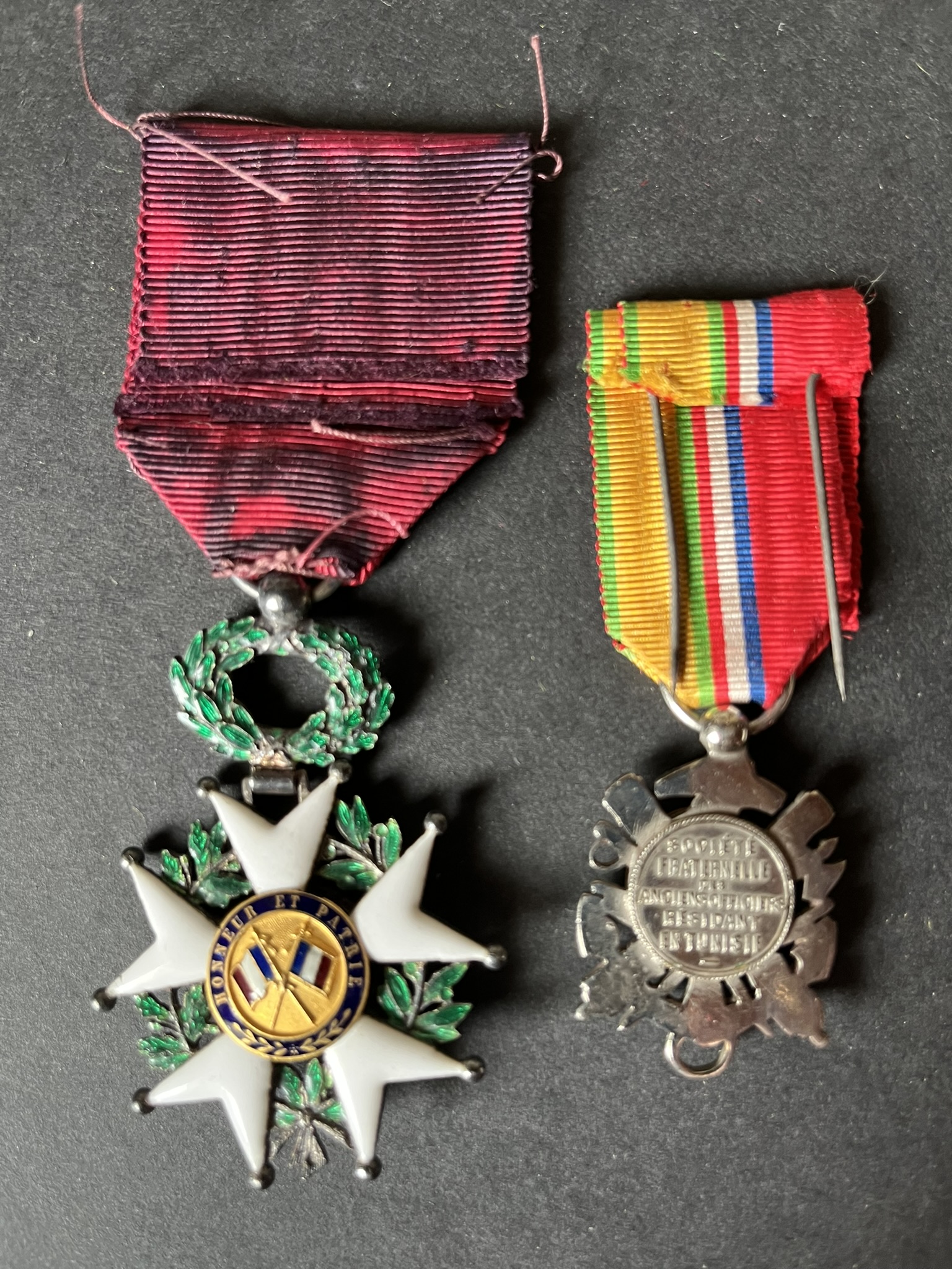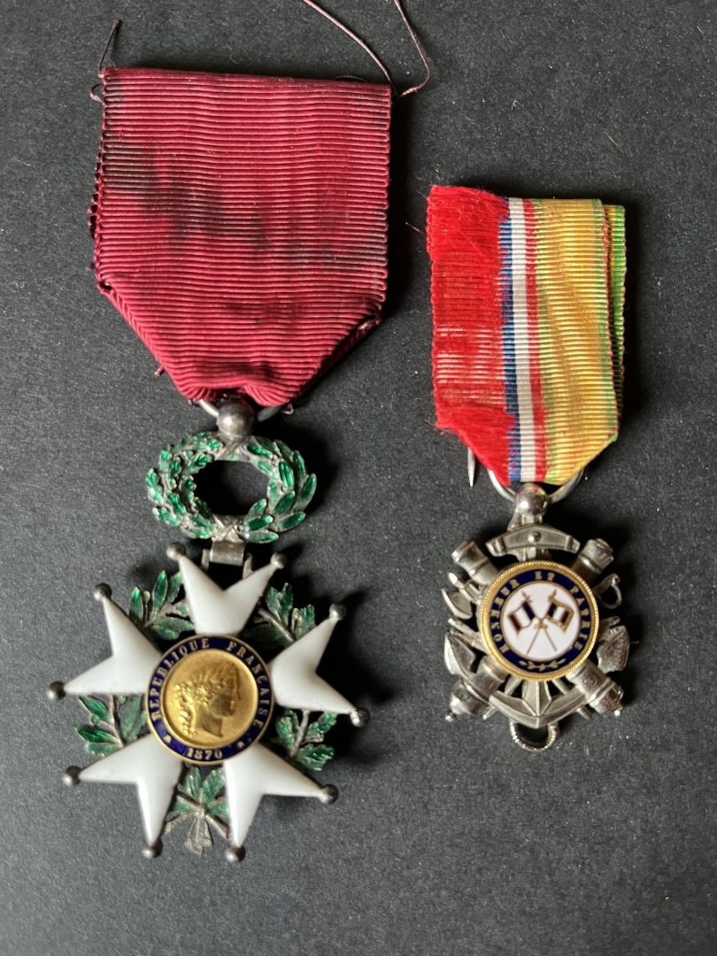 FRANCE 3ème République , 2 pièces , médaille émaillée de la Société Fraternelle des anciens Officiers résidant en Tunisie, croix émaillée en argent poinçonné au sanglier et centres... en savoir plus
