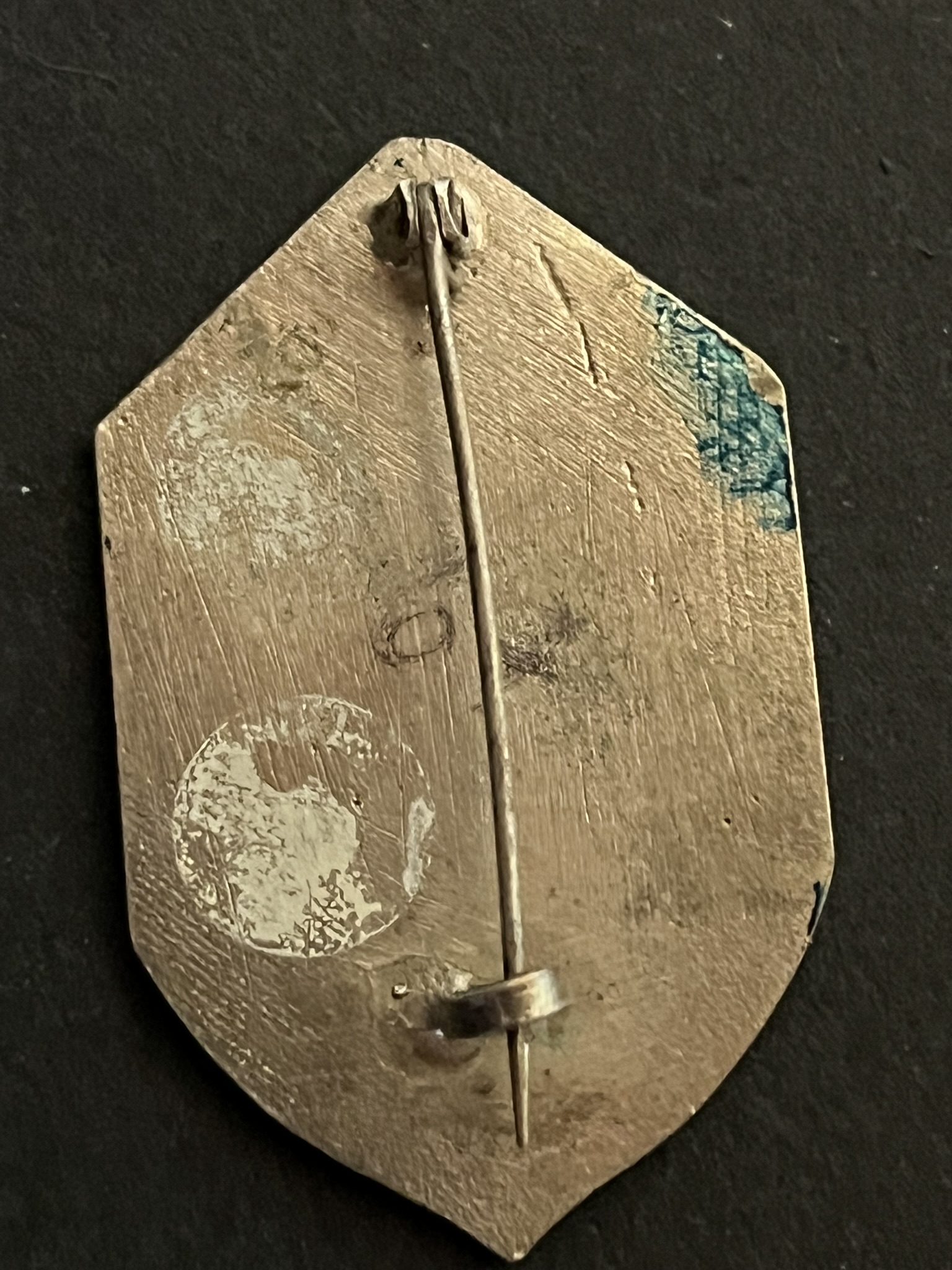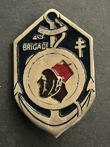 Insigne de la 4 Brigade argent plat peint avec épingle à bascule fabrication du Levant sans marquage. Badge of the 4th Brigade flat silver painted with hinged pin Levant manufacture without... en savoir plus