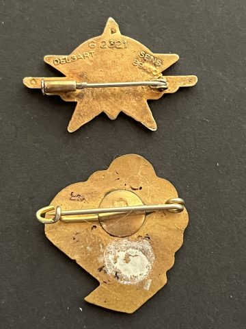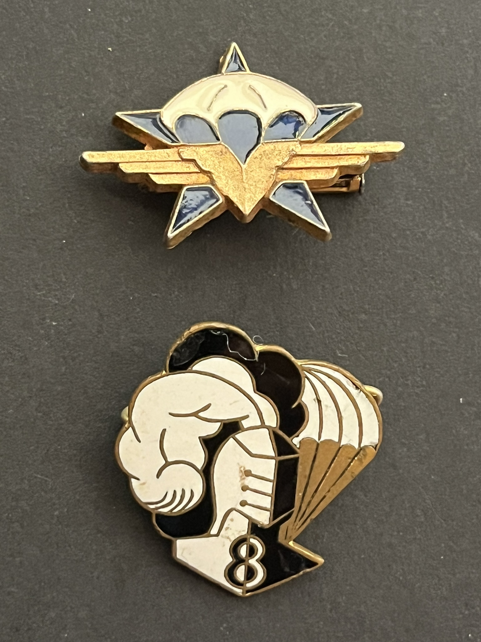 Lot 2 pièces , 8éme Compagnie du 1 RCP,poinçon AB, 1 RCP ARGENT poinçonné Delsart. Lot of 2 pieces, 8th Company of the 1st Parachute Chasseur Regiment marked AB, 1st RCP silver punched... en savoir plus