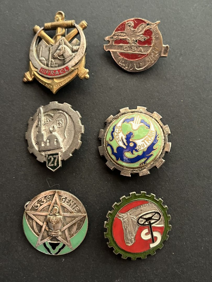 Lot 5 pièces , III batterie Régiment Artillerie Coloniale du Levant Drago Béranger, GSA Levant fabrication locale, 29 escadron du Train Drago Paris déposé, 27 escadron du Train fabrication... en savoir plus