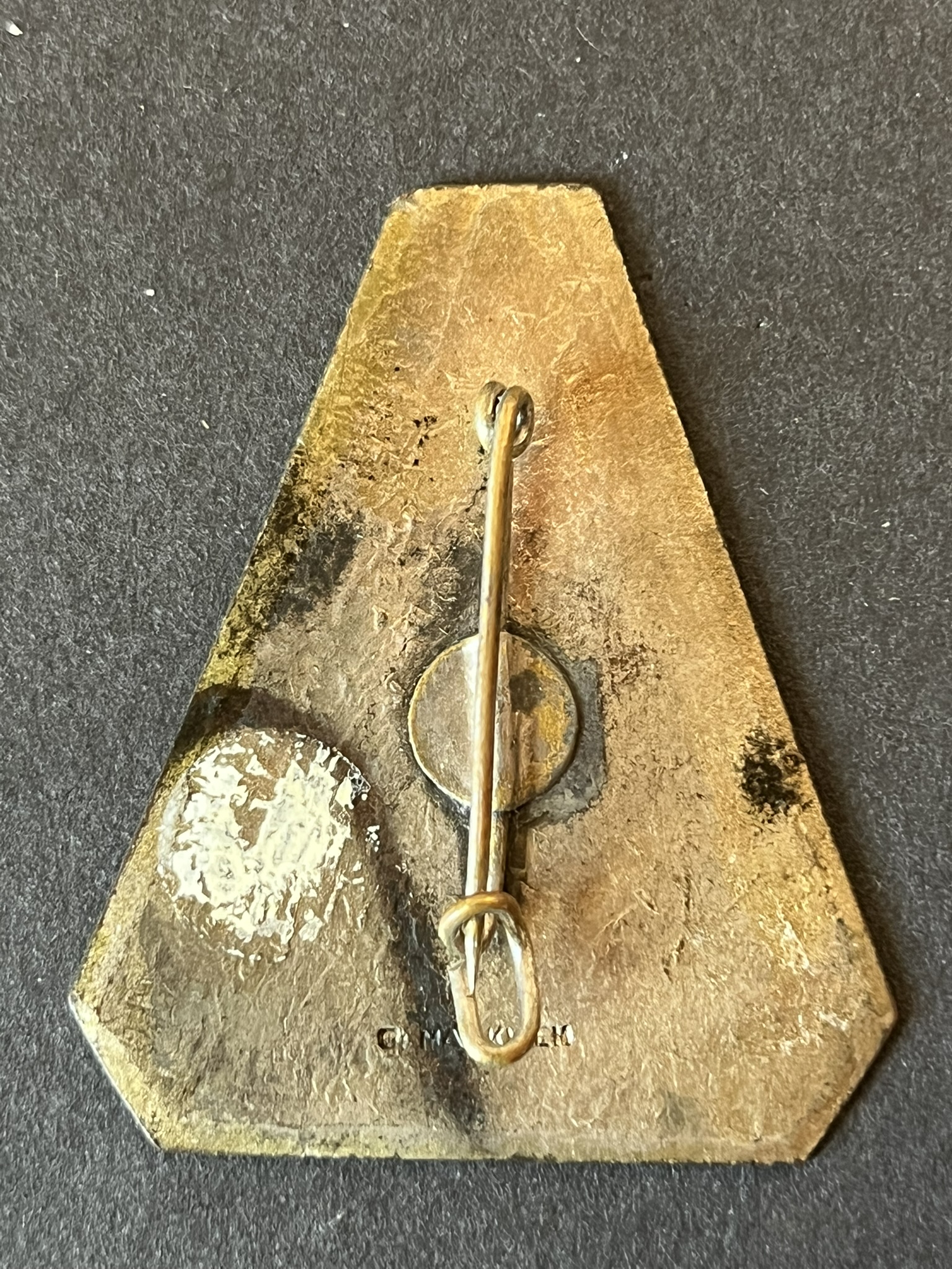 Insigne 9 RIC fabrication locale peinte marquée sous l’épingle poinçon MAU KHIEM 44 x 36 mm. Badge of the 9th Colonial Infantry Regiment locally painted marked under the pin with punch... en savoir plus