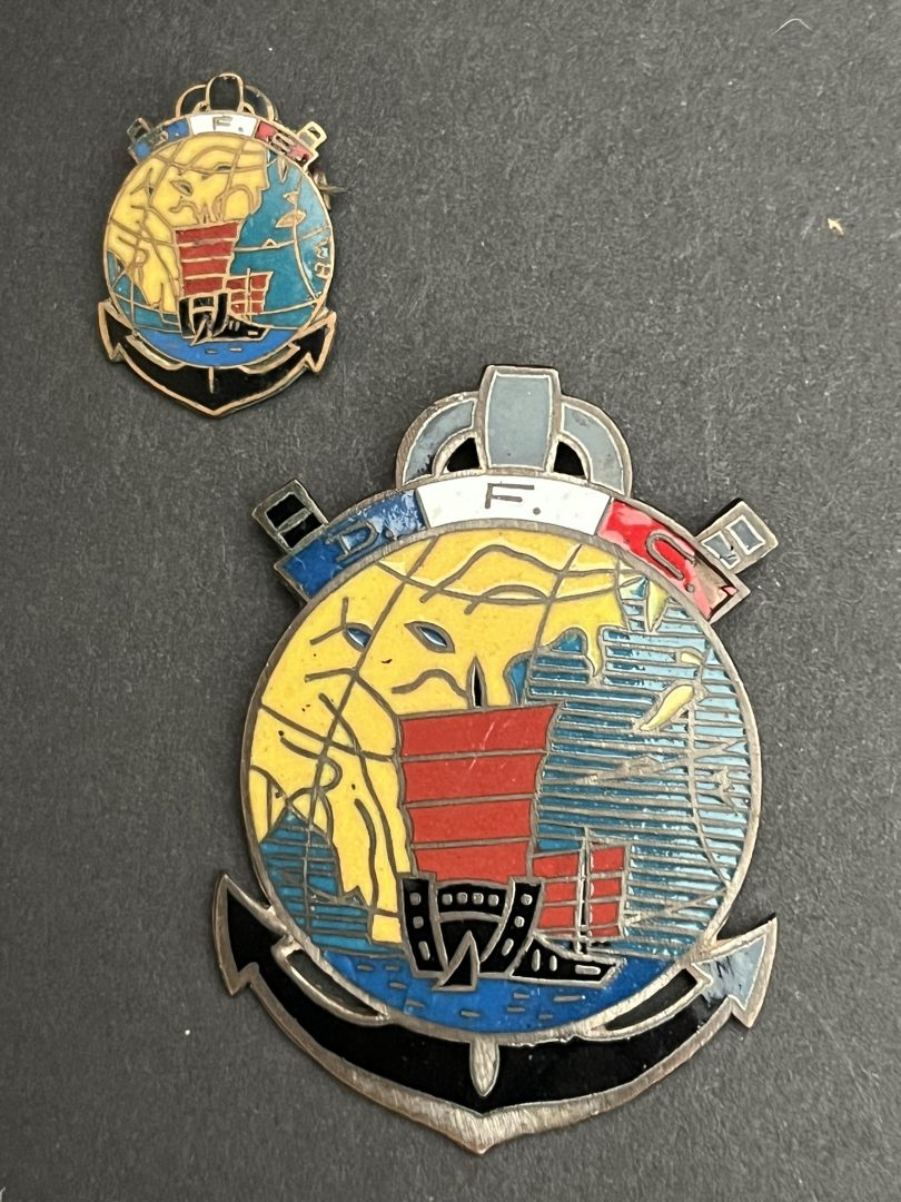 Insigne Détachement Français de Changai , DFC , fabrication chinoise 52 x 36 mm avec une miniature 23 x17 mm en fabrication chinoise. Badge of the French Detachment of Shanghai DFC Chinese... en savoir plus
