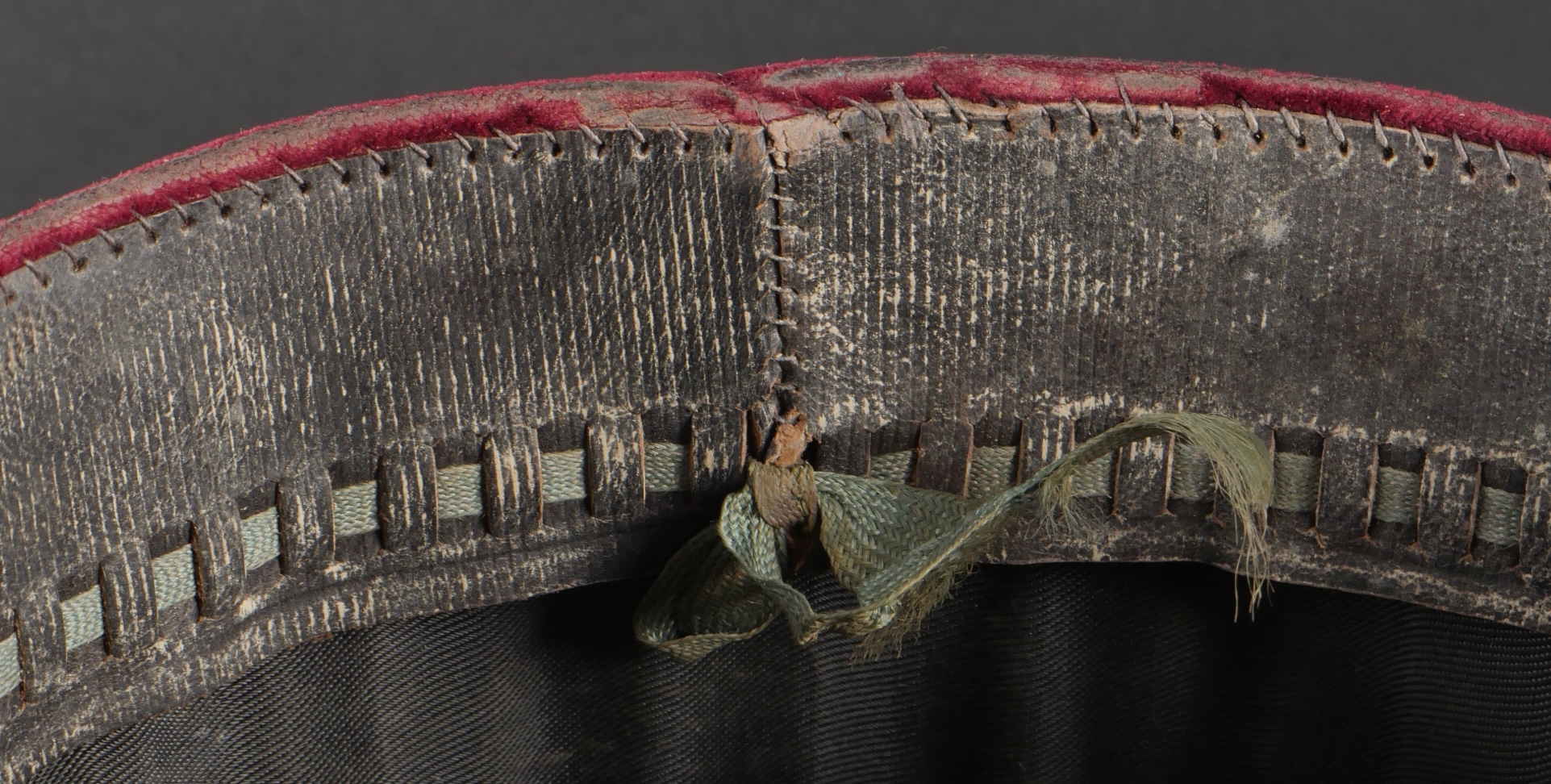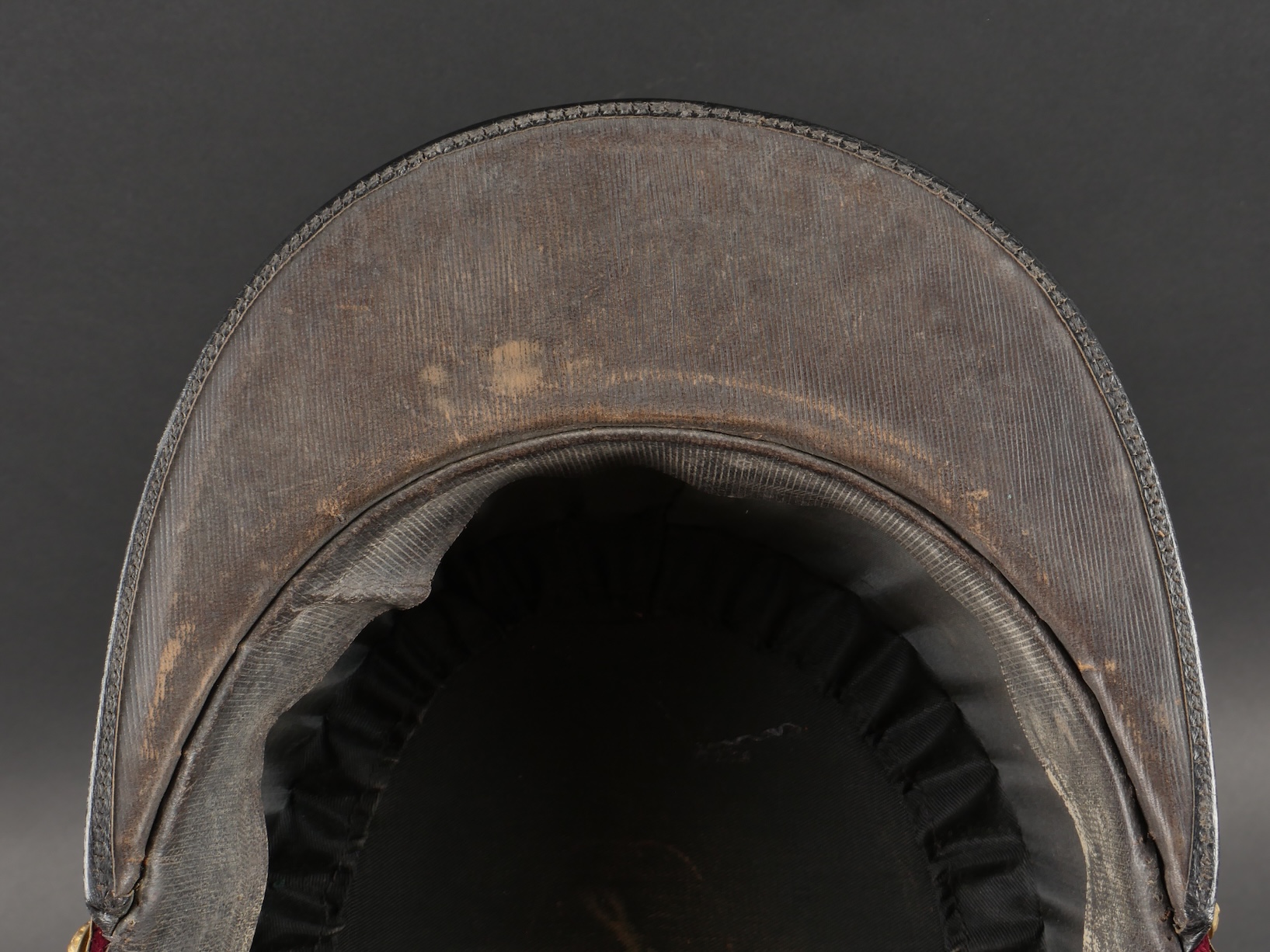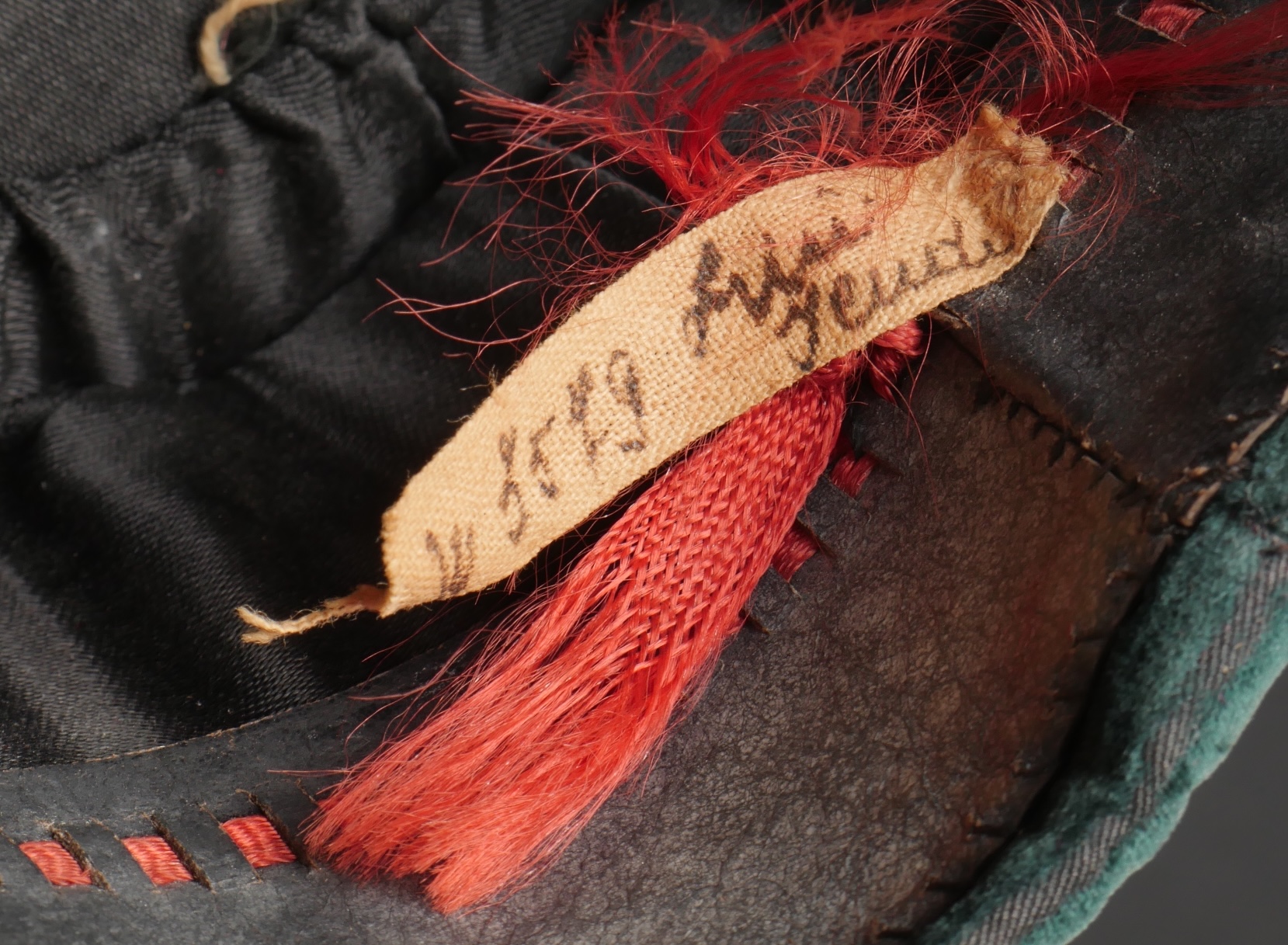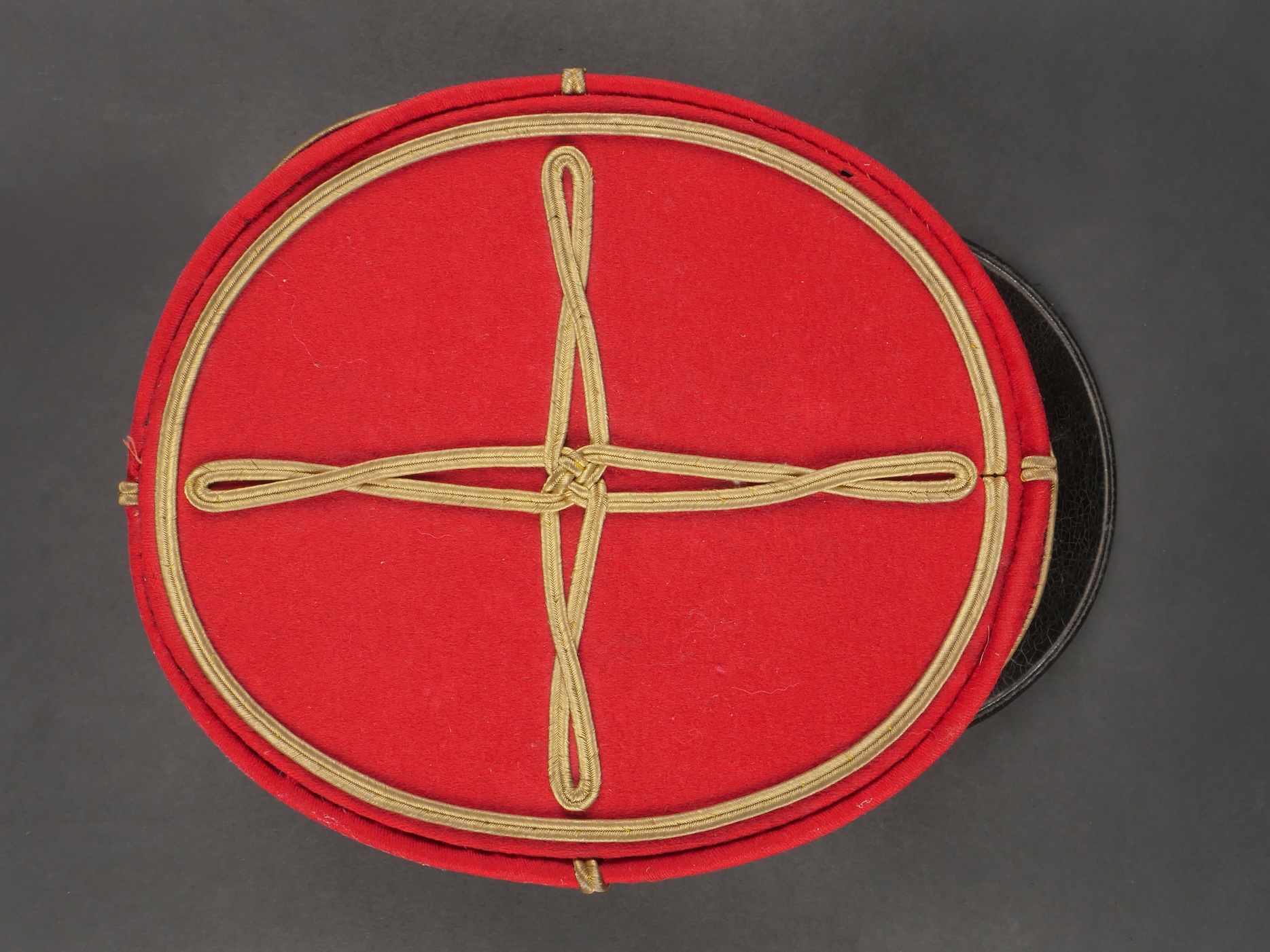 Lot de képis du service de santé. Comprenant un képi de lieutenant pharmacien, plateau rouge garance, bandeau en velours vert, petits boutons du service de santé. Visière en cuir avec jonc en... en savoir plus