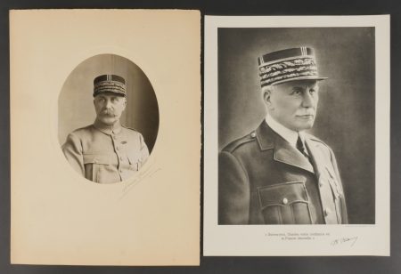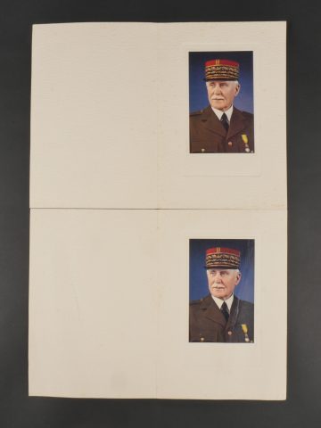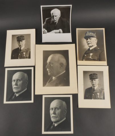 Lot de portraits du Maréchal. Comprenant onze portraits papier du Maréchal Pétain de plusieurs tailles dont un lorsqu’il est général, dix sous Vichy dont deux en couleurs. On y joint... en savoir plus