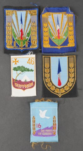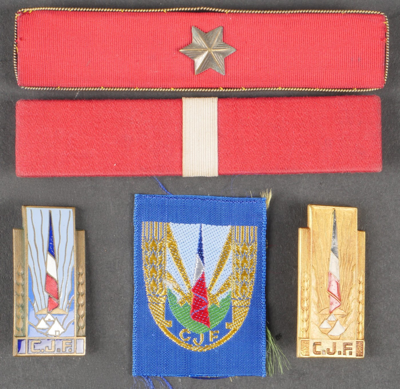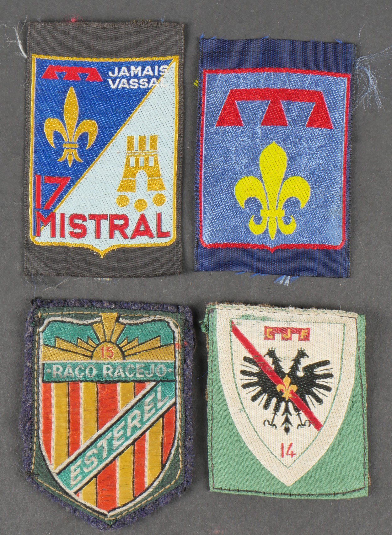 Lot d’insignes Chantiers de Jeunesse. Comprenant les insignes tissu des groupements 14 sur fond vert, 15, 16, 17, 46. L’insigne tissu du commissariat de Provence. Trois insignes du... en savoir plus