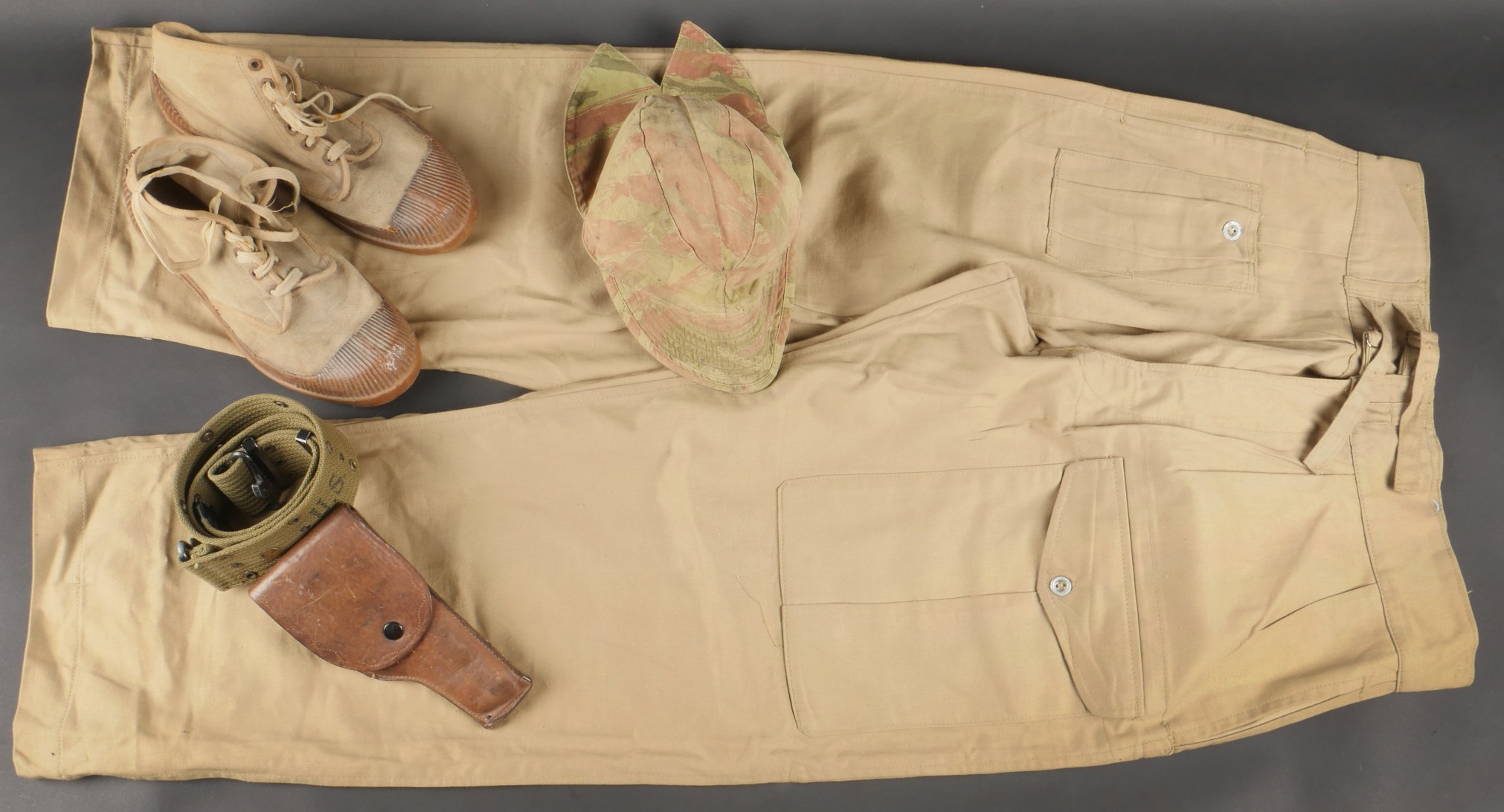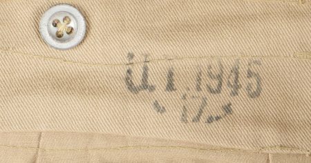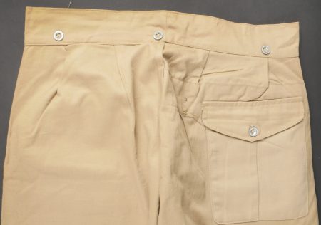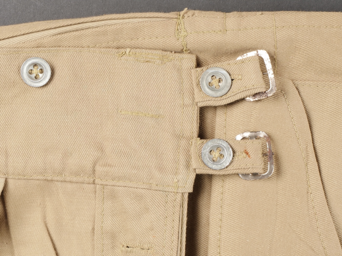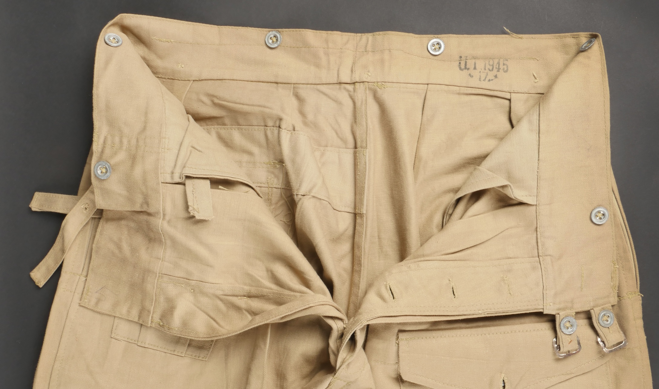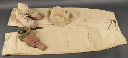 Lot divers. Comprenant un pantalon anglais en toile modèle jamais porté daté 1945, complet avec ses boucles de serrage et ses boutons d’origine. Un ceinturon US M36 daté 1944 en toile... en savoir plus