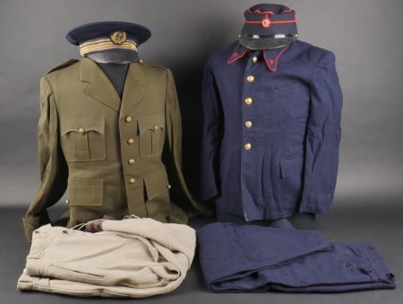 Lot d’uniformes. Comprenant une vareuse des PTT ainsi qu’un képi correspondant à cette fonction. Une vareuse d’officier d’artillerie en drap kaki de fabrication après... en savoir plus