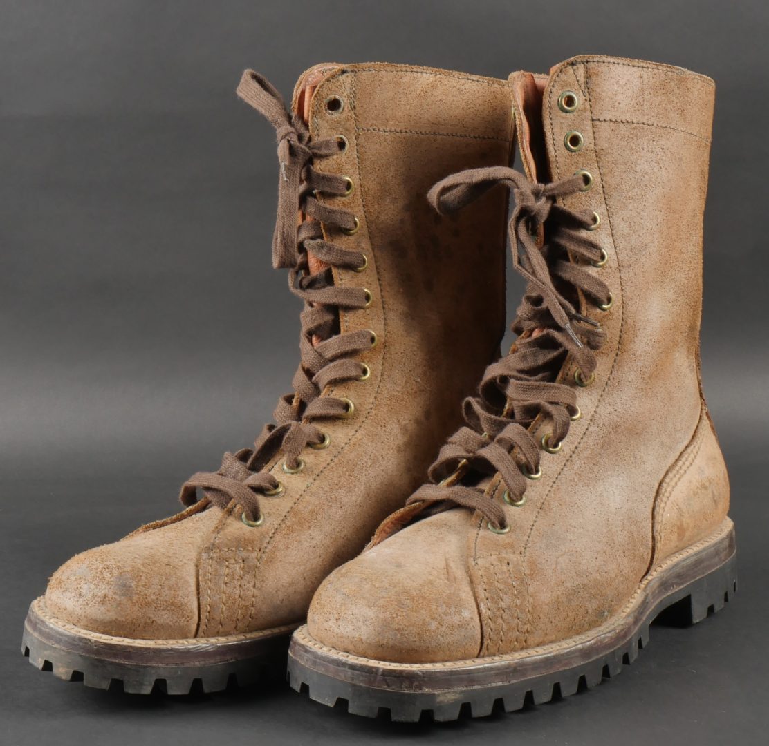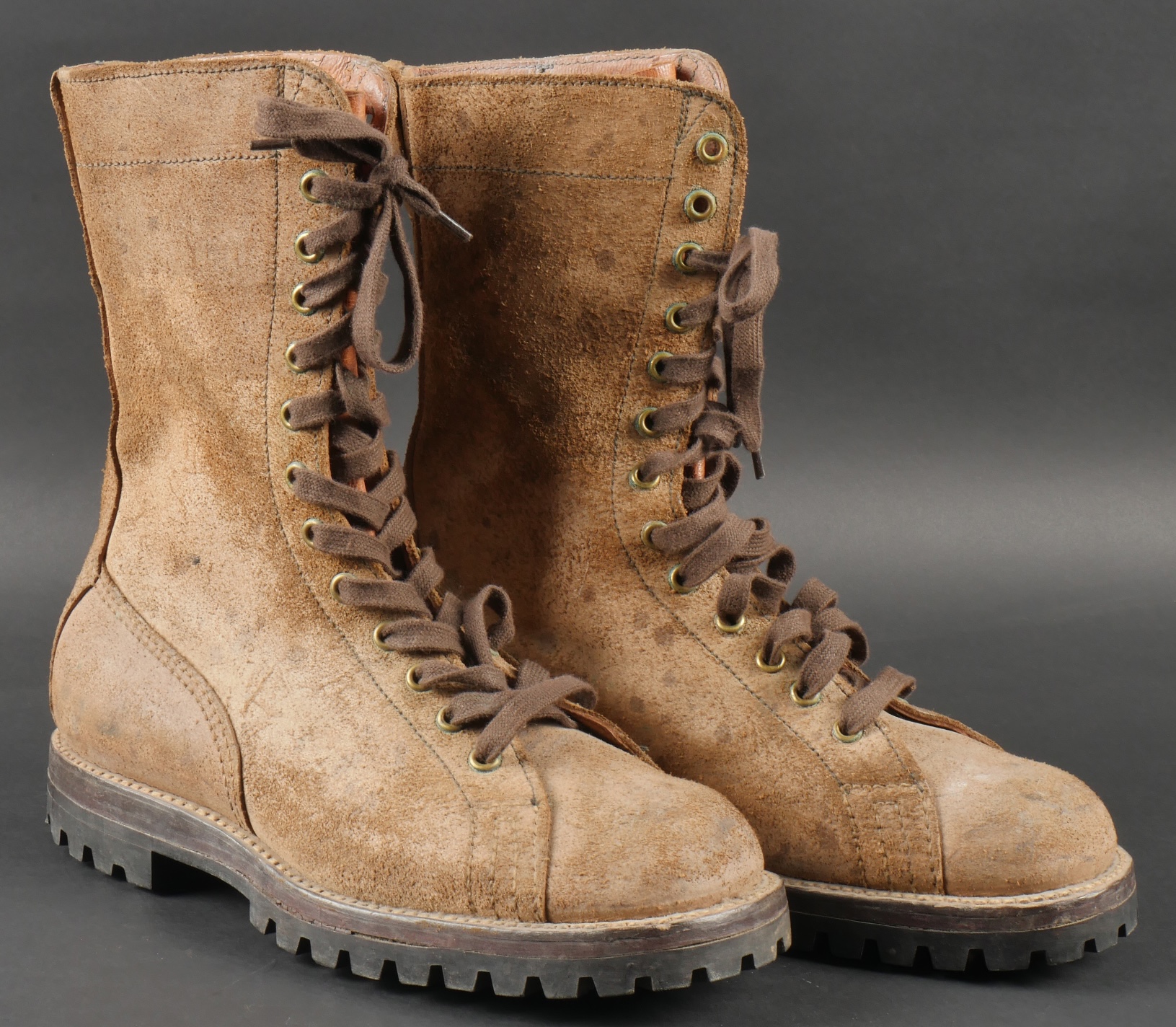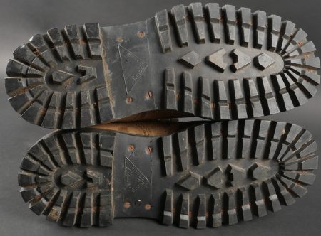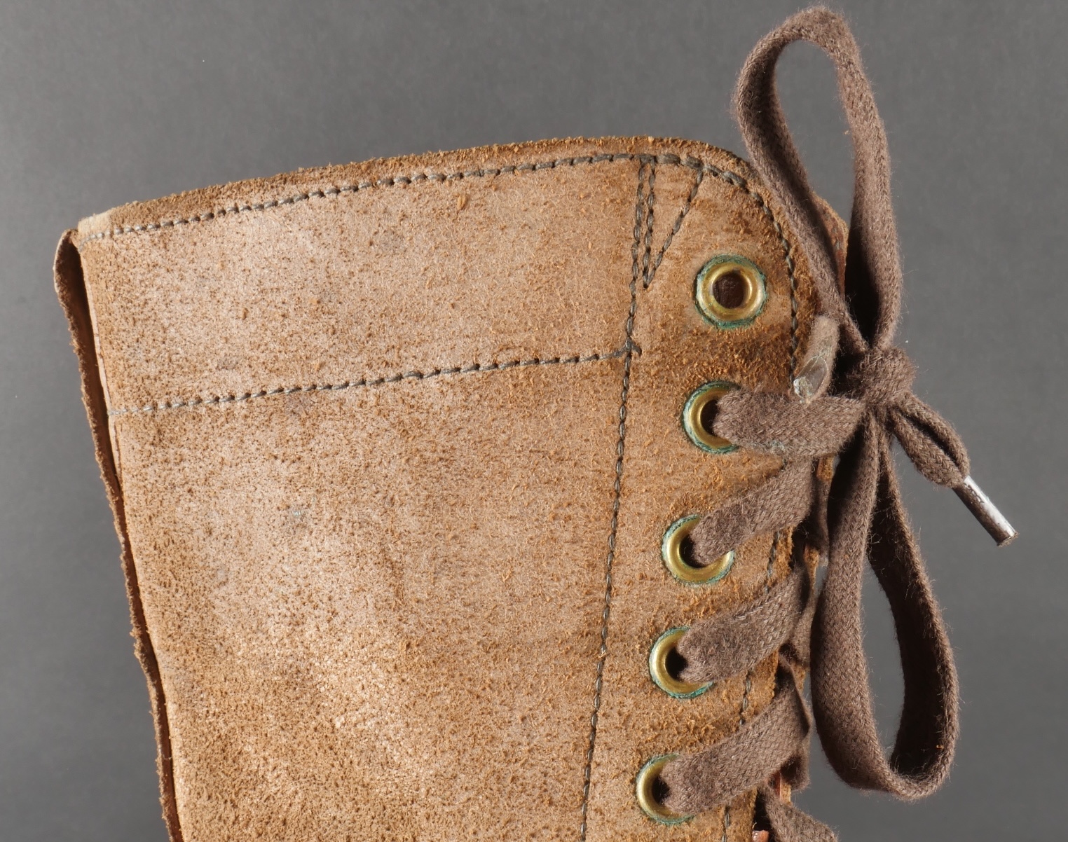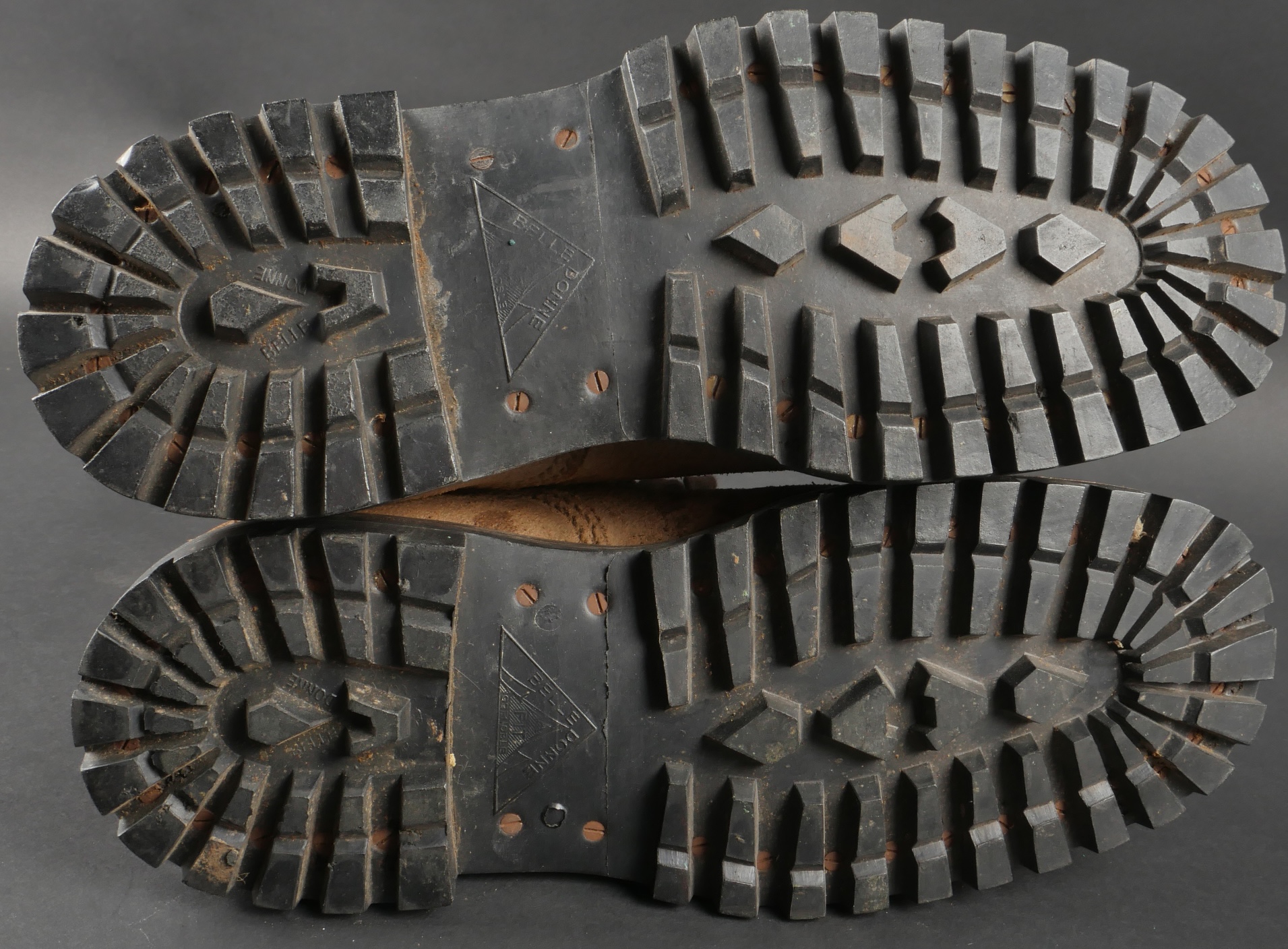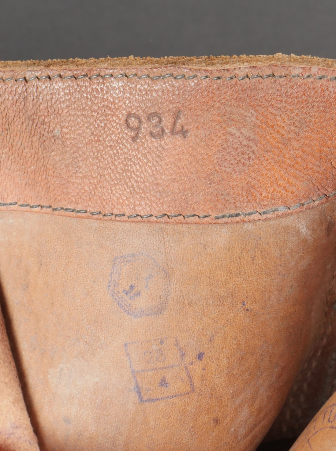 Paire de bottes de saut TAP 50 datées 1951. Semelle caoutchouc vissée de marque Belledonne Fit. Languette possédant un tampon de réception indiquant l’année 1951. Tampons sur la semelle... en savoir plus