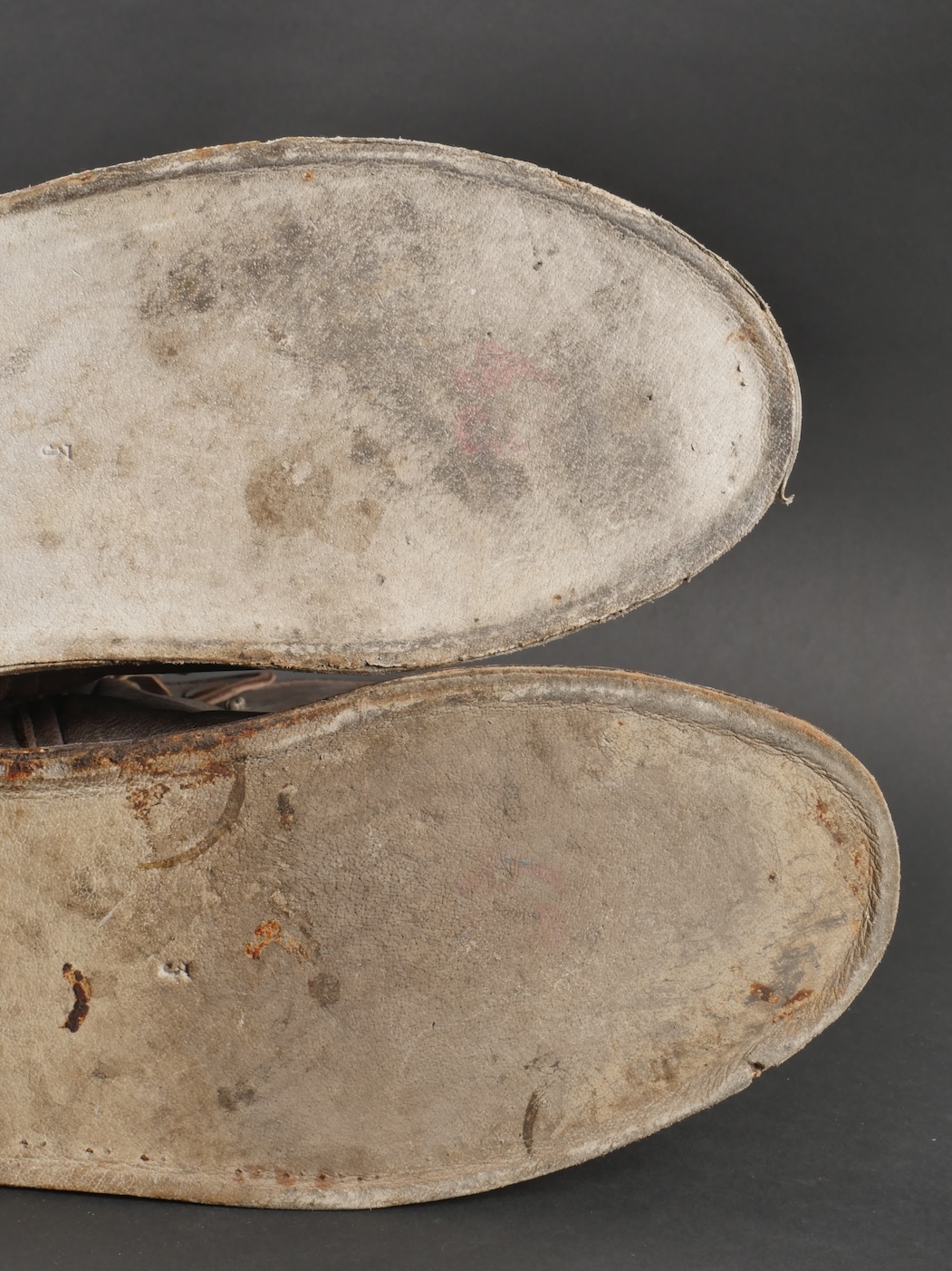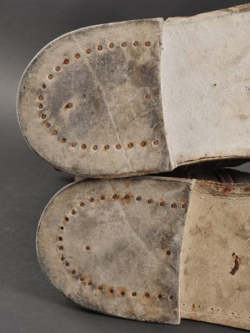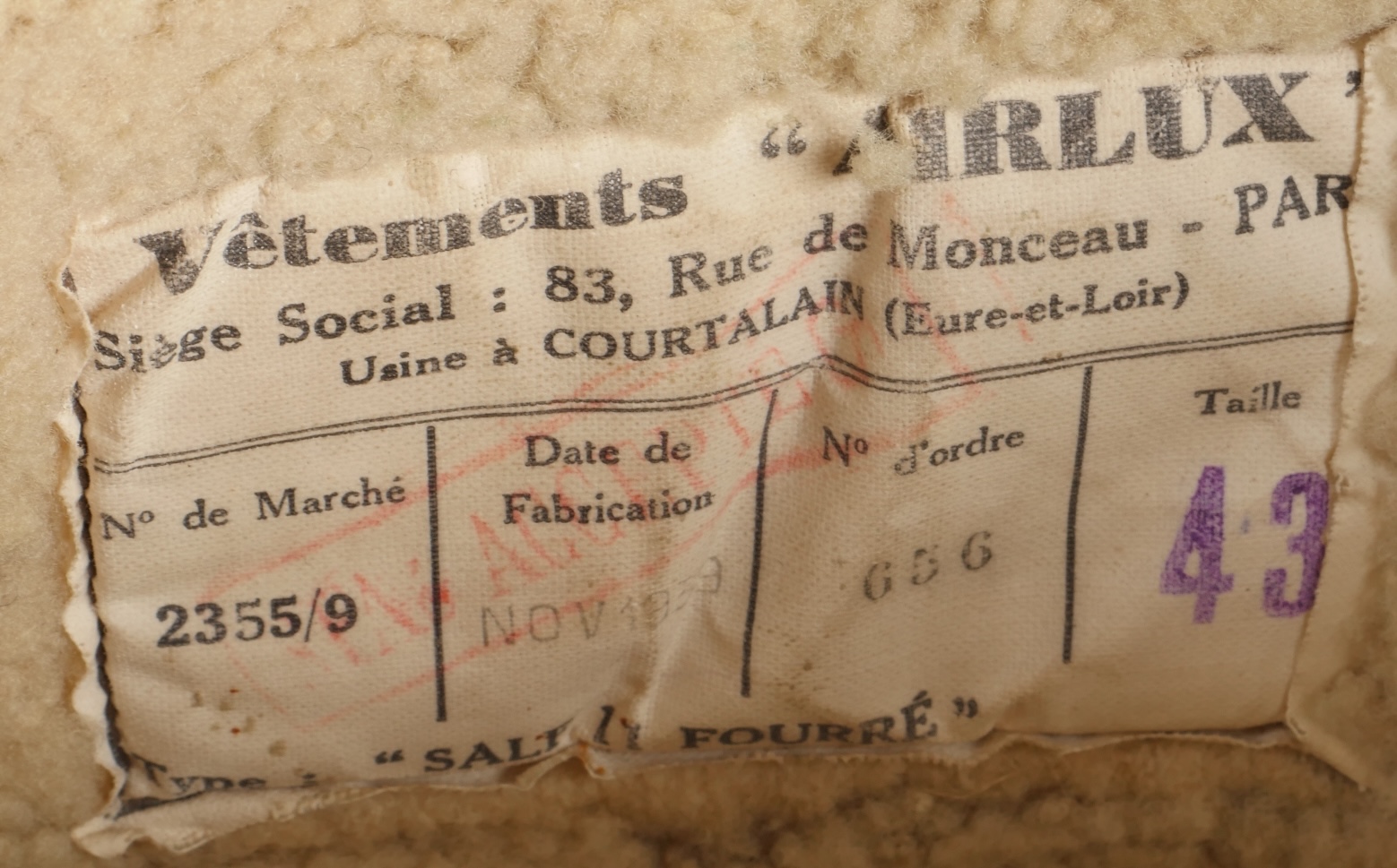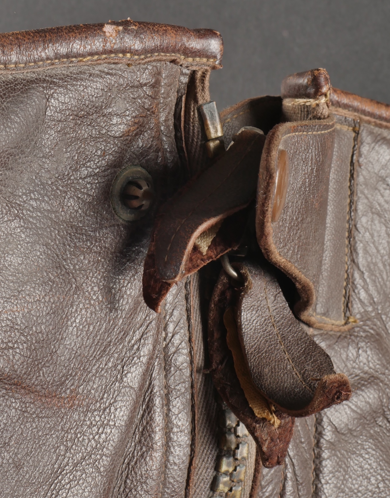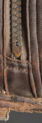 Paire de bottes de vol fourrées Airlux. En cuir marron fourré de peau de mouton, fermetures éclaires brevetés SGDG grippées. Pattes de serrage à pressions en haut de chaque botte, semelles... en savoir plus