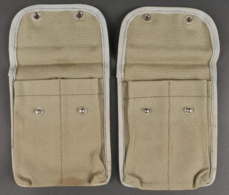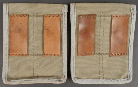 Paire de portes chargeurs spécifiques aux commandos Marine et destinés à recevoir les chargeurs pour la carabine USM2. Confectionnés en toile kaki avec renfort en tissu gris bleu, pressions... en savoir plus