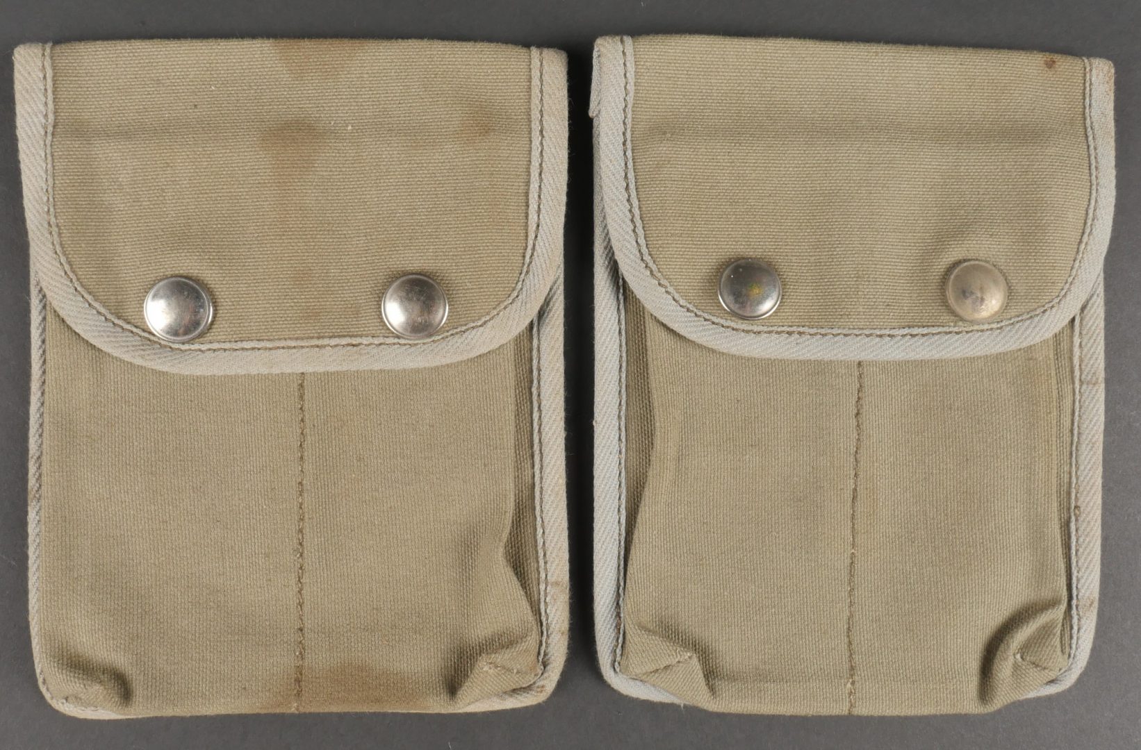 Paire de portes chargeurs spécifiques aux commandos Marine et destinés à recevoir les chargeurs pour la carabine USM2. Confectionnés en toile kaki avec renfort en tissu gris bleu, pressions... en savoir plus