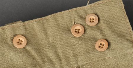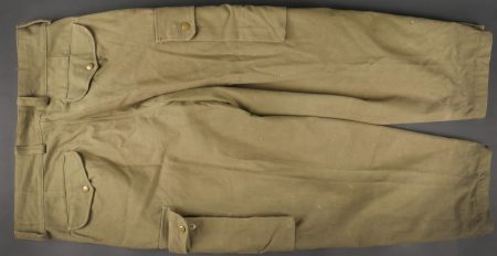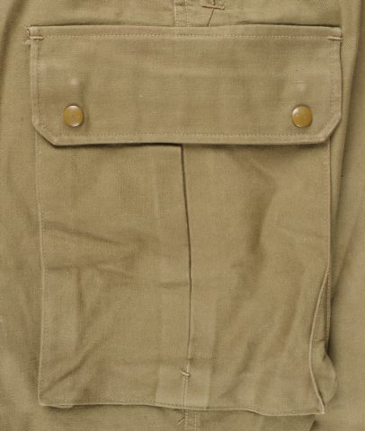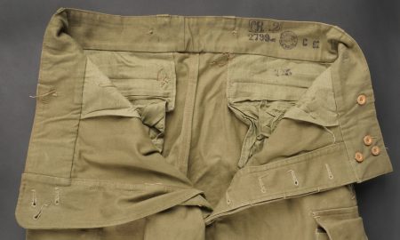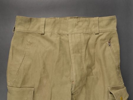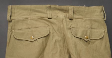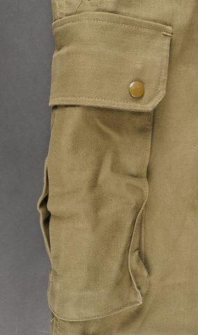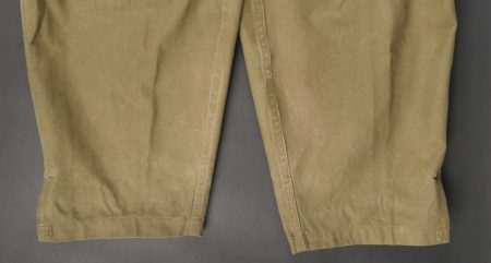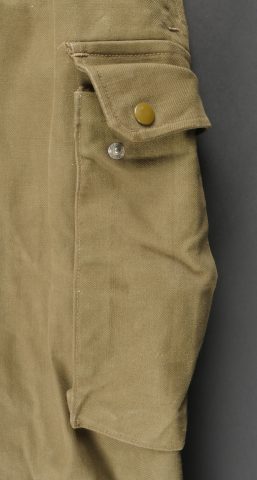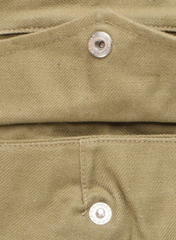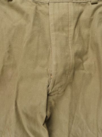 Beau pantalon TAP 47 confectionné en toile kaki, pressions du petit modèle fonctionnelles, en peinture d’origine, fermeture éclair de marque Eclair. Tampons d’un fabricant Parisien... en savoir plus
