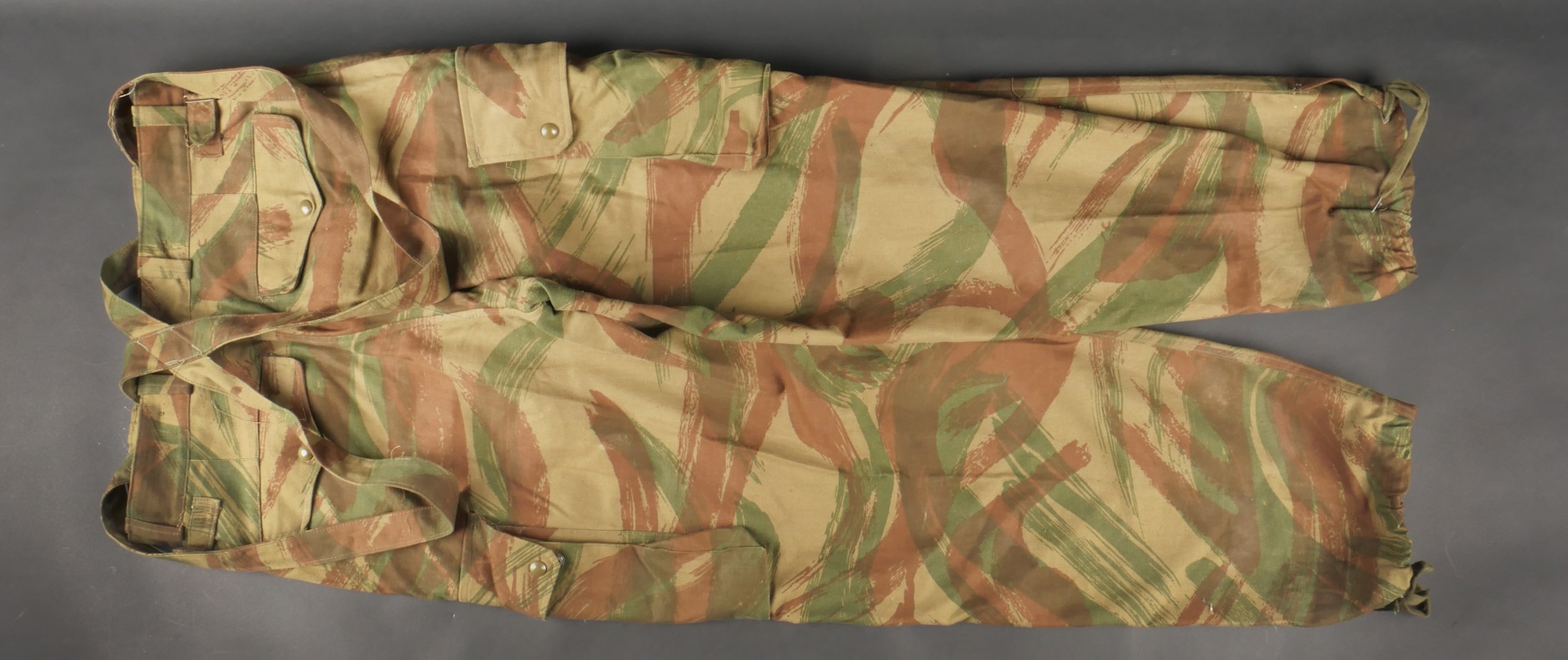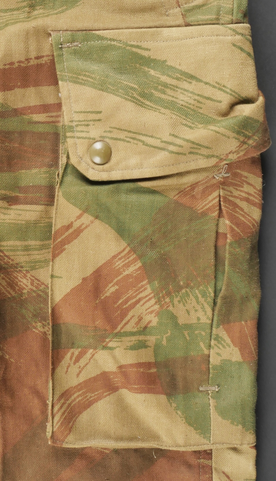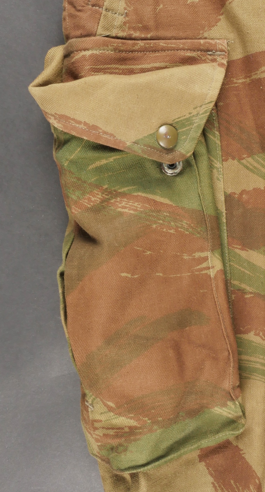 Pantalon TAP 4753 camouflé. Se fermant par six boutons dont les deux derniers ne sont pas apparents, fermeture éclaire de marque EWCO, pressions fonctionnelles et en peinture d’origine.... en savoir plus
