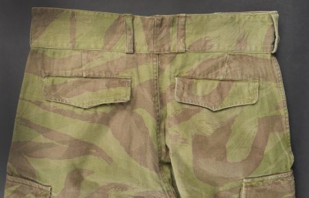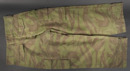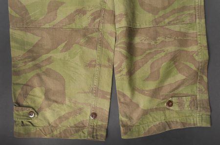 Pantalon TTA 4753. Pantalon se fermant par une série de boutons dont les deux derniers sont apparents, entièrement camouflé dans une toile type 53, doublure en coton écru, marquage fabricant... en savoir plus