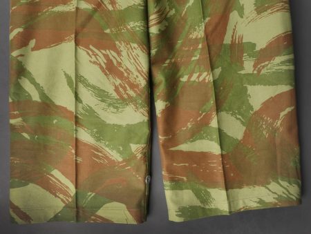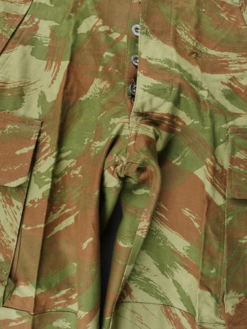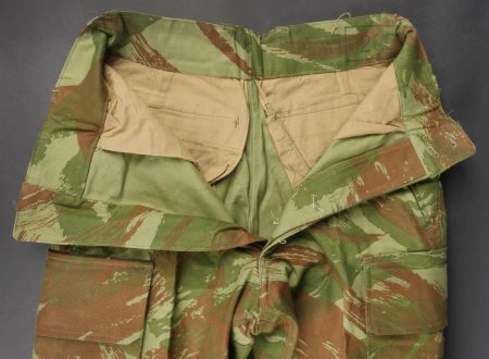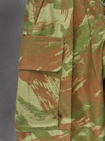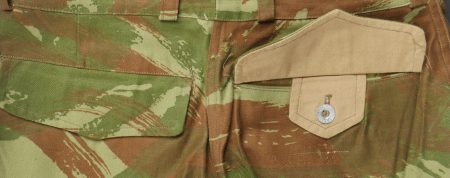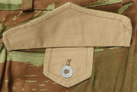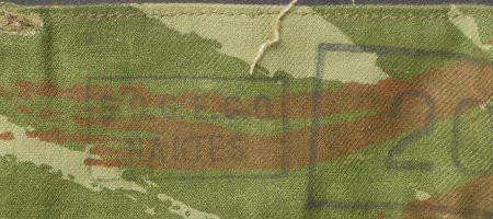 Pantalon TTA 4753. Pantalon se fermant par une série de boutons dont les deux derniers sont apparents, entièrement camouflé dans une toile type 53, doublure en coton marron, marquage fabricant... en savoir plus