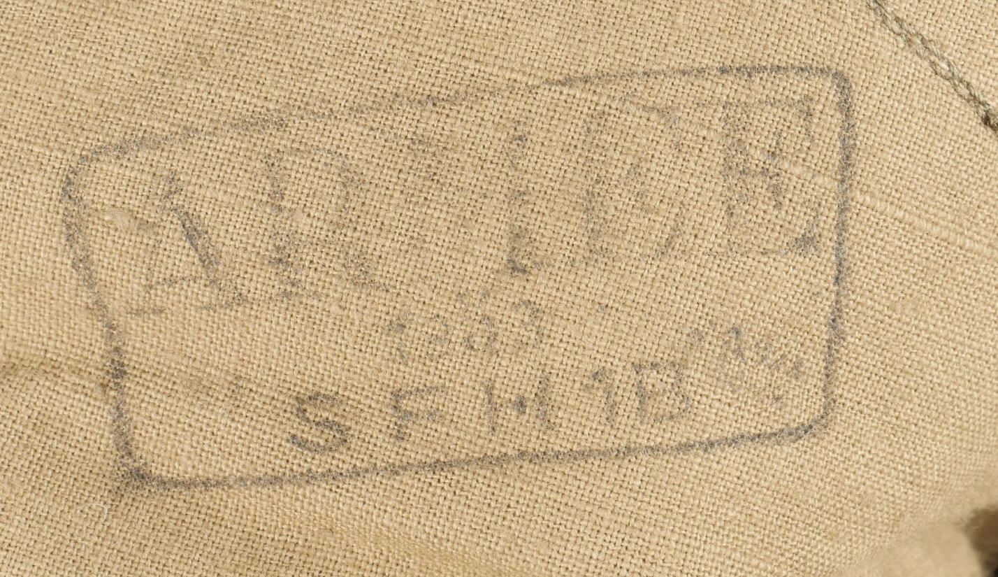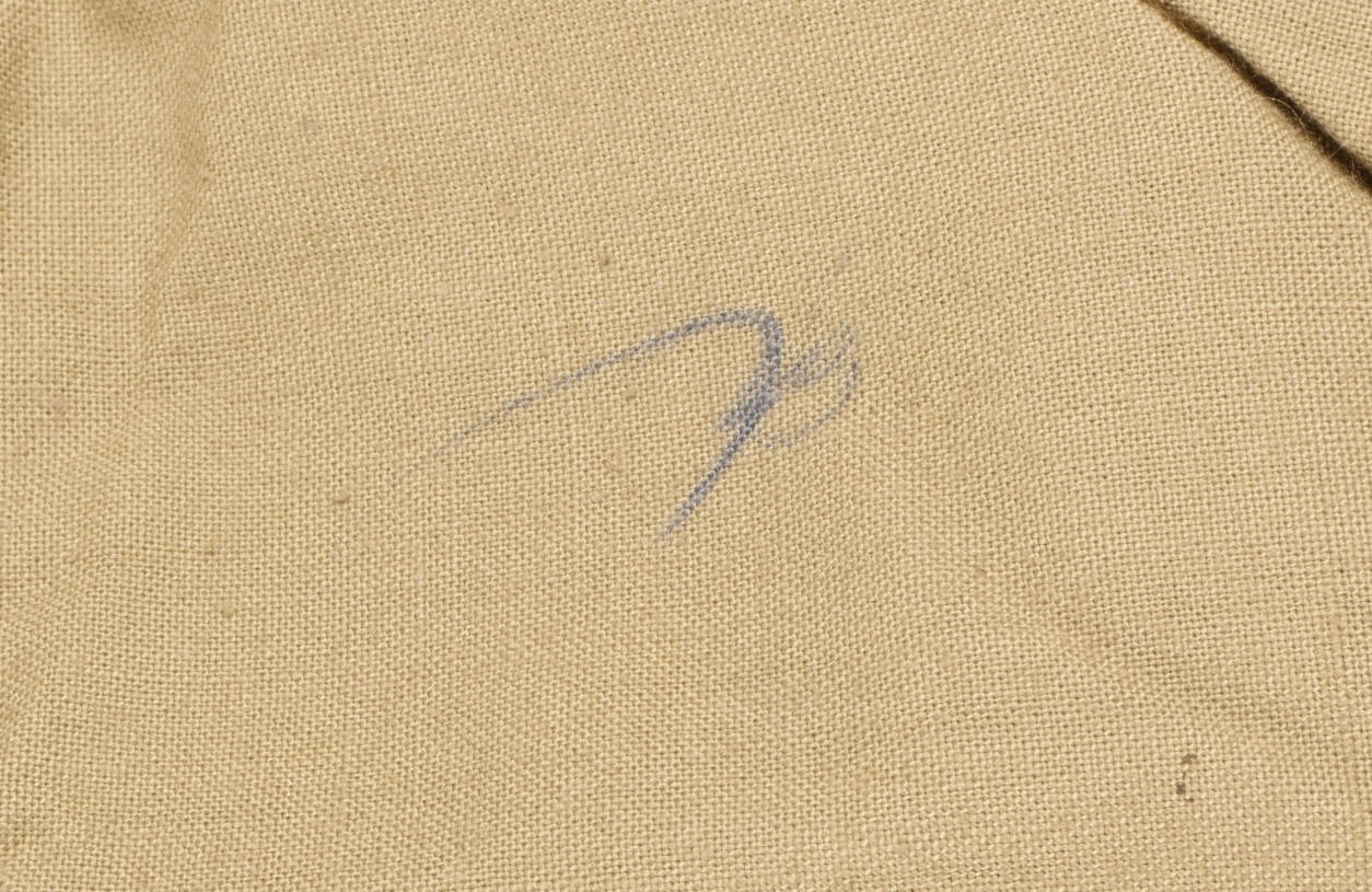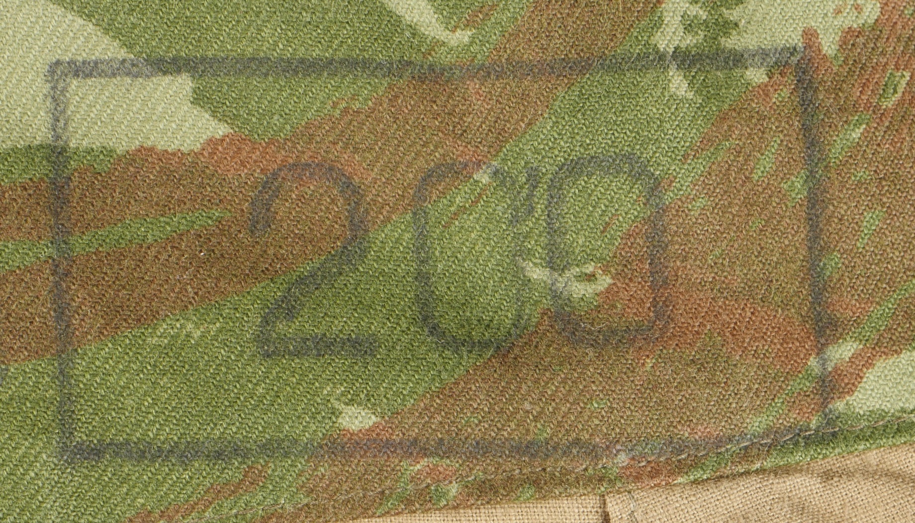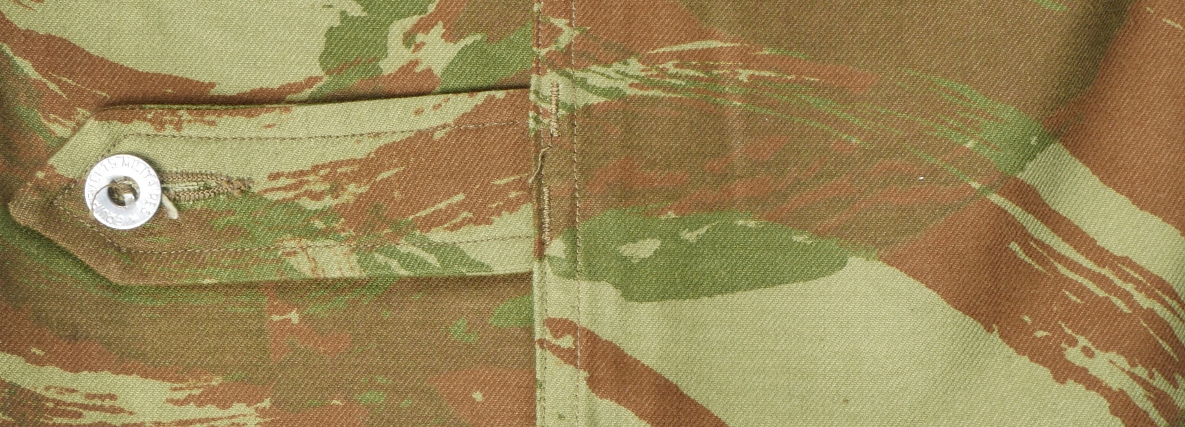 Pantalon TTA 4753. Pantalon se fermant par une série de boutons dont les deux derniers sont apparents, entièrement camouflé dans une toile type 53, doublure en coton marron, marquage fabricant... en savoir plus