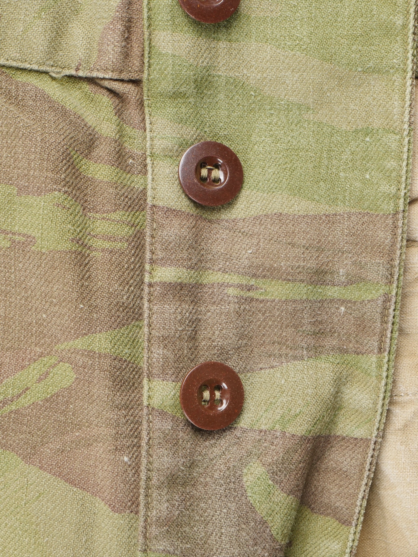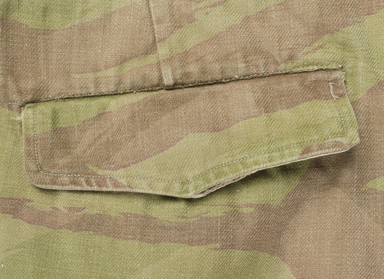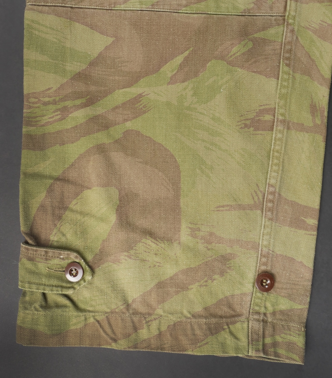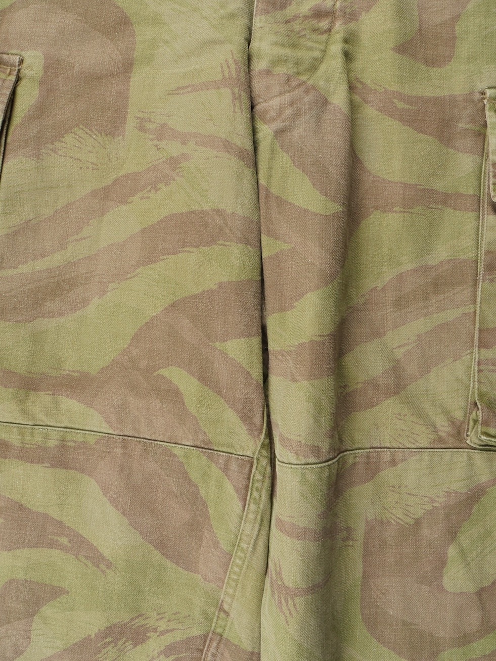 Pantalon TTA 4753. Pantalon se fermant par une série de boutons dont les deux derniers sont apparents, entièrement camouflé dans une toile type 53, doublure en coton écru, marquage fabricant... en savoir plus