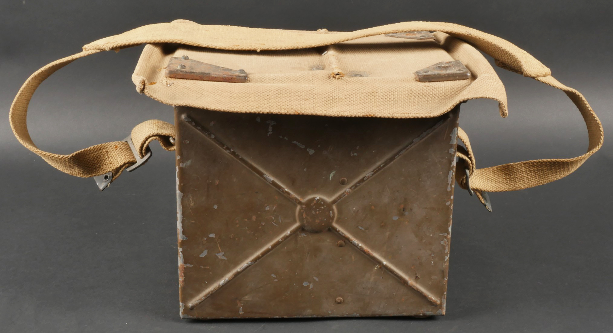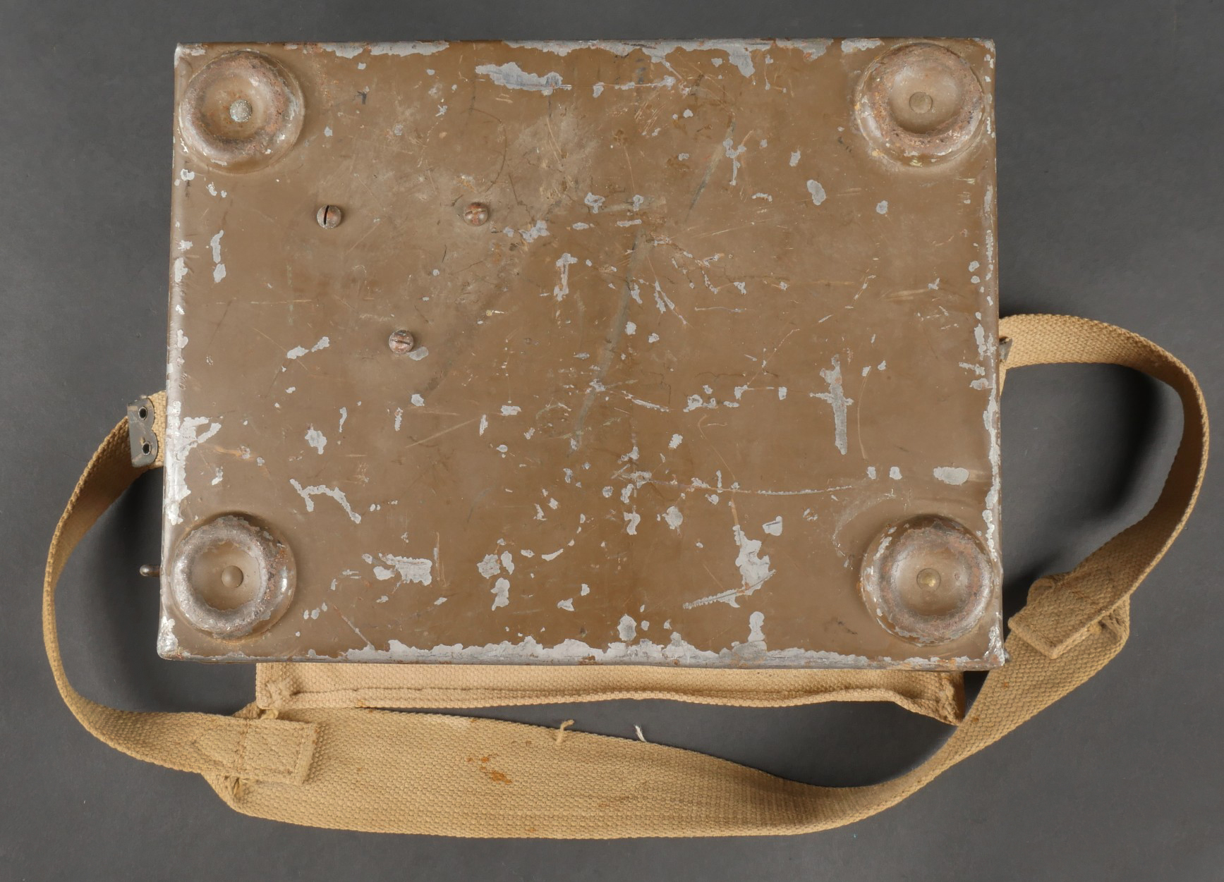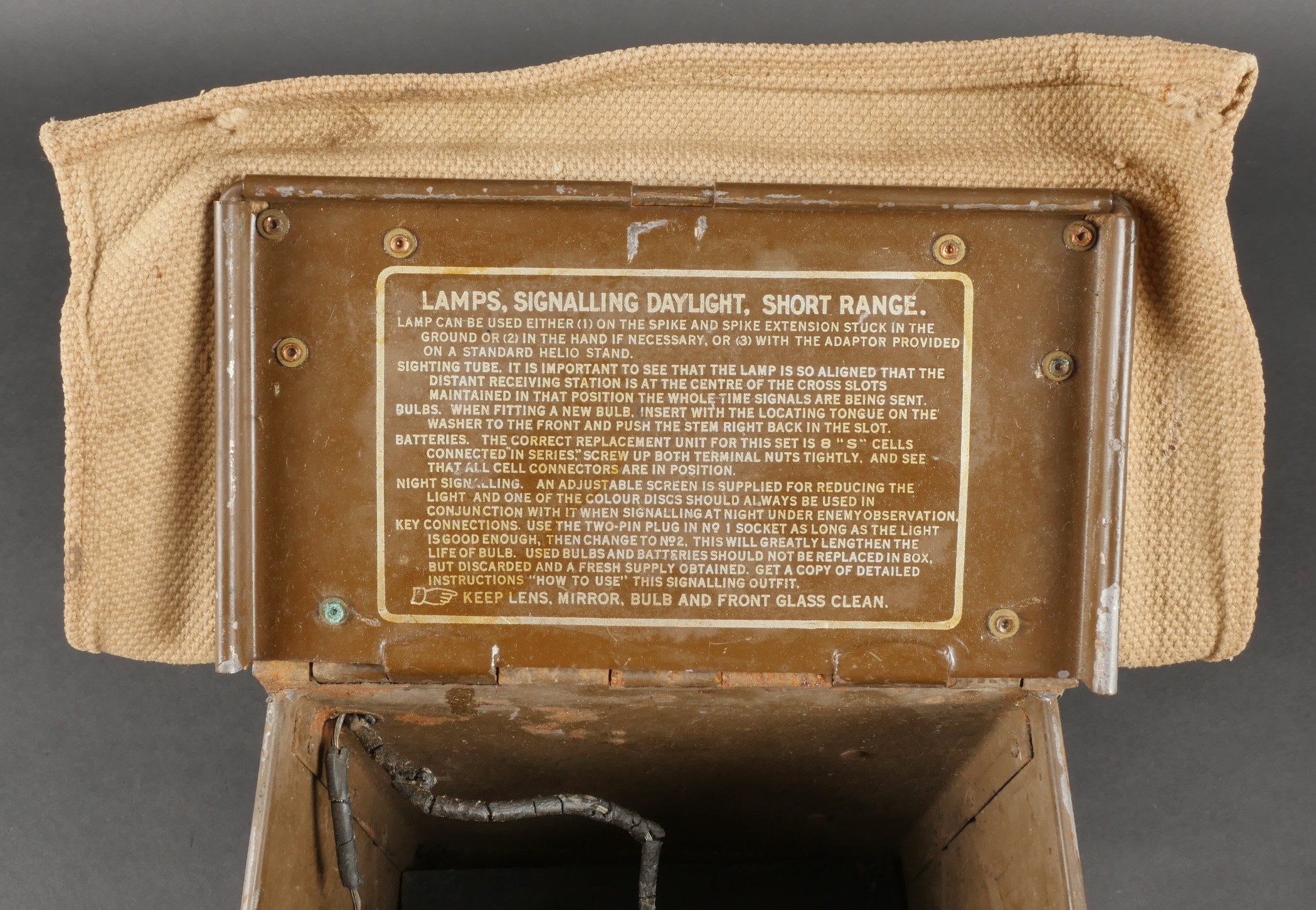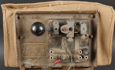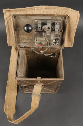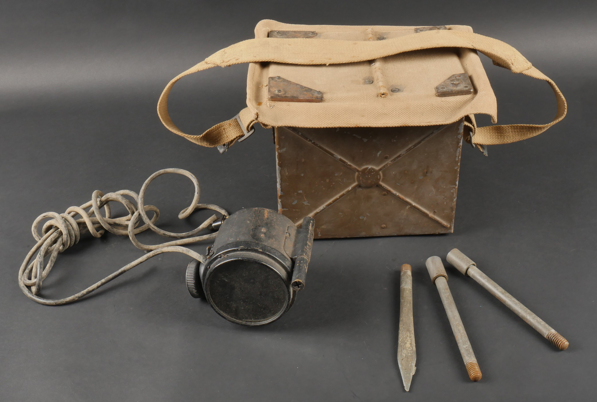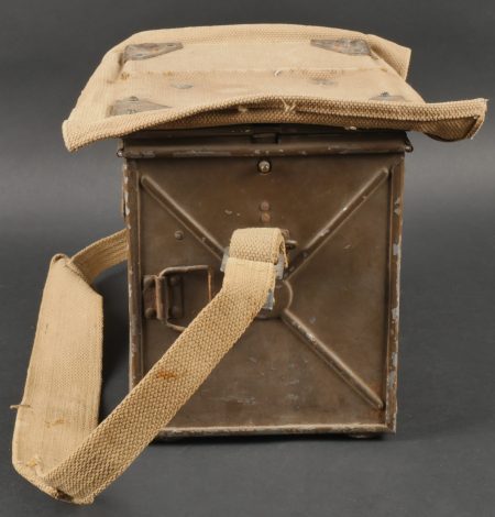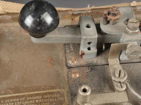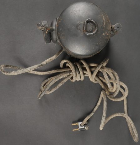 Projecteur signalisation optique morse. Dans sa caisse réglementaire en métal avec sa peinture kaki d’origine. Appareil de signalisation fixé au fond de la partie large de la caisse, pied... en savoir plus