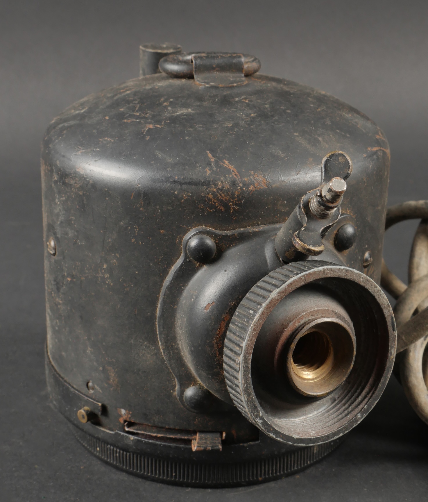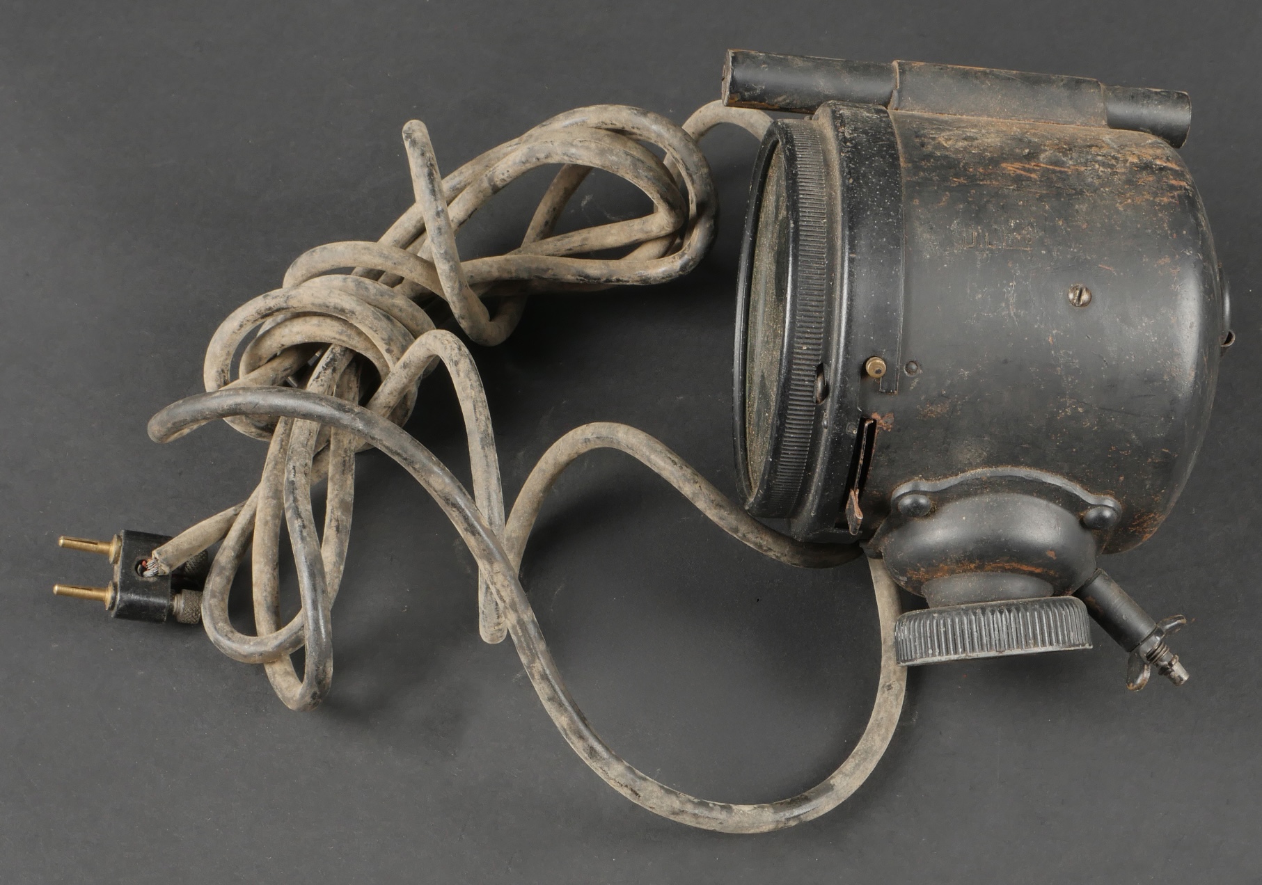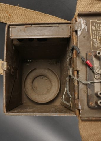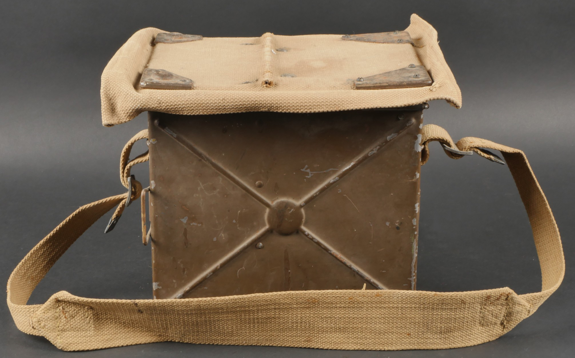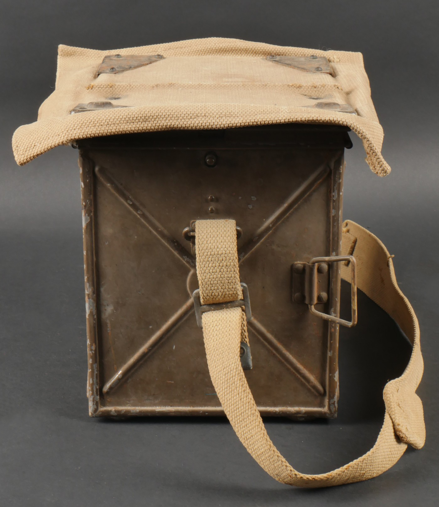 Projecteur signalisation optique morse. Dans sa caisse réglementaire en métal avec sa peinture kaki d’origine. Appareil de signalisation fixé au fond de la partie large de la caisse, pied... en savoir plus