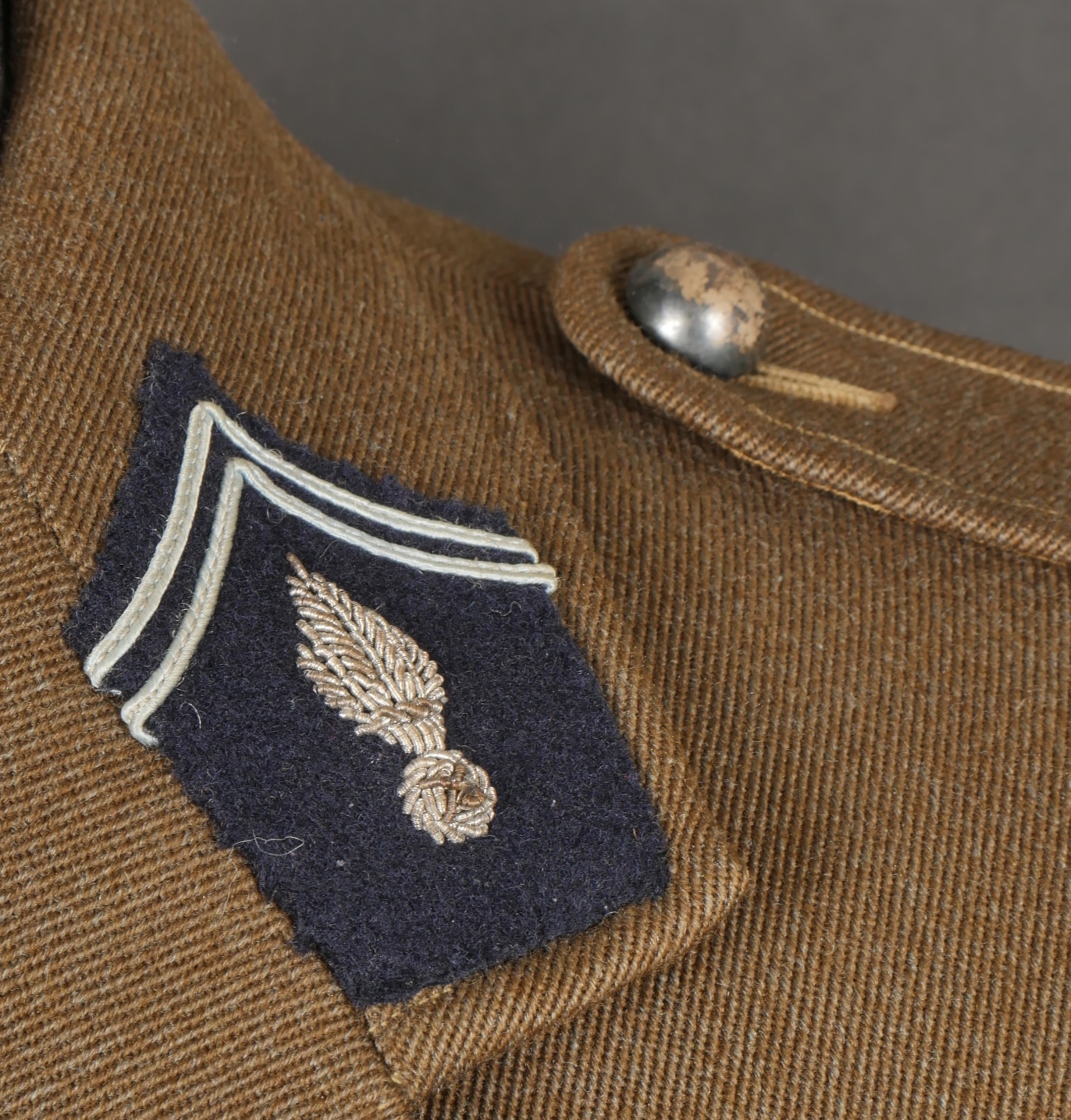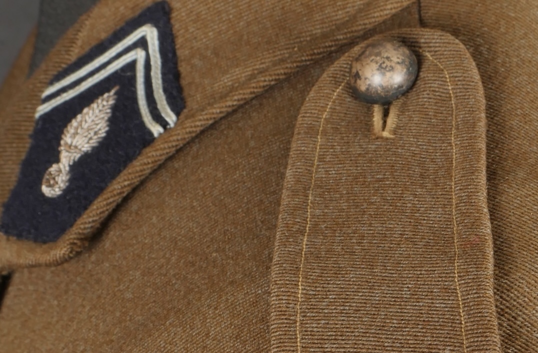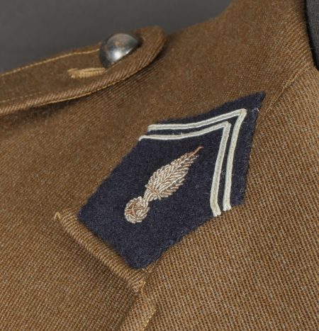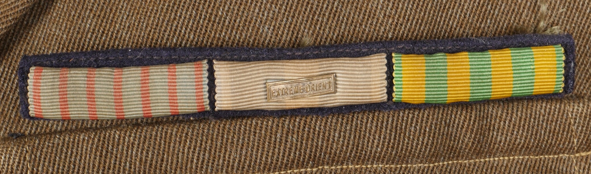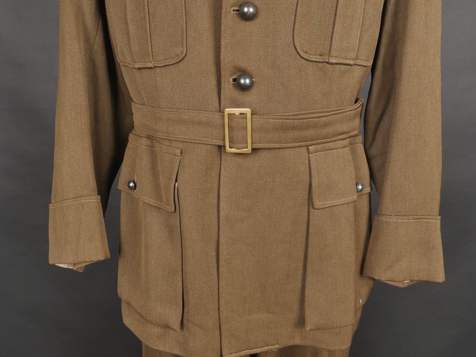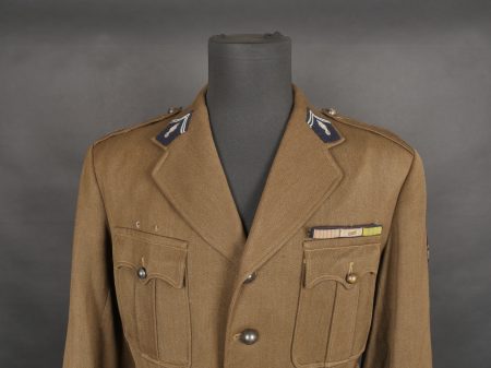 Bel uniforme d’un parachutiste confectionné localement en Indochine. La veste de sortie à 4 poches est confectionnée dans un drap peigné kaki, se fermant par 4 boutons argentés lisses,... en savoir plus