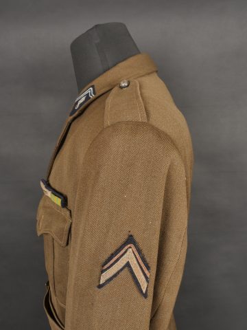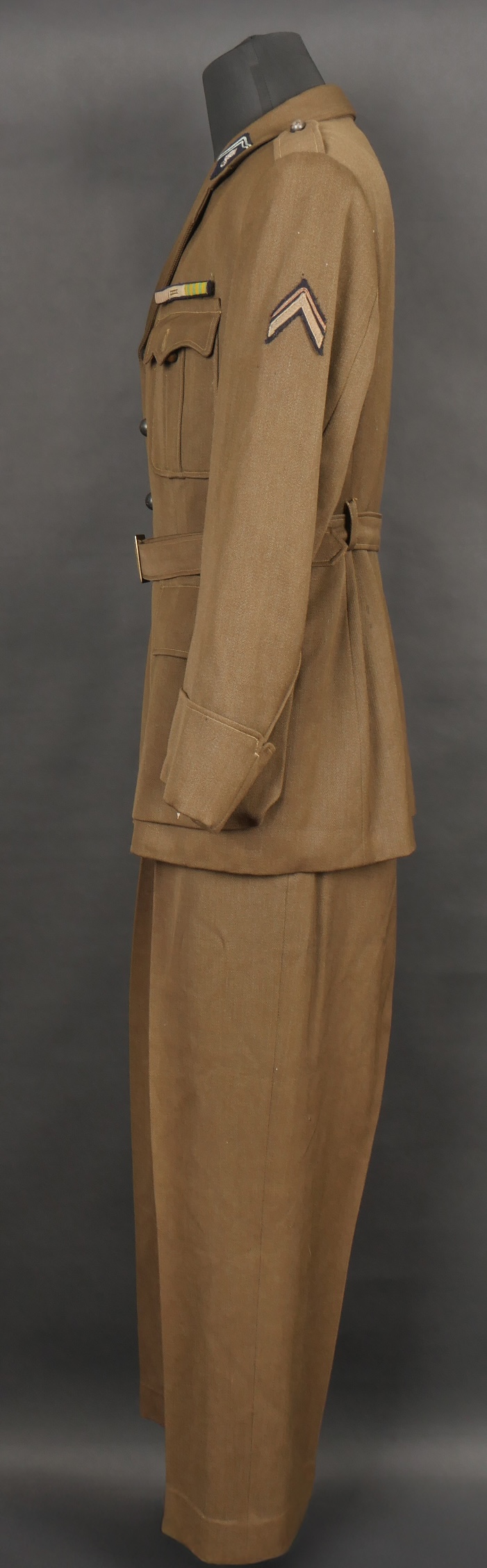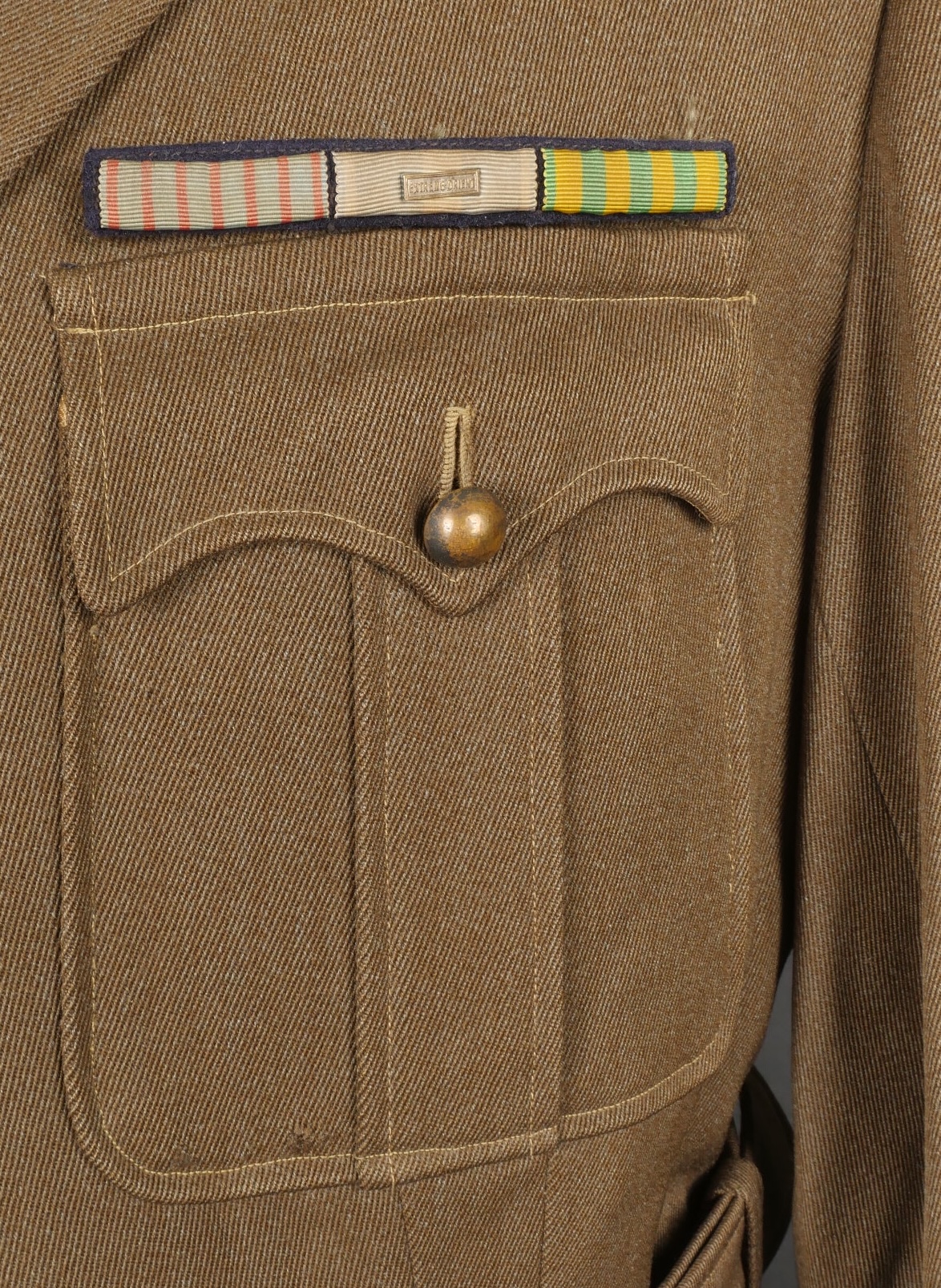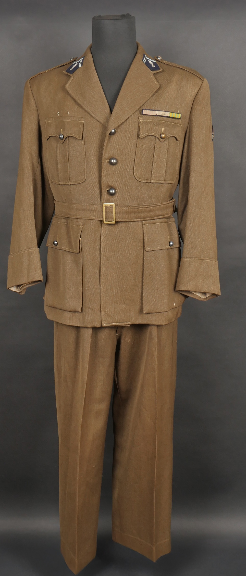 Bel uniforme d’un parachutiste confectionné localement en Indochine. La veste de sortie à 4 poches est confectionnée dans un drap peigné kaki, se fermant par 4 boutons argentés lisses,... en savoir plus