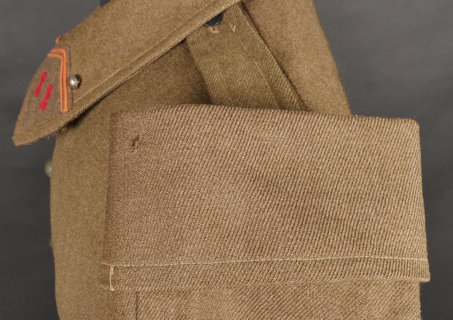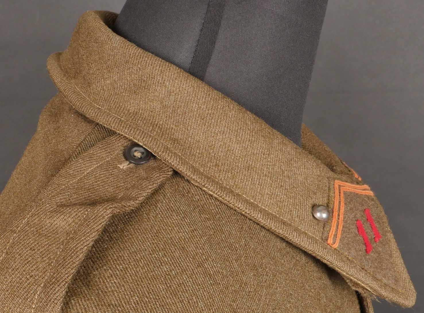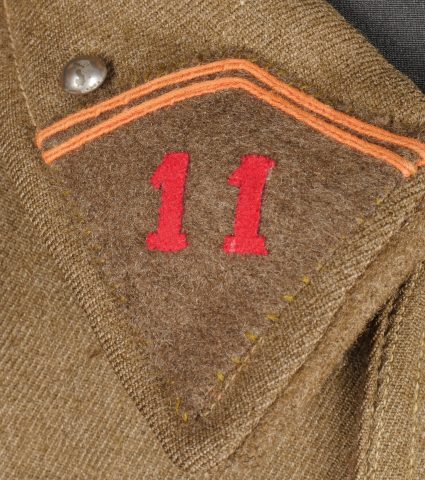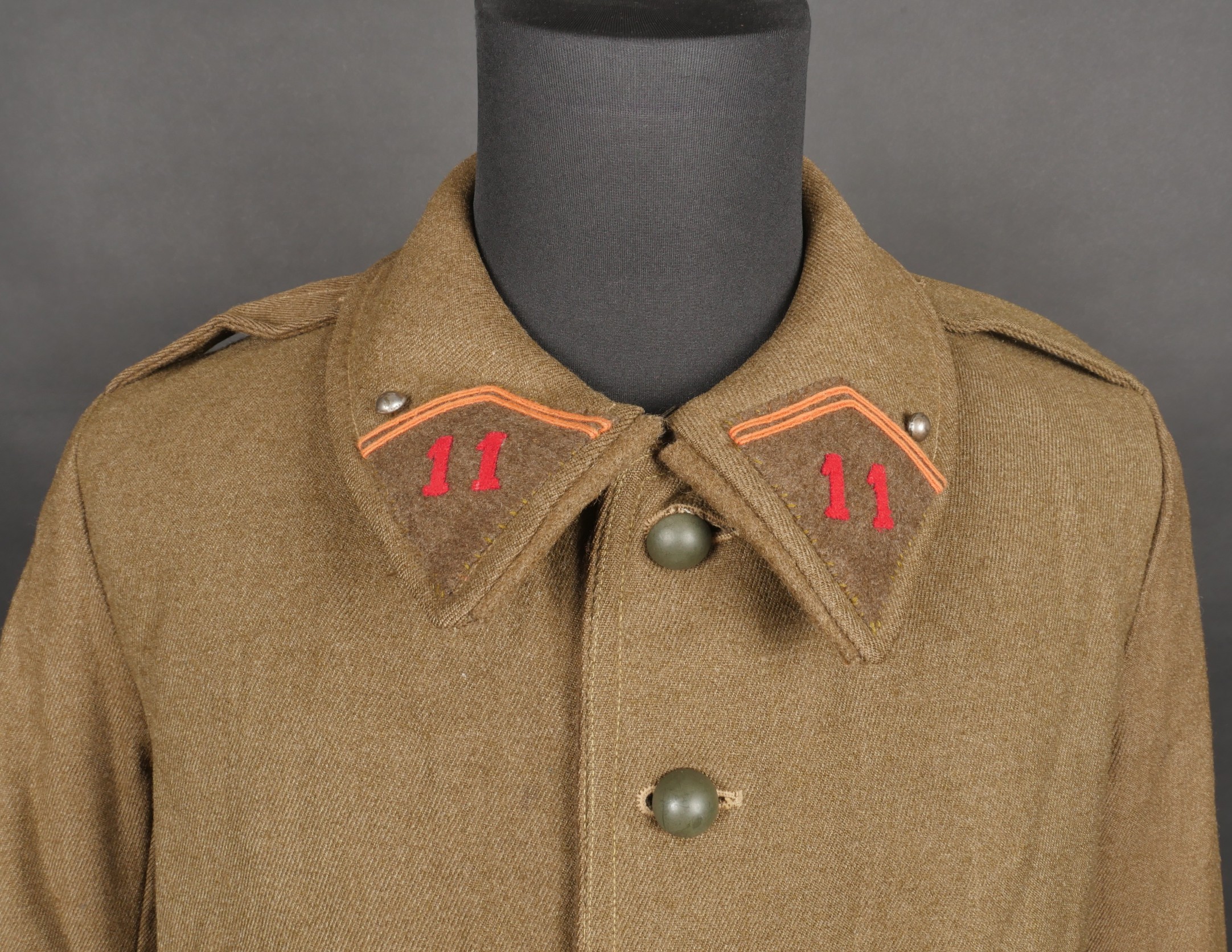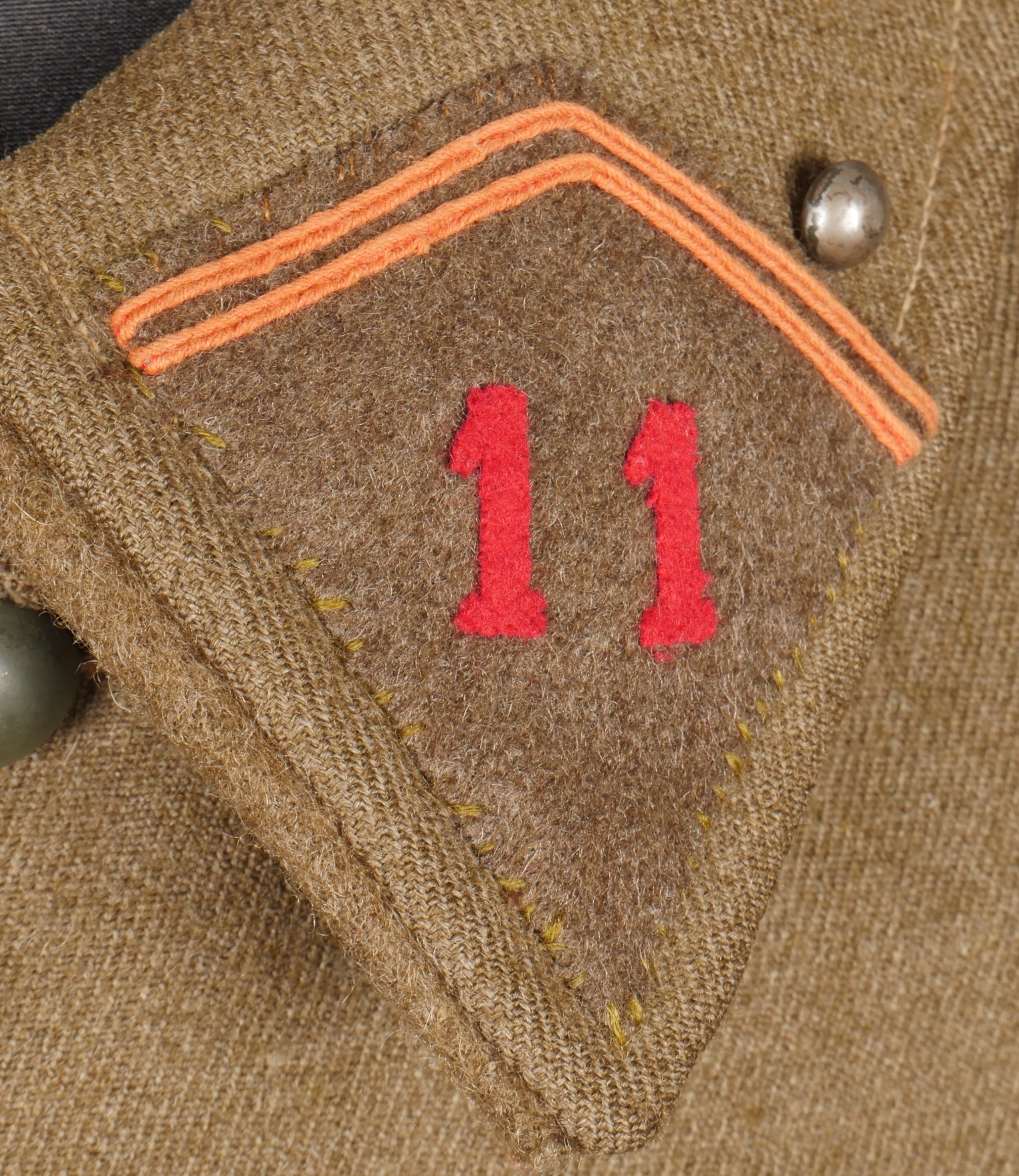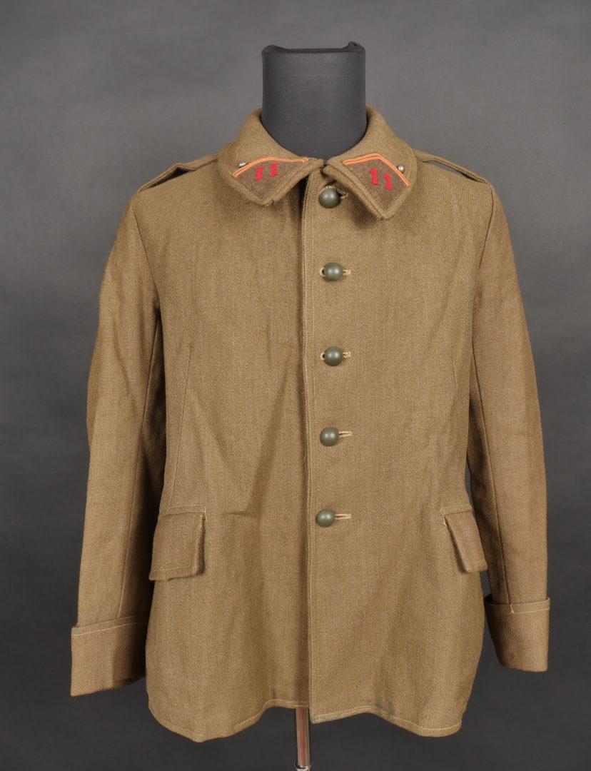 Vareuse 1938 11ème zouaves. En drap peigné, pattes de col du 11ème zouaves, volets de dissimulation toujours cousus, fermant sur le devant par cinq boutons en peinture d’origine. Doublure... en savoir plus