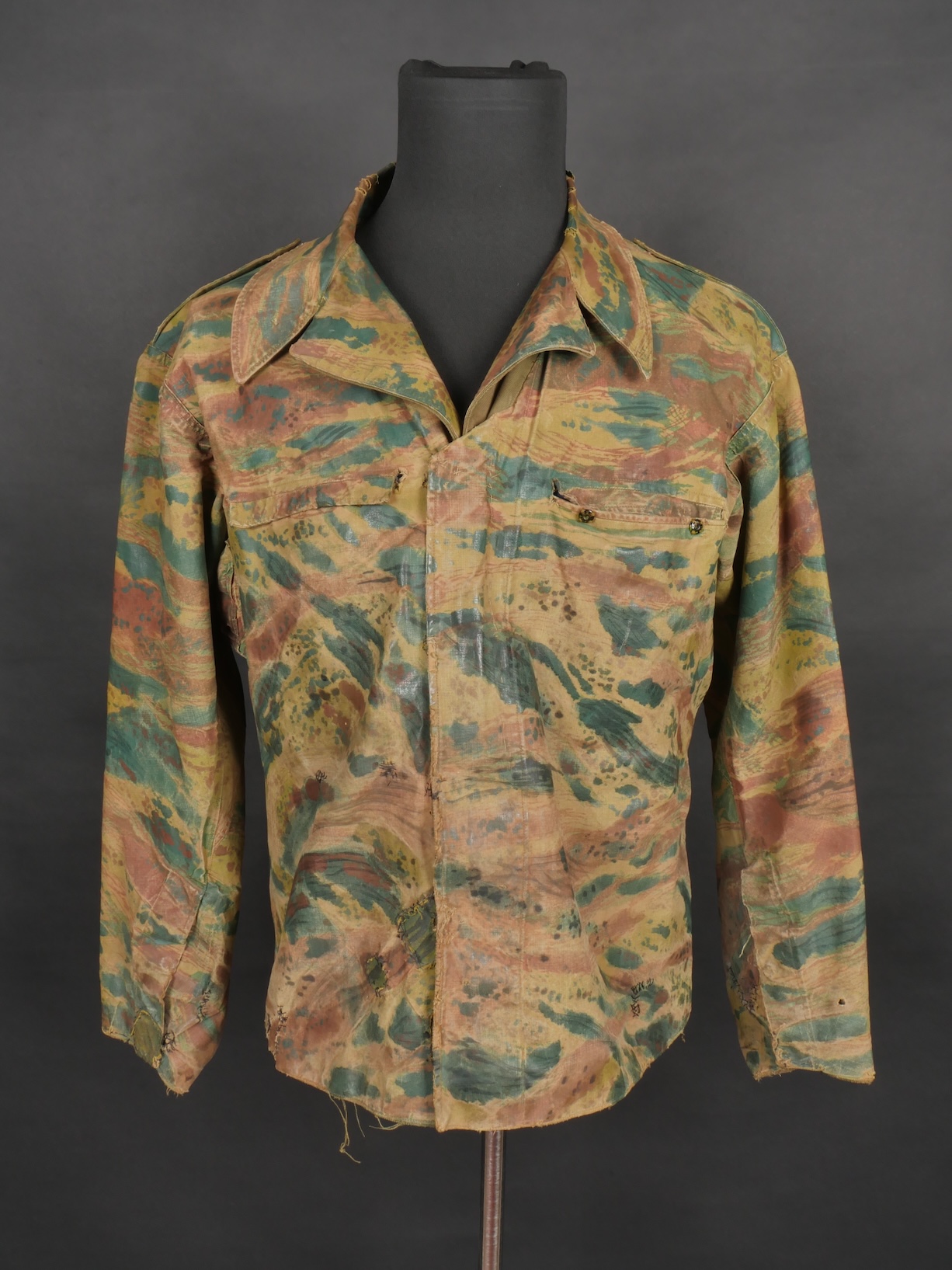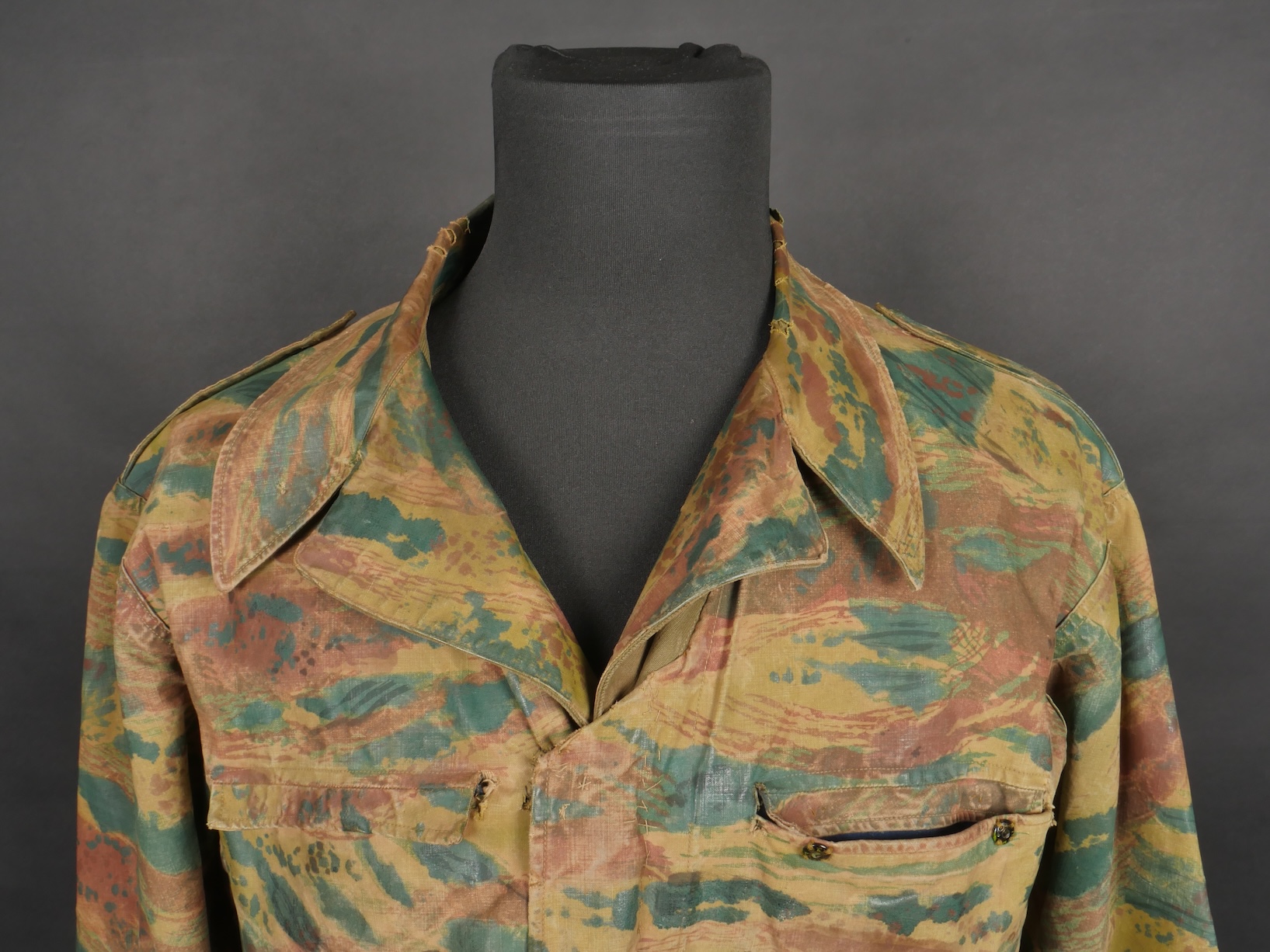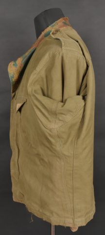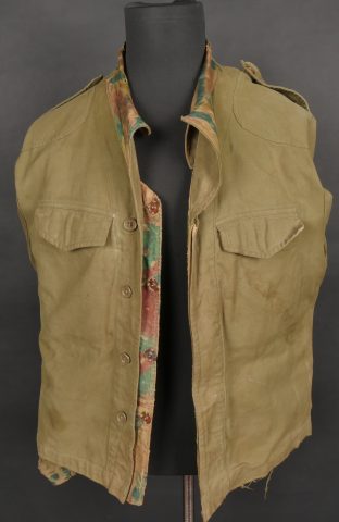 Veste atypique portée par le souslieutenant Escoffier durant la Guerre d’Algérie. La veste fut réalisée à partir du veste TTA 47 52 allégée kaki, sur laquelle un maitre tailleur à... en savoir plus